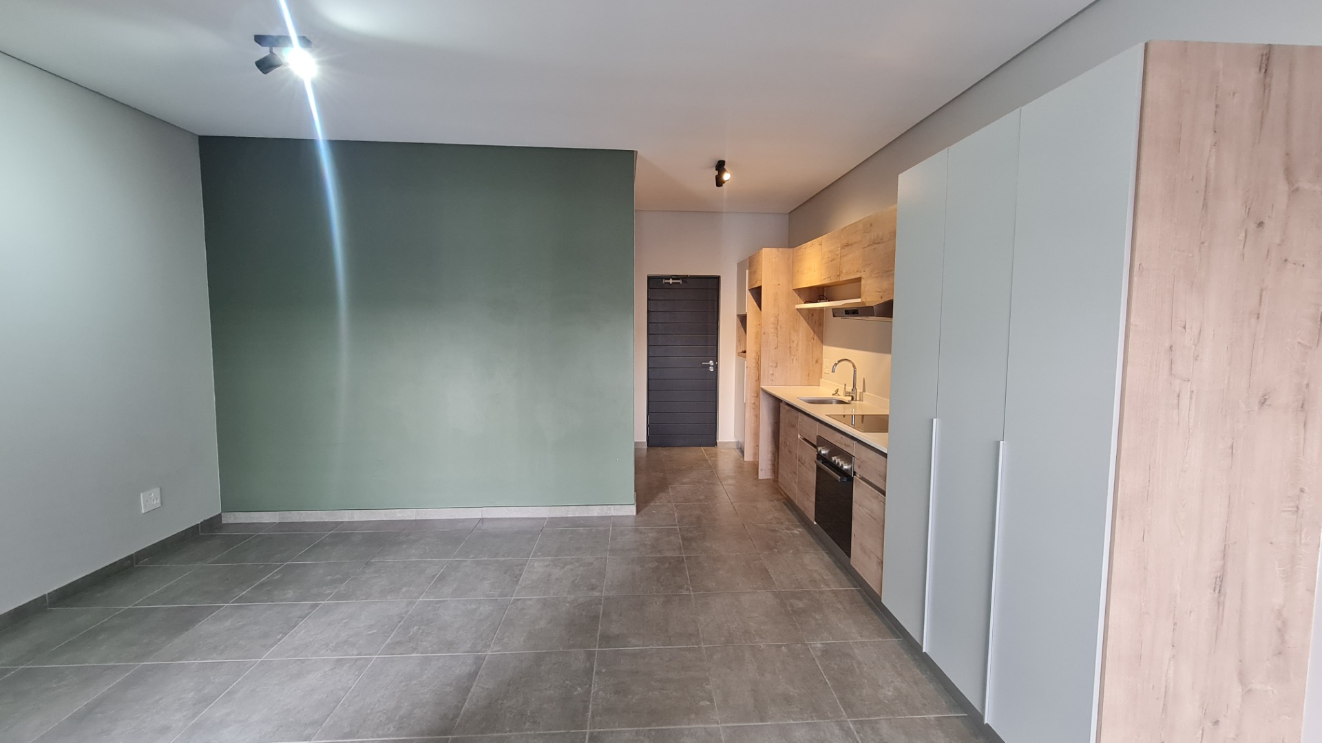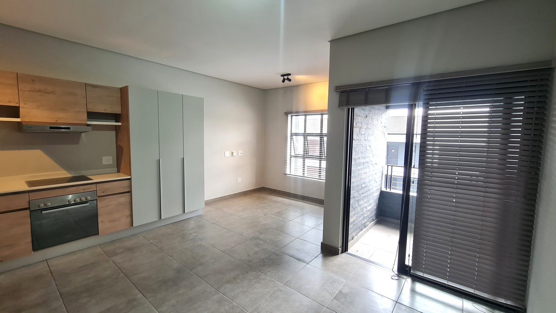 Open plan lounge/bedroom and kitchen with access to a private balcony. Ample space to create a bedroom and lounge area and fit a