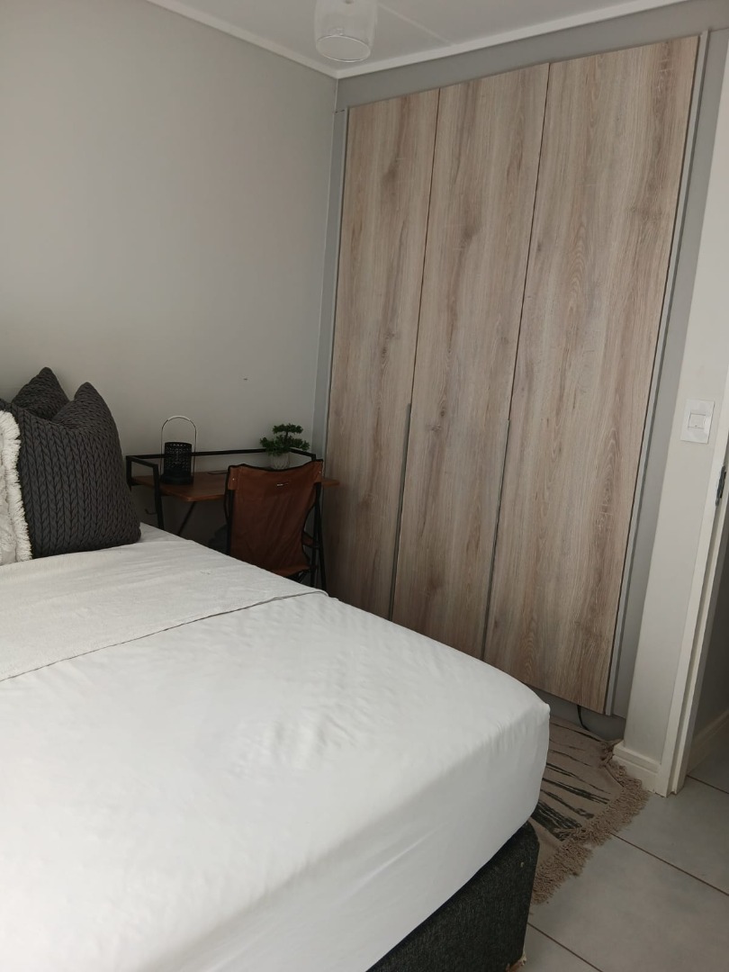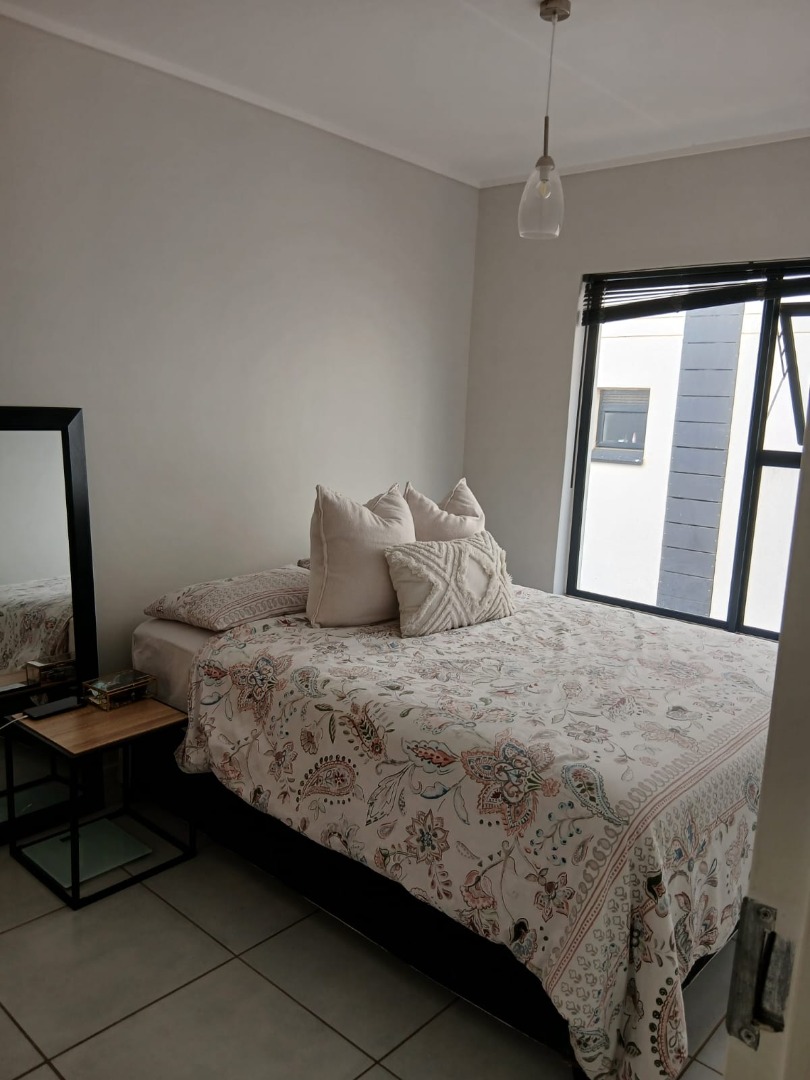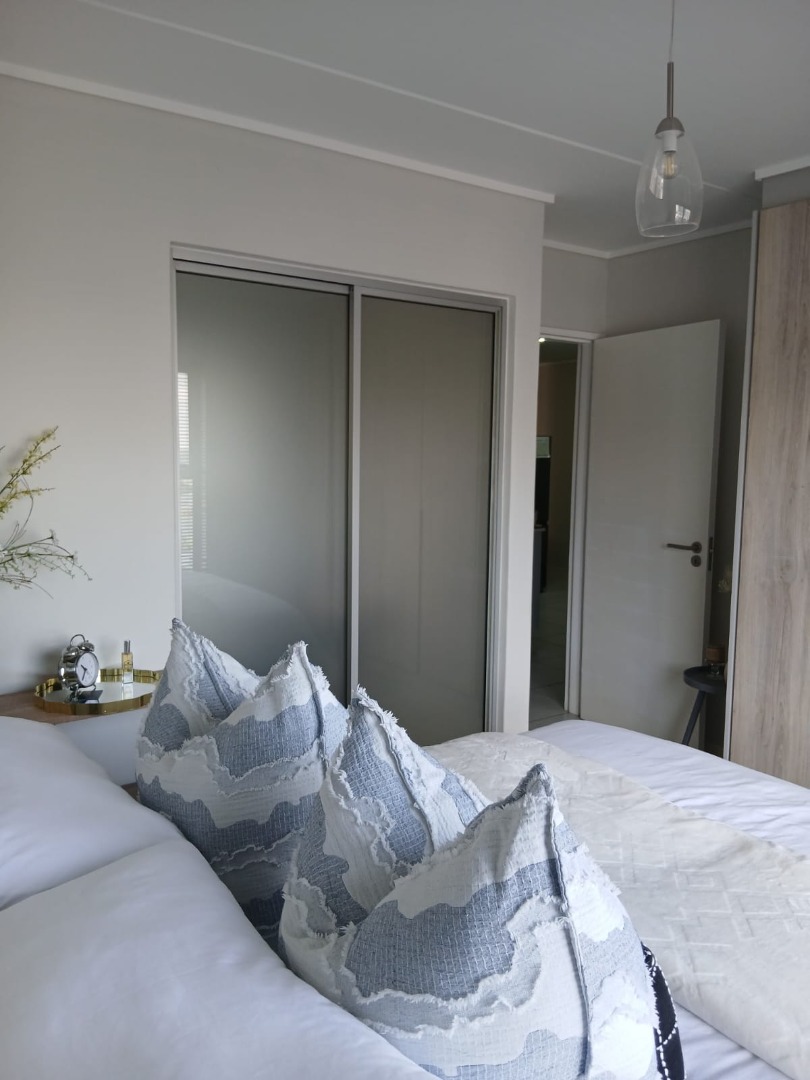 Discover this modern 3-bedroom, 2-bathroom rental property located in a secure complex within Mooikloof Glen, Pretoria. The residence features a contemporary open-plan living area with tiled flooring and access to a balcony, perfect for relaxation. The sleek kitchen boasts light cabinetry. Each bedroom offers comfortable living with tiled floors and ample natural light, including one ensuite bathroom. This unfurnished home is ideal for individuals or small families seeking a stylish and functional space. Enjoy peace of mind with 24-hour security, an access gate, electric fencing, and fibre connectivity. Two parking bays are included.
