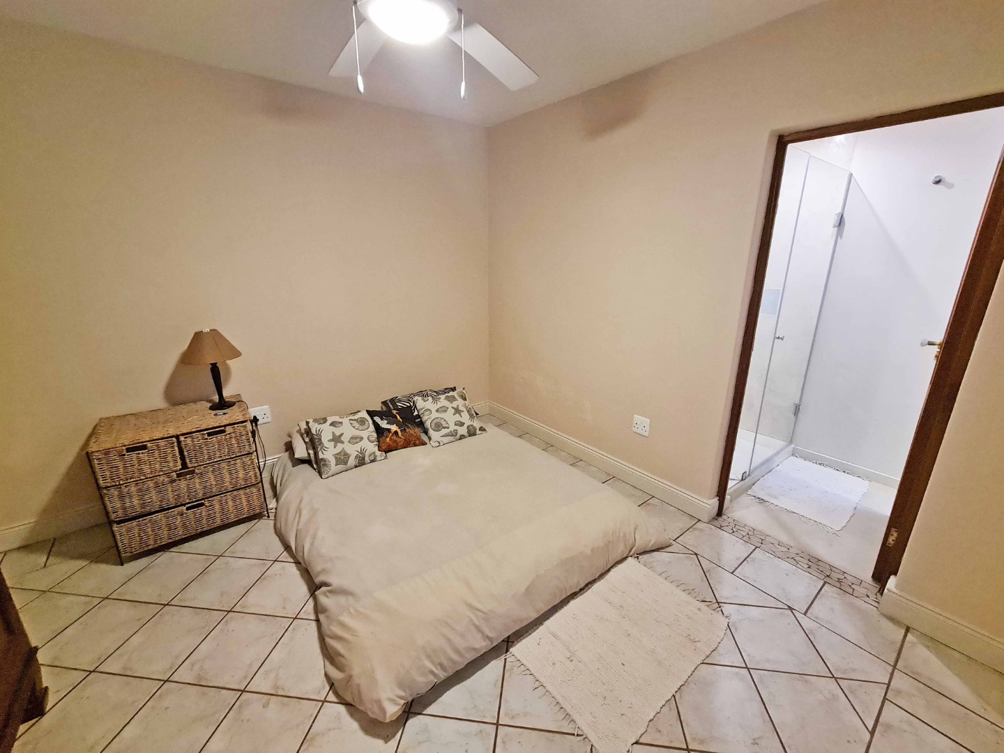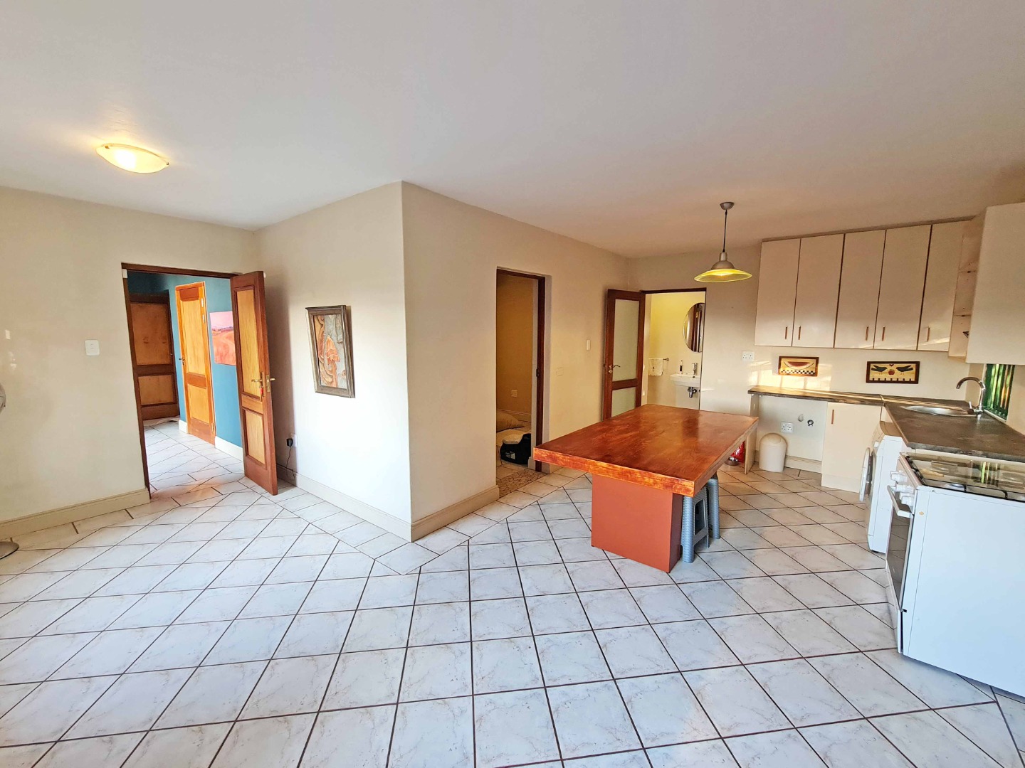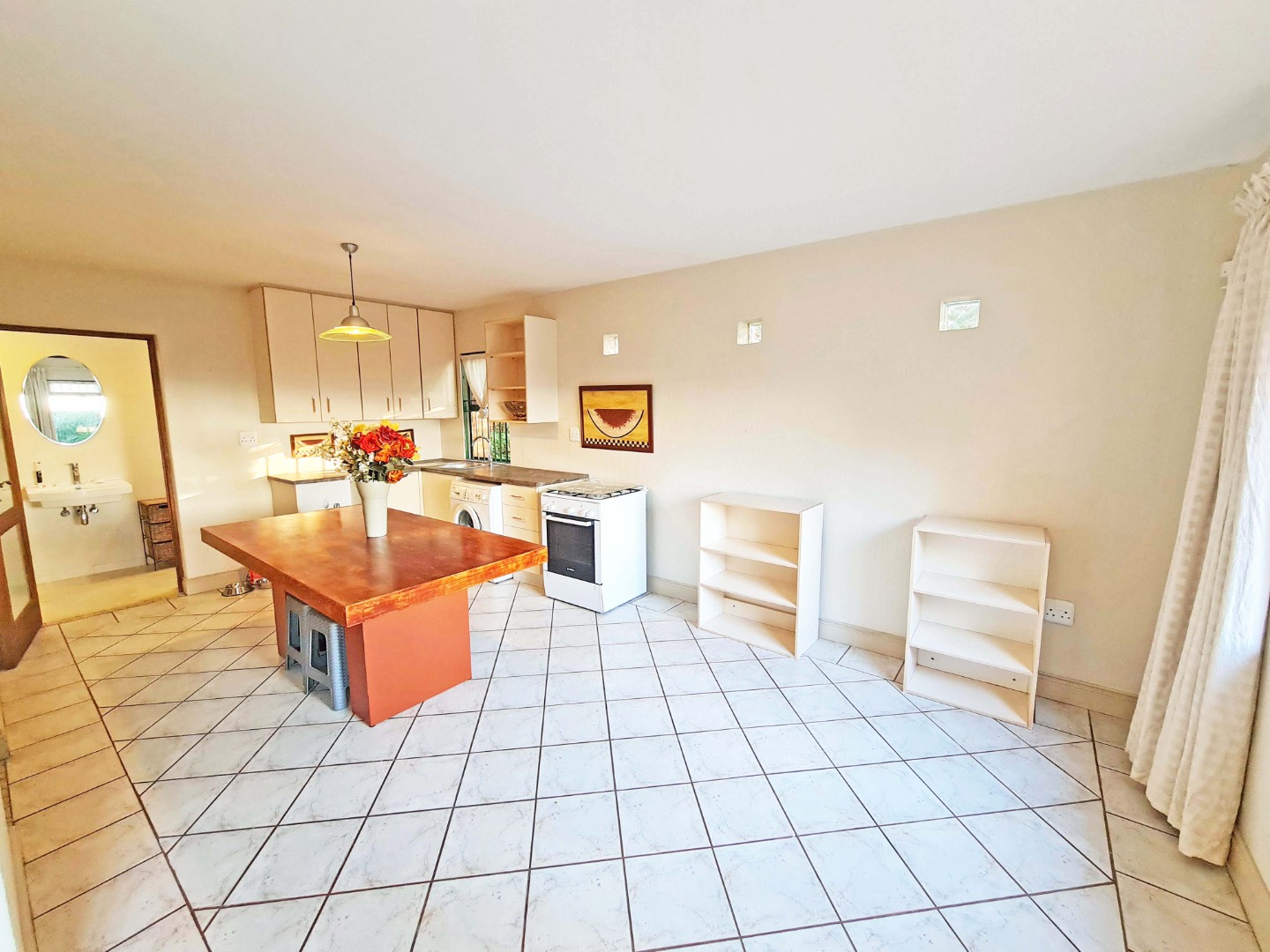 Situated on the ground floor of the main house, this cottage has an open plan lounge and kitchen with tiled floors and fitted blinds.