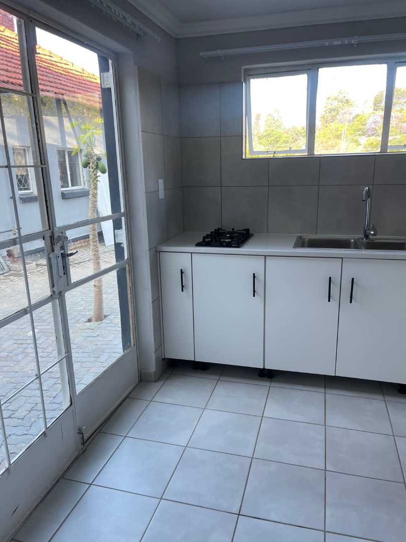 This inviting 1-bedroom, 1-bathroom rental unit offers a practical and contemporary living space. The interior features clean, neutral aesthetics with light grey painted walls and durable tiled flooring throughout, providing a fresh canvas for personal customisation. The compact yet functional kitchen is equipped with modern white base cabinets, sleek black handles, a double sink, and an integrated hob, complemented by a tiled backsplash. Natural light streams in through a window, enhancing the bright atmosphere. The unfurnished layout is ideal for a single professional or student seeking a convenient lock-up-and-go lifestyle. The main living area benefits from ample natural light, with glass-paned doors leading to an outdoor paved area, offering a seamless transition for relaxation. Crown molding adds a refined touch to the rooms, which are designed for easy maintenance and comfortable living. Security is enhanced by a robust security gate at the entrance, providing peace of mind. While the unit is designed for efficiency, it ensures essential amenities are readily available. The property includes one dedicated parking space, adding to the convenience for residents in this well-established Pretoria suburb. Located in the desirable suburban area of Muckleneuk, Pretoria, this property benefits from a tranquil environment and excellent accessibility. It offers a balanced lifestyle with proximity to various amenities and educational institutions, making it a sought-after location for renters. Key Features: * 1 Bedroom, 1 Bathroom * Modern Kitchenette with Integrated Hob * Tiled Flooring Throughout * Ample Natural Light * Dedicated Parking Space (1) * Security Gate at Entrance * Neutral Aesthetic * Prime Pretoria Location