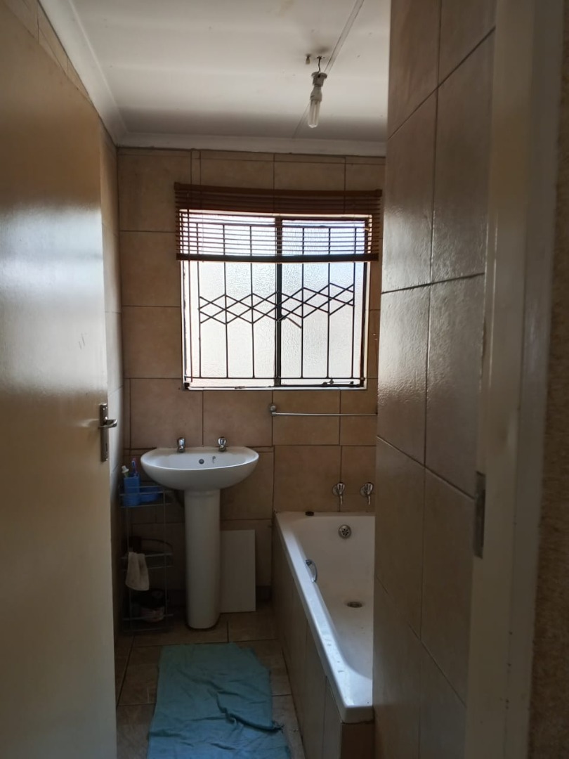 This inviting 3-bedroom, 2-bathroom residence is available for rent within a secure estate in Proclamation Hill, Pretoria. Designed for comfortable living, the home offers a practical layout suitable for families or professionals seeking a well-located property. The interior features a functional kitchen equipped with ample cabinet storage and a built-in sink, seamlessly connecting to an open-plan living area. This space boasts tiled flooring and decorative ceiling molding, providing a welcoming atmosphere. A dedicated dining room offers additional space for meals and entertaining. Accommodation includes three bedrooms, with at least one featuring a built-in wardrobe for convenient storage. The two bathrooms are fully tiled and include a mix of corner bathtubs, overhead showers, and a pedestal sink, catering to daily needs. One bedroom benefits from direct access to an en-suite bathroom. Further enhancing peace of mind, the property is situated within a security estate and features security bars on windows and doors. Parking is well-catered for with a single garage and two additional parking spaces. This home presents a practical and secure rental opportunity. This Pretoria suburb offers a convenient lifestyle, providing access to local amenities and transport routes. Key Features: * 3 Bedrooms * 2 Bathrooms * Functional Kitchen * Open-plan Living Area * Dedicated Dining Room * Security Estate Location * Security Bars on Windows * 1 Garage & 2 Parking Spaces