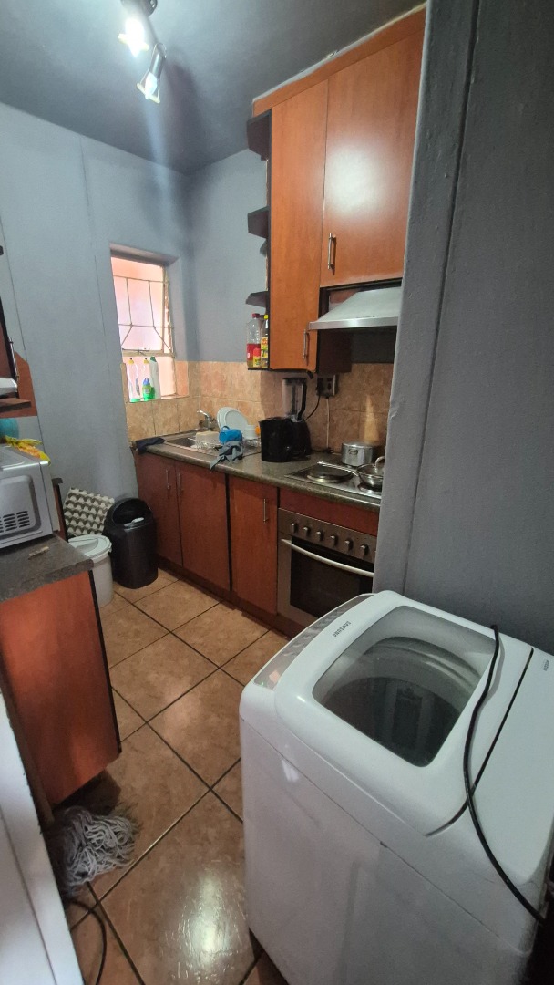 Discover this compact 1-bedroom, 1-bathroom apartment available for rent in the vibrant urban hub of Sunnyside, Pretoria. Spanning 37 square meters, this unit offers a practical layout designed for convenient city living. The living area, illuminated by large windows, provides a comfortable space for relaxation and entertainment, featuring ample room for seating and a wall-mounted television setup. This area flows seamlessly into the bedroom, creating an open and adaptable living environment. The functional kitchen is equipped with wooden upper and lower cabinetry, a built-in oven, stovetop, and a range hood, providing essential amenities for daily meal preparation. Tiled flooring and a window above the sink enhance the practicality of the space. The apartment features a combination of wood-look laminate flooring in the entryway and bedroom, complemented by durable tiled floors in the kitchen and bathroom. Ideal for professionals or students seeking an affordable and secure lock-up-and-go residence, this apartment caters to a modern, urban lifestyle. The property benefits from a secure entrance, featuring a turnstile and gate system, ensuring controlled access for residents. Sunnyside offers excellent connectivity and proximity to essential services, educational institutions, and public transport routes within Pretoria. Key Features: * 1 Bedroom, 1 Bathroom * Compact 37 sqm Floor Size * Functional Kitchen with Wooden Cabinetry * Built-in Oven and Stovetop * Secure Access Gate and Turnstile System * Ample Natural Light * Wood-Look Laminate and Tiled Flooring * Located in Central Sunnyside, Pretoria