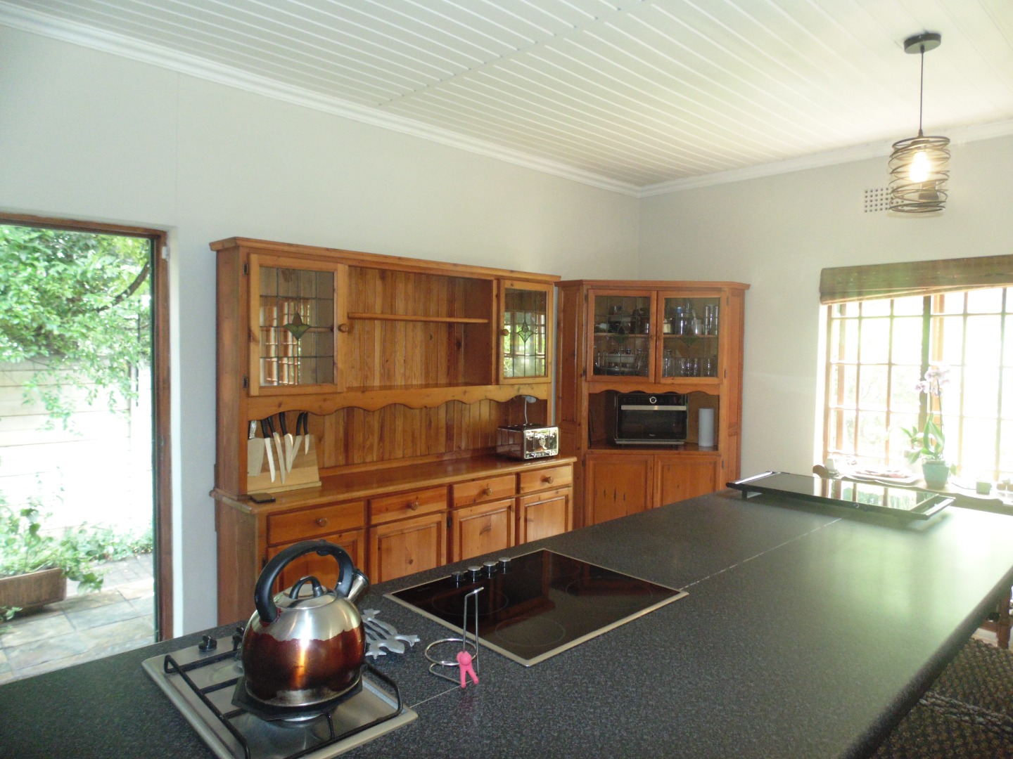 Say good bye to power outages, this inviting 4-bedroom, 3-bathroom family home is available for rent in the desirable suburban area of Berario, Randburg and comes with solar panels and battery backup. Designed for comfortable living, the residence boasts an open-plan layout seamlessly connecting the lounge, dining area, and a well-appointed kitchen. The spacious kitchen is a highlight, featuring extensive wooden cabinetry, a large central island with an integrated hob offering both gas and electric cooking options. Direct access to the outdoors enhances the flow, perfect for daily living and entertaining.