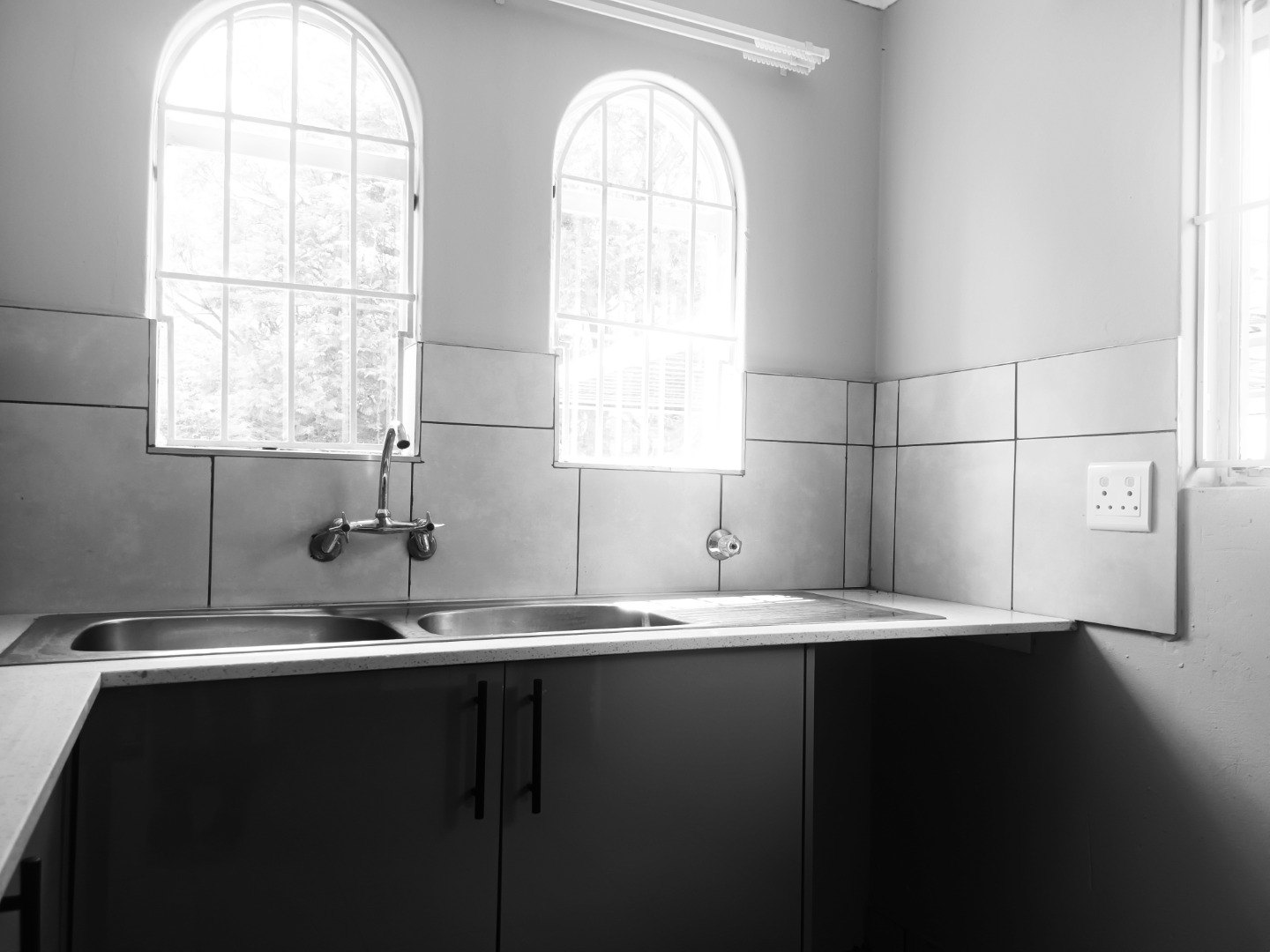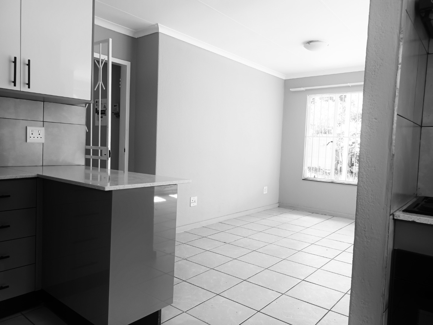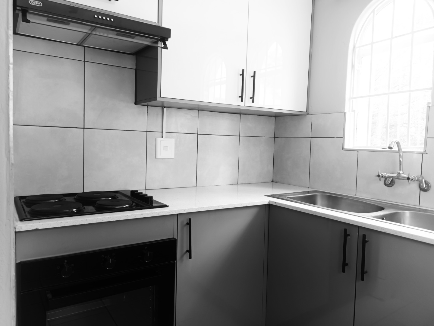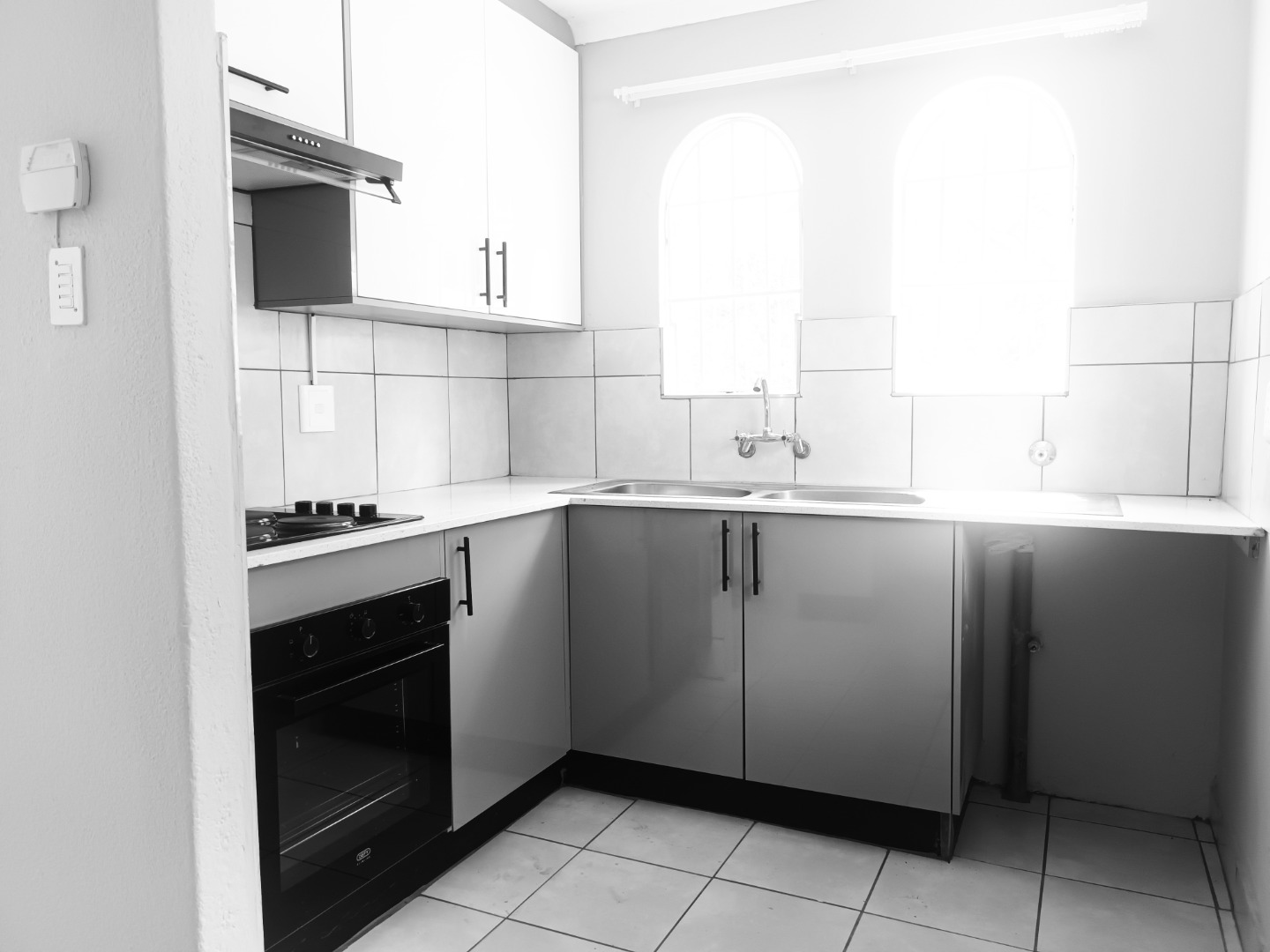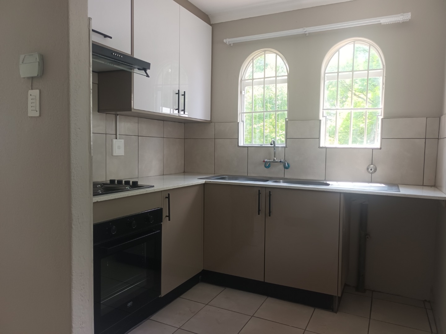 Discover this inviting 3-bedroom, 1-bathroom home available for rent in the established suburban area of Bromhof, Randburg. Spanning 86 sqm on an 828 sqm erf, this residence offers a comfortable and functional living space designed for modern convenience. The heart of the home is its contemporary kitchen, featuring sleek two-tone cabinetry, integrated hob, oven, and a range hood. Ample natural light streams in through unique arched windows above the double sink, complemented by clean tiled floors and a practical tiled backsplash. An open-plan layout enhances the flow between living areas, creating an ideal environment for daily life.