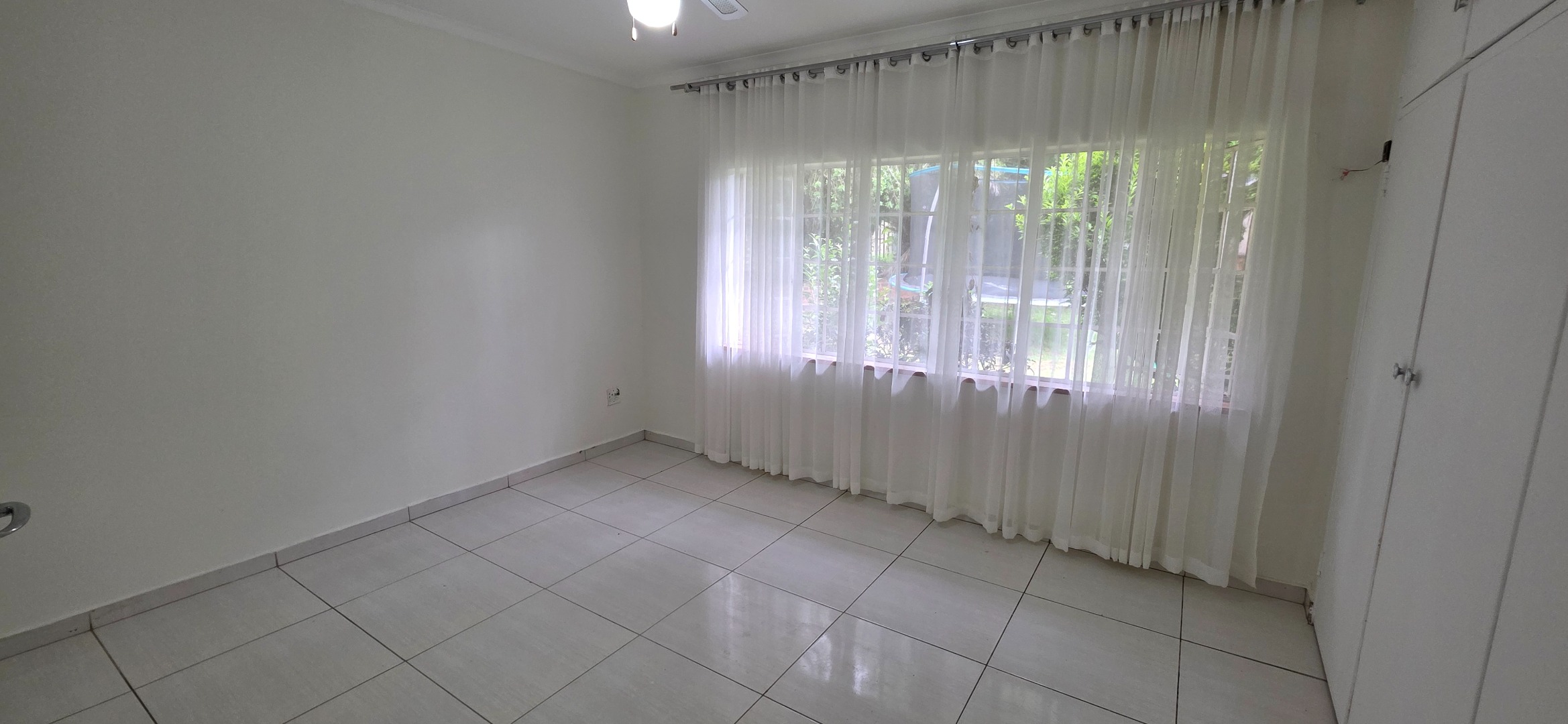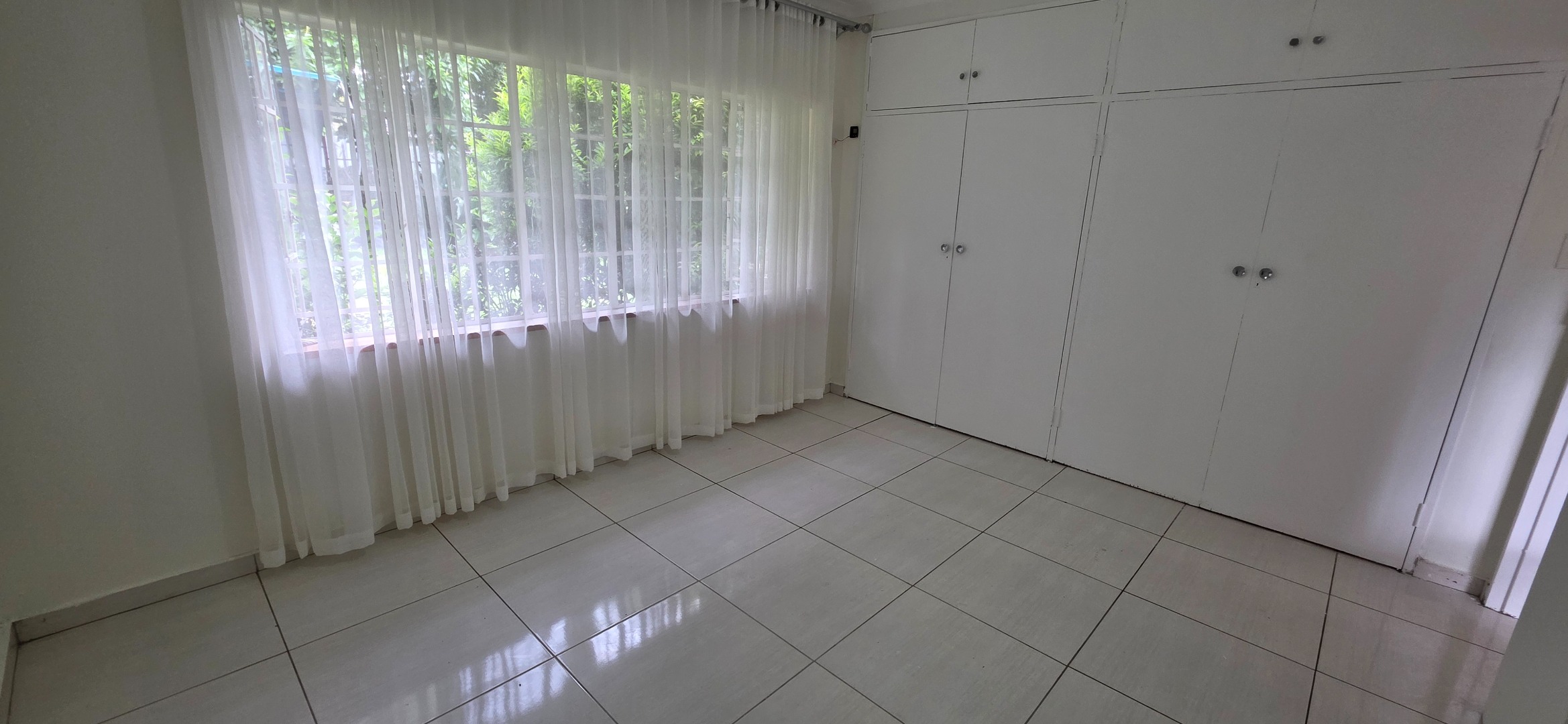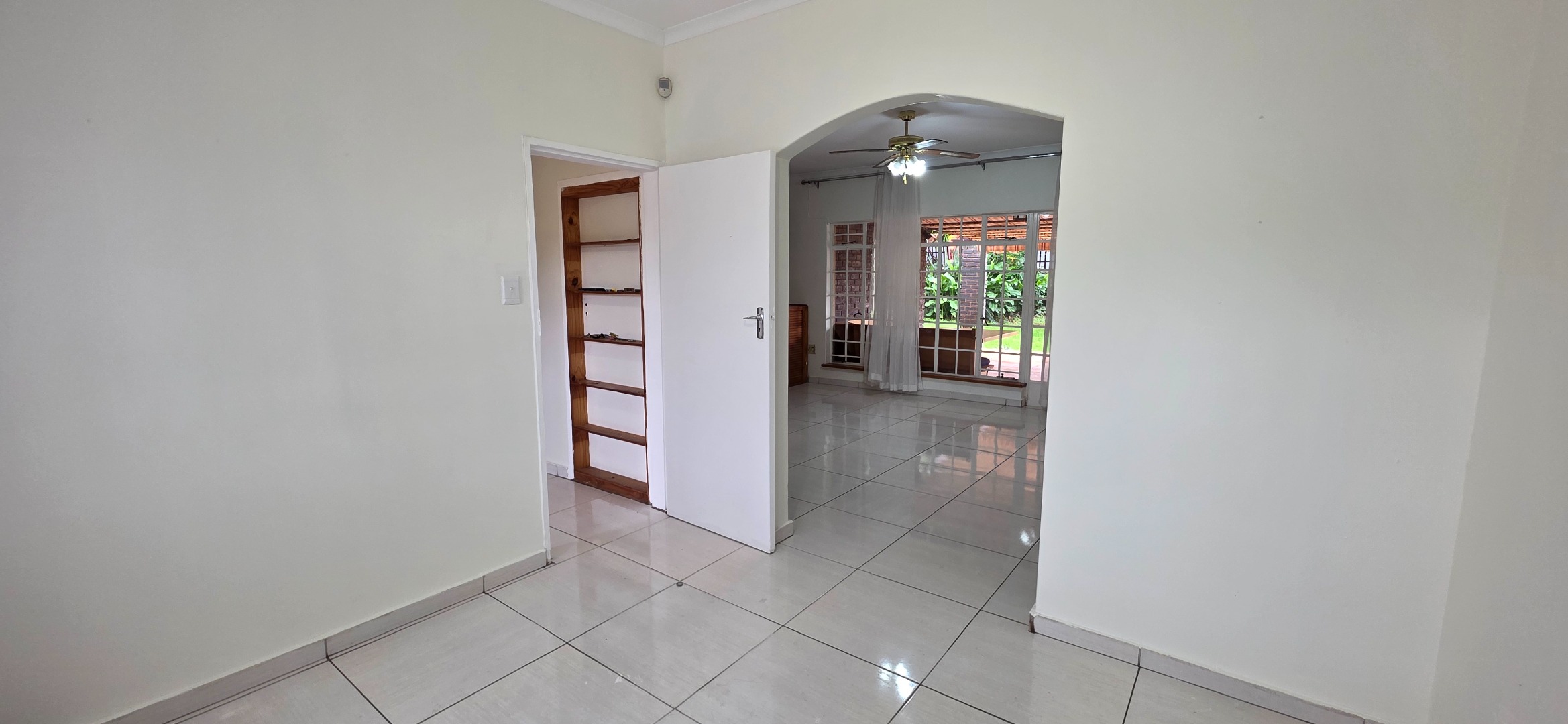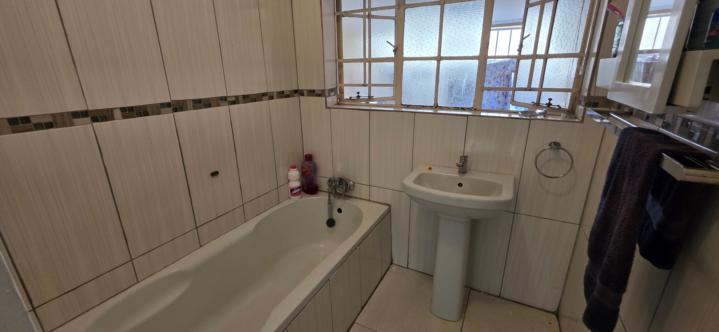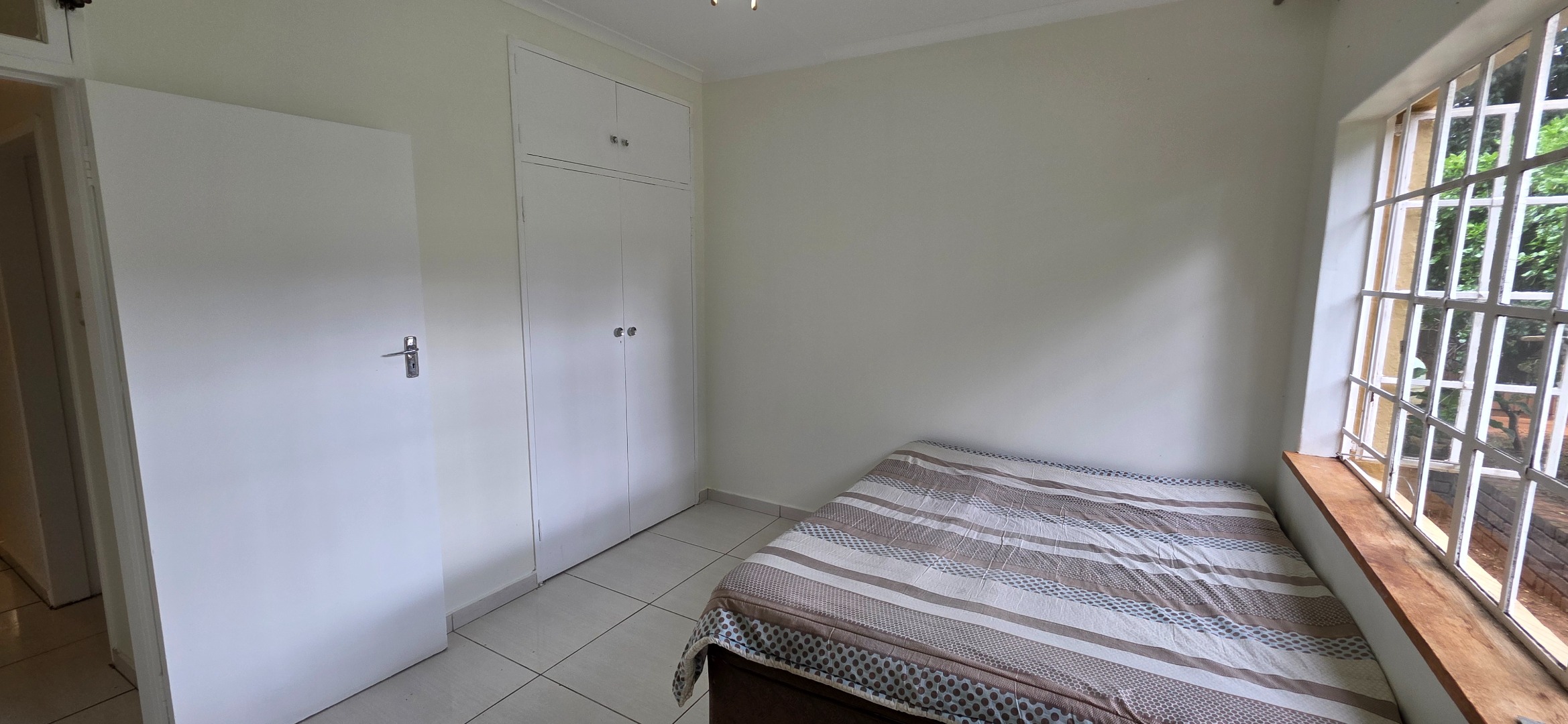 The main house offers three well-sized bedrooms, all fully tiled, fitted with built-in cupboards, and light and airy with garden-facing windows. These bedrooms are serviced by one and a half bathrooms, consisting of a full bathroom with bath, shower, basin, and toilet, as well as a separate guest toilet. The bathrooms are neat, functional, and well maintained.
