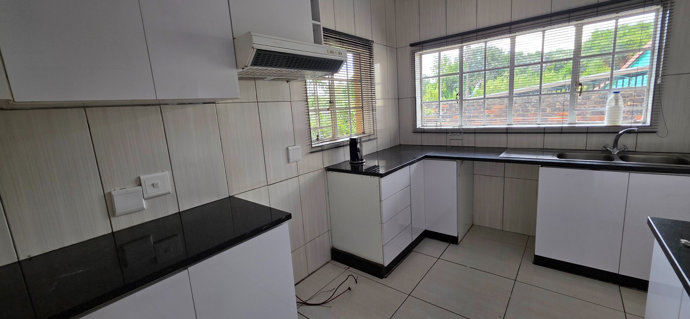 The kitchens are neat and practical, fitted with white built-in cupboards and granite countertops in the main house, while the cottage kitchen includes a breakfast counter. Each kitchen has space for one appliance. There is also a separate wash and laundry area suitable for a top-loader washing machine. In the main house the owner will still install a brand new four-plate stove prior to occupation.