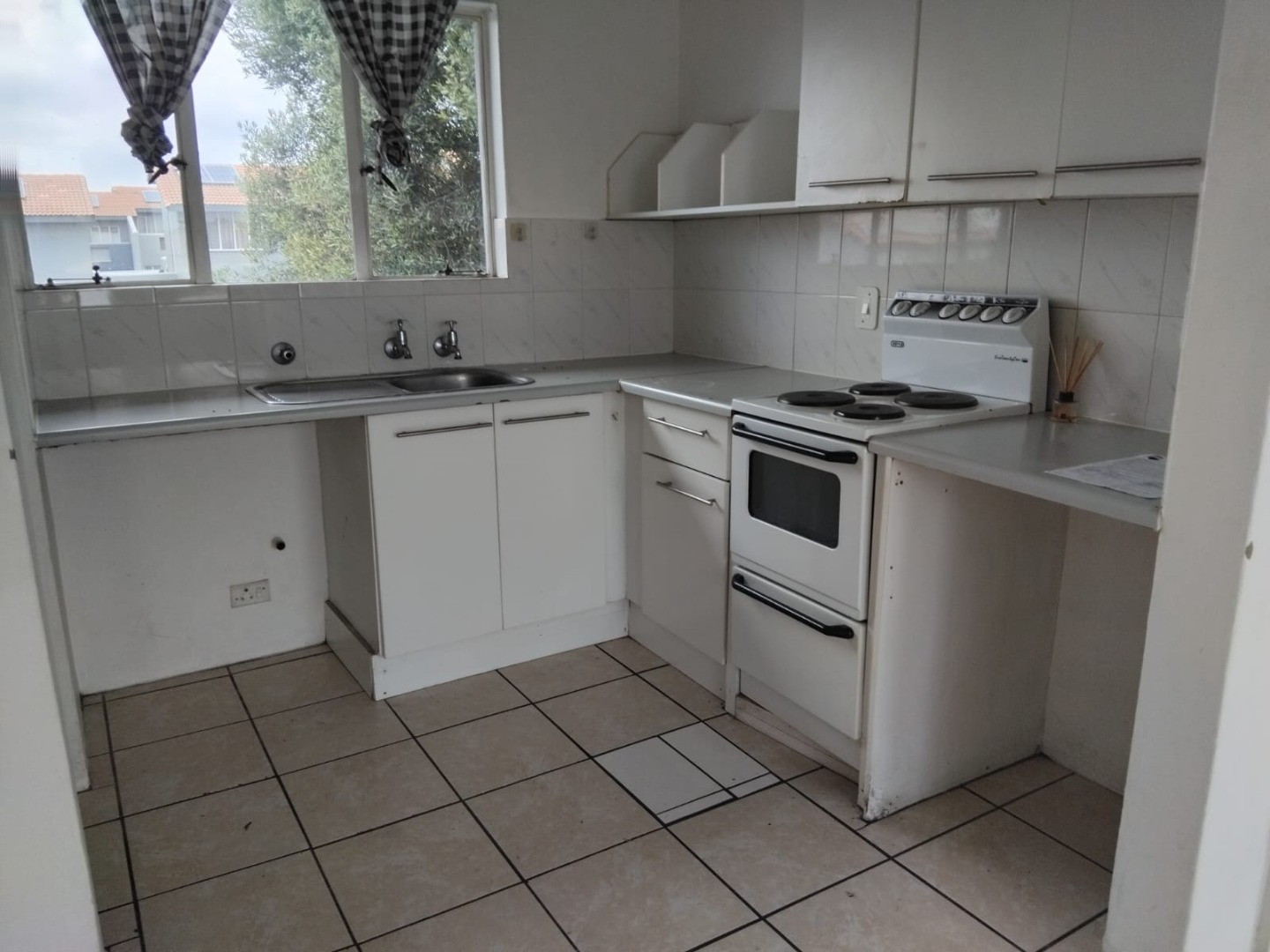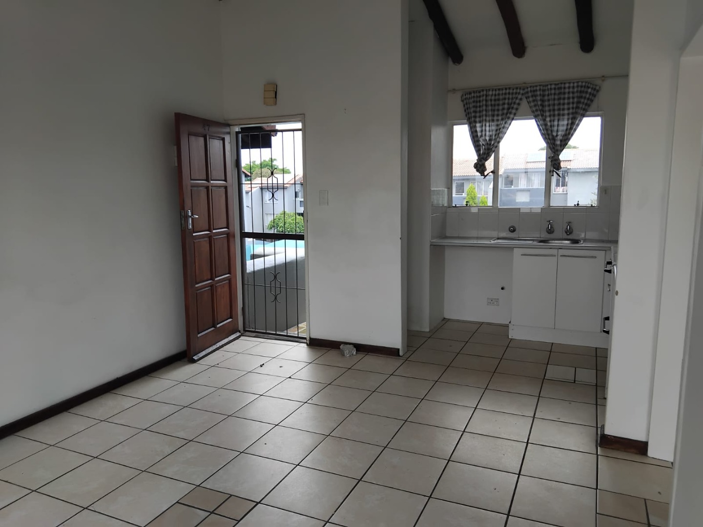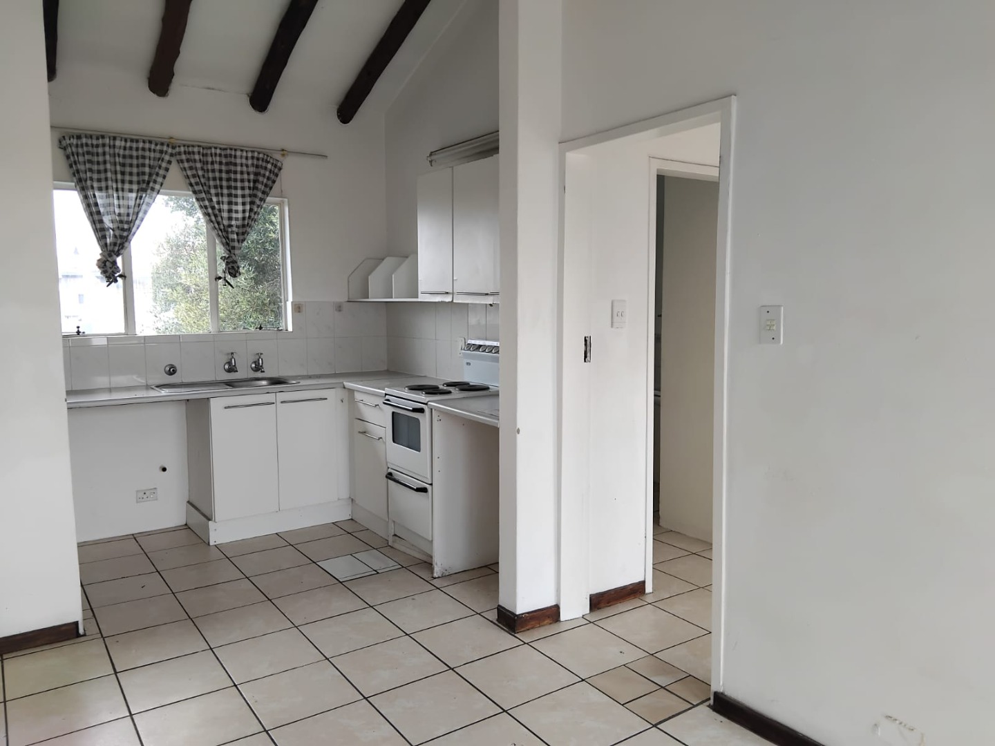 Discover this practical 1-bedroom, 1-bathroom apartment located in a well-managed complex in Northgate, Randburg. This compact unit offers a functional layout ideal for a single professional or a couple. The interior features durable tiled flooring throughout and characterful exposed wooden ceiling beams, providing a clean and low-maintenance living space. The kitchen is equipped with white cabinetry, a tiled backsplash, a double sink, and a built-in stove with an oven, catering to your essential culinary needs. Natural light streams in through large windows, enhancing the bright and airy feel of the apartment.