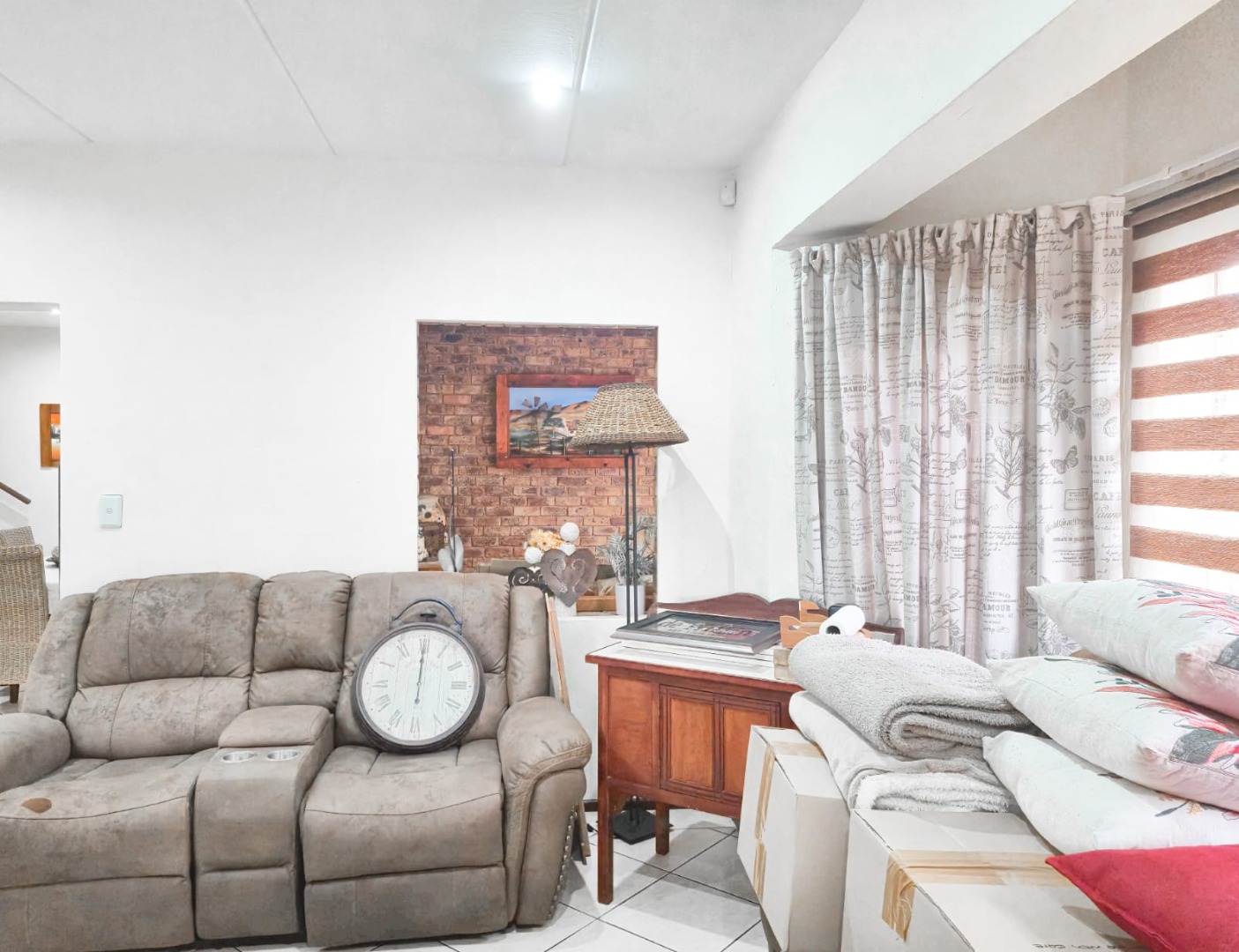 Come on in and make yourself at home in this lovely 3.5-bedroom, 2.5-bathroom rental property located in a secure estate in Olivedale, Randburg. This spacious home offers a comfortable 270 sqm of living space, perfect for families or professionals. You'll love the open-plan living and dining areas, featuring easy-to-maintain tiled flooring, modern recessed lighting, and charming exposed brick accent walls that add a touch of character. The kitchen is well-equipped with ample counter space, a handy breakfast bar, and a pantry, making meal prep a breeze. There are two lounges, a dedicated dining room, and even a guest toilet for convenience.