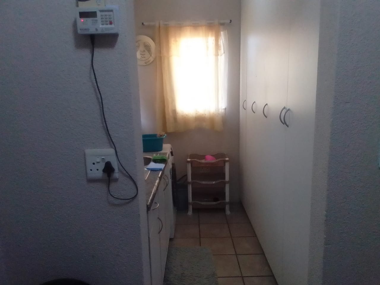 Looking for a comfy spot to call home in Aureus? This lovely 2-bedroom, 1-bathroom rental property is just the ticket! You'll find a welcoming lounge area that flows nicely, perfect for relaxing after a long day. The compact kitchen is super functional, featuring neat white cabinetry, dark countertops, and a stove/oven, making meal prep a breeze. Plus, there's a handy utility area with built-in cupboards and space for your appliances, keeping things tidy. Throughout the home, you'll appreciate the easy-to-clean tiled flooring and the natural light streaming in from the windows, creating a bright and airy feel.
