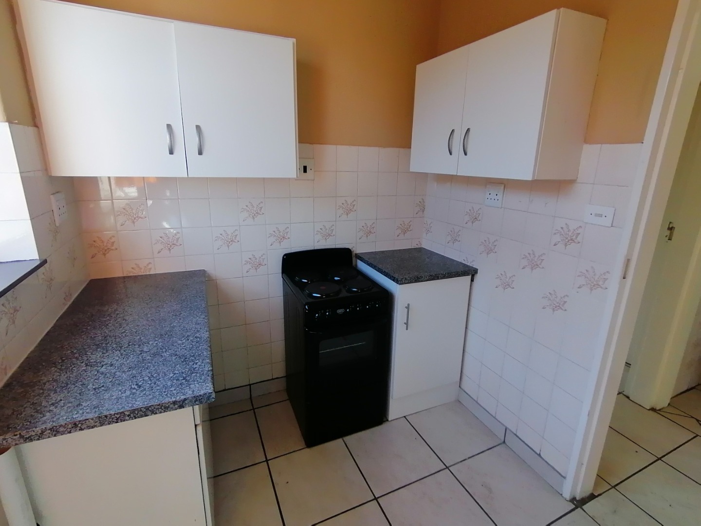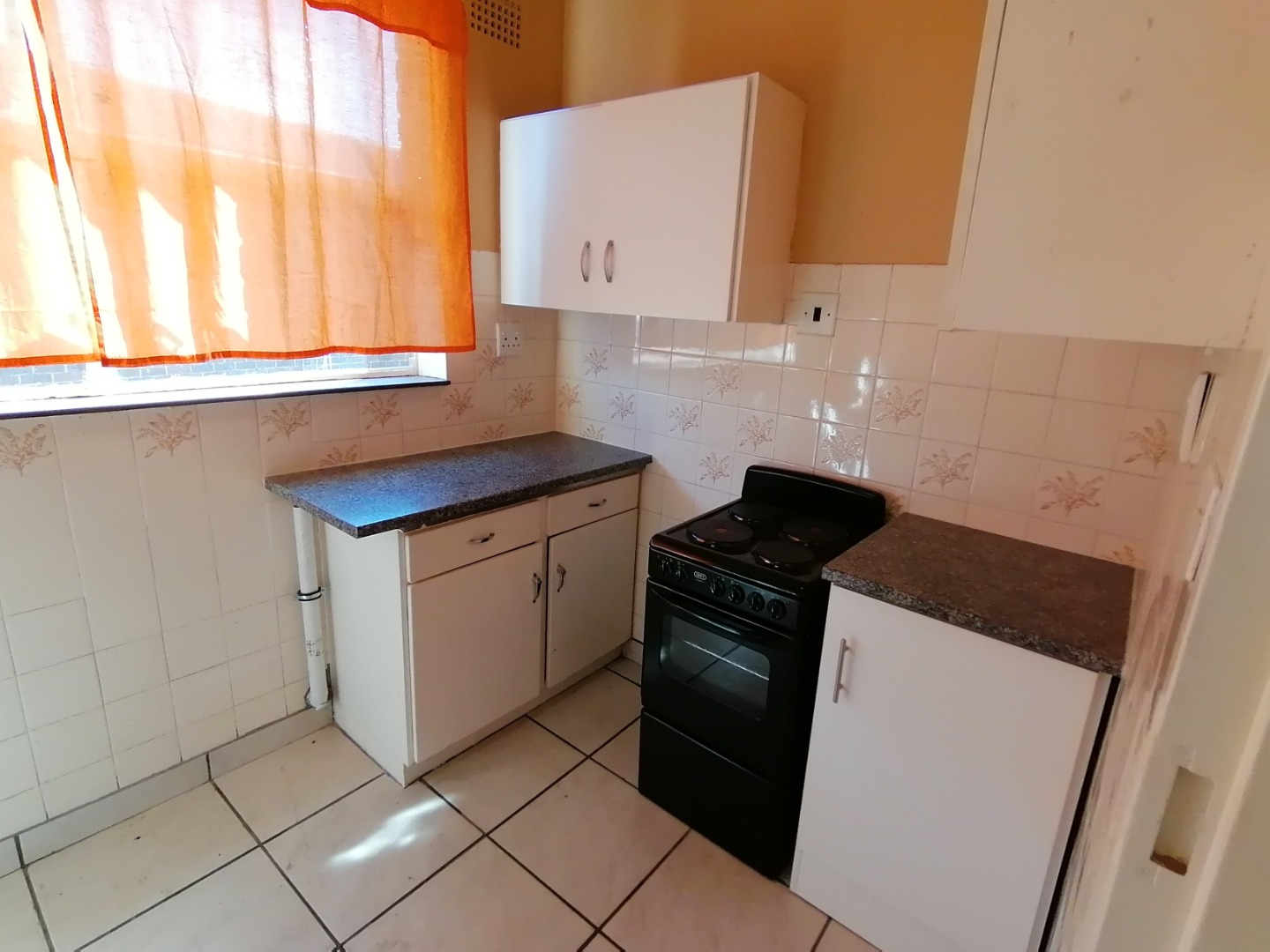 The kitchen has enough cupboard space, as well as enough space for your appliances.