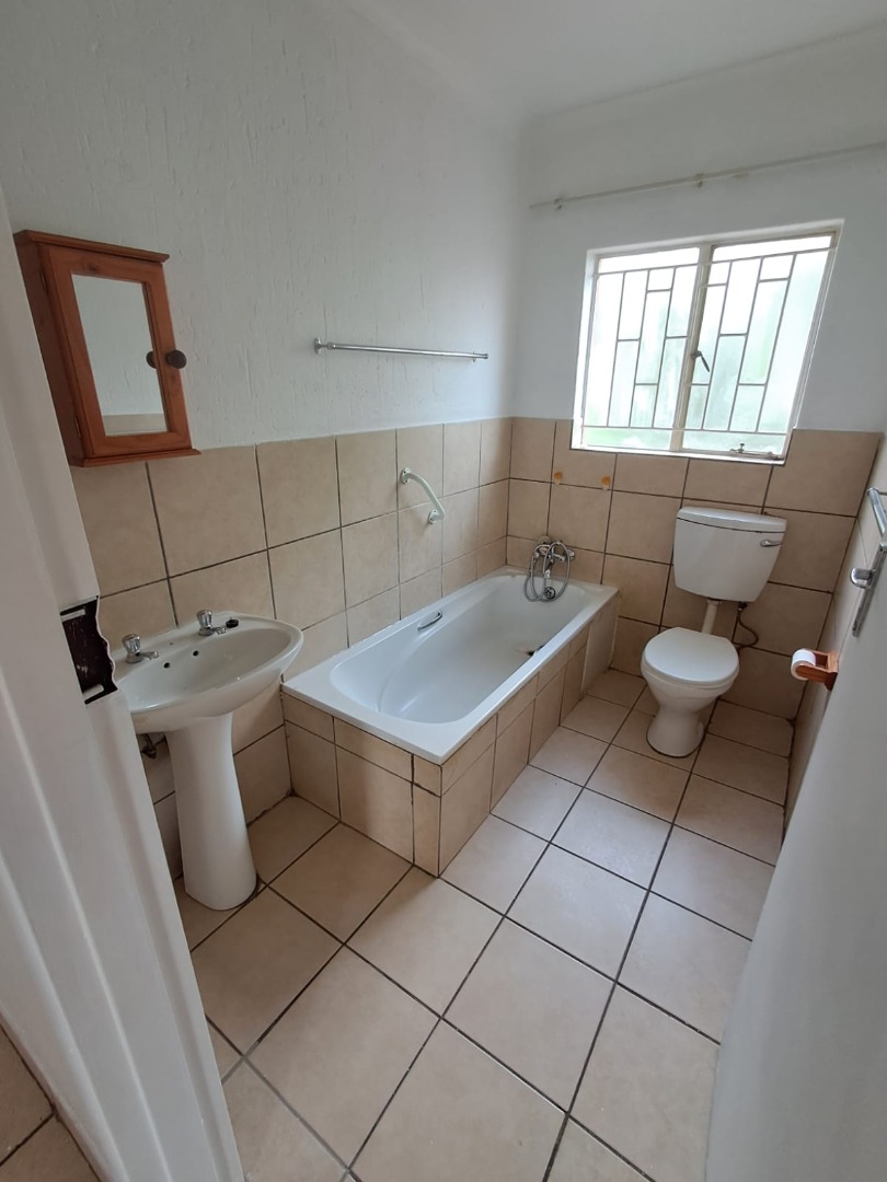 This rental offers two comfortable bedrooms with built-in cupboards, a fully tiled bathroom, and an open-plan kitchen fitted with a stove. The kitchen flows seamlessly into the living area, creating a spacious and inviting layout. The home is neatly tiled throughout, adding a modern touch, and also includes the convenience of a carport.