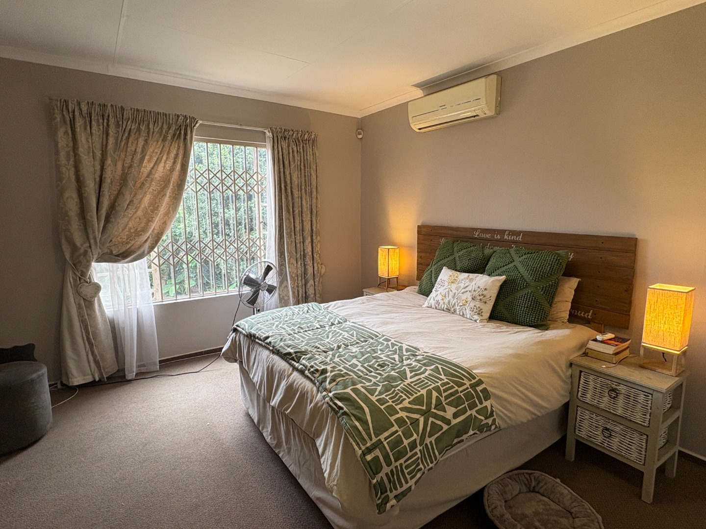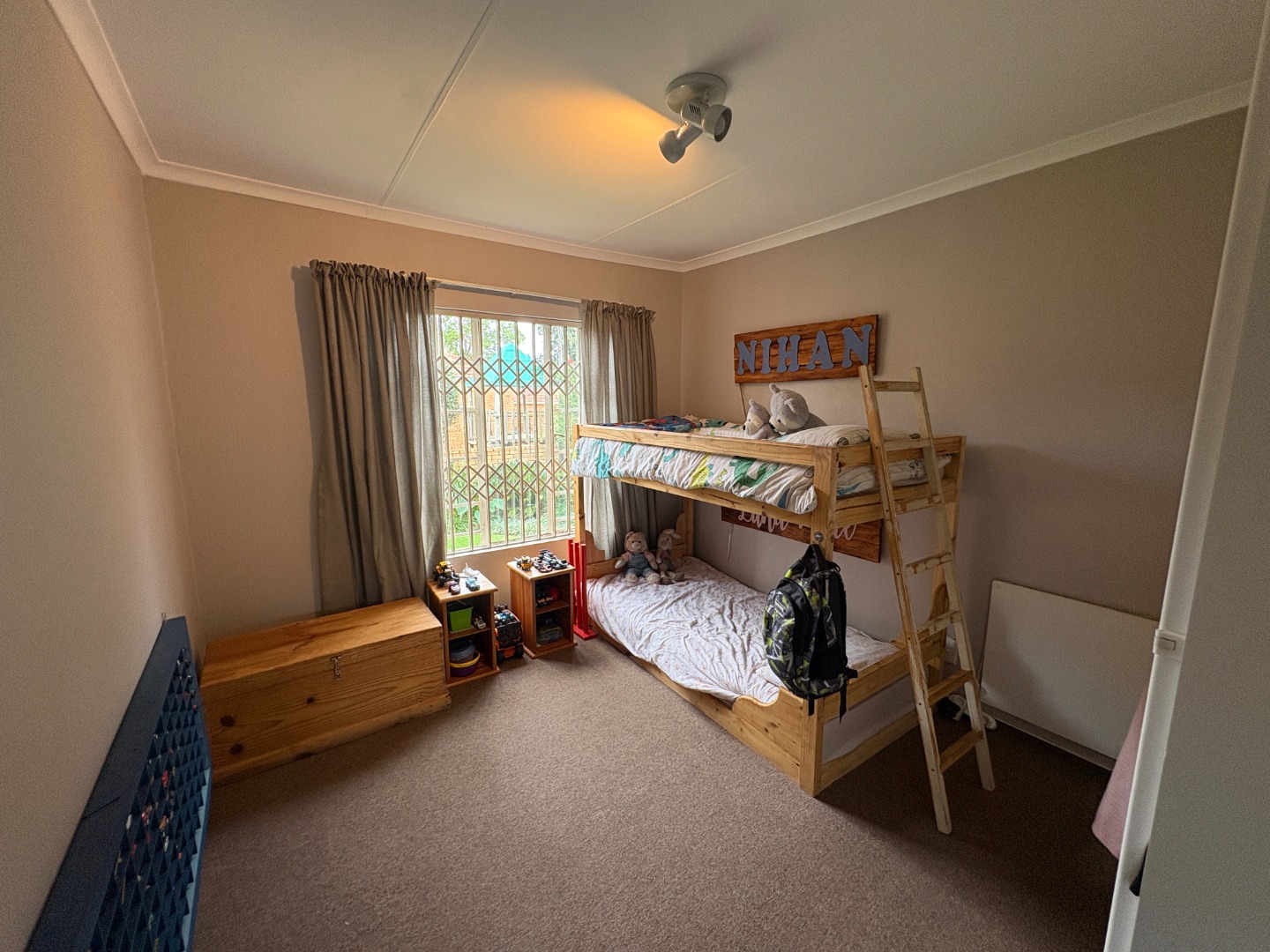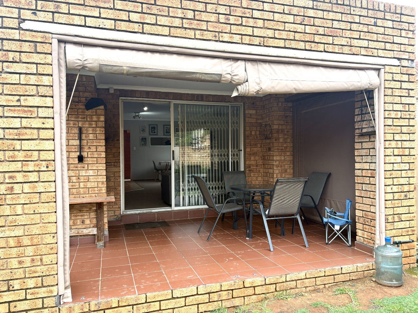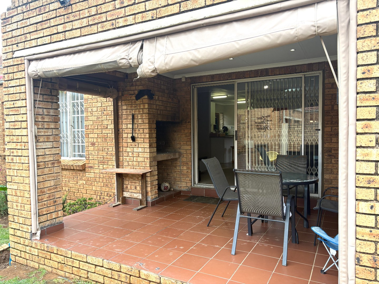 Outside, enjoy your own private retreat with a covered patio overlooking a generous garden. The patio is fitted with a built-in braai and roll-down blinds, making it the perfect all-weather entertainment space.