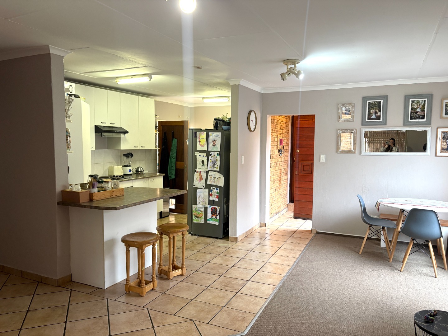 Step inside to a bright and spacious open-plan layout, seamlessly connecting the living, dining, and kitchen areas; ideal for both relaxing and entertaining. The kitchen features crisp white cabinetry, a convenient breakfast nook, and space for two appliances.