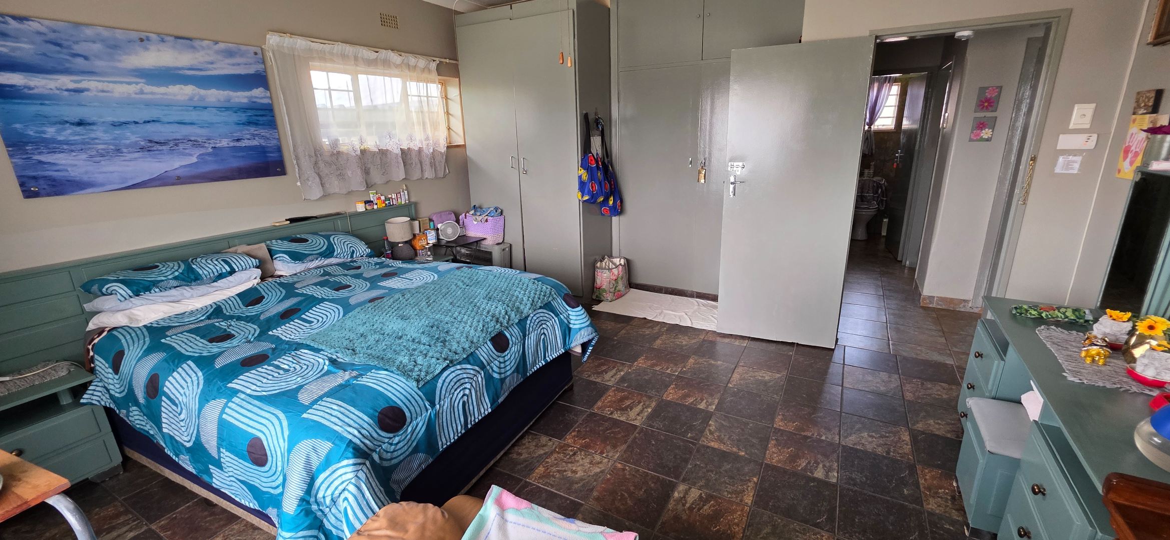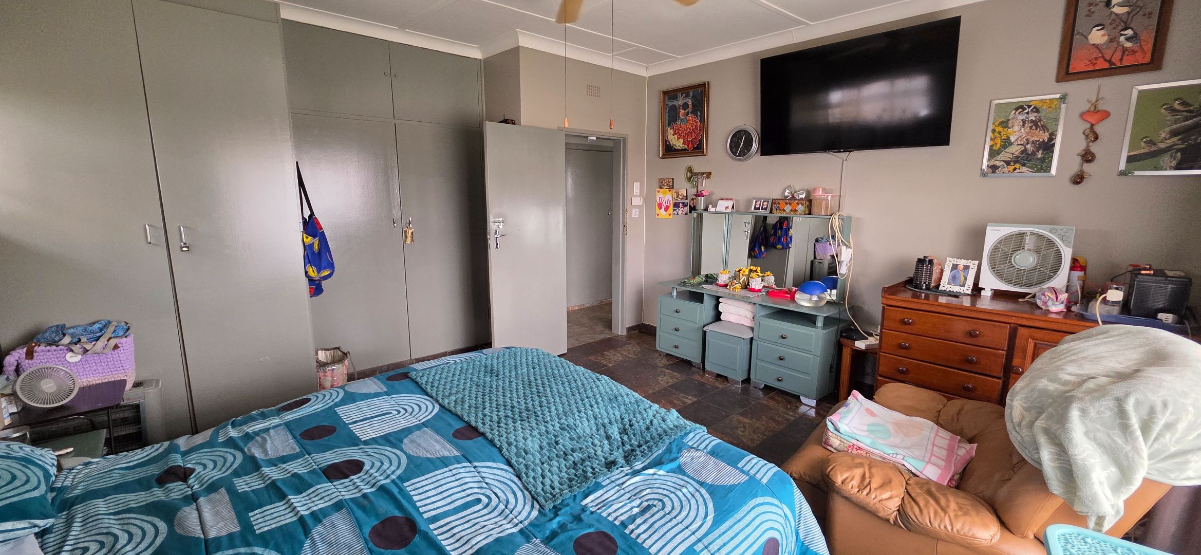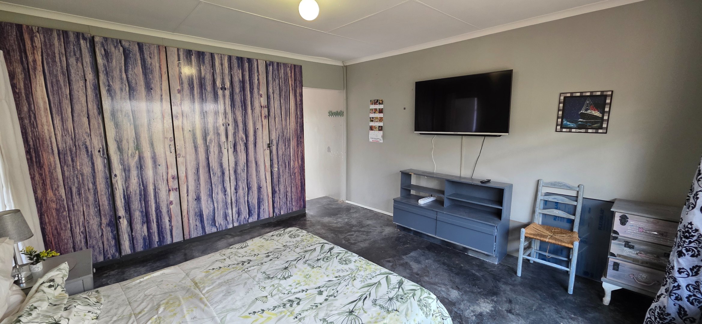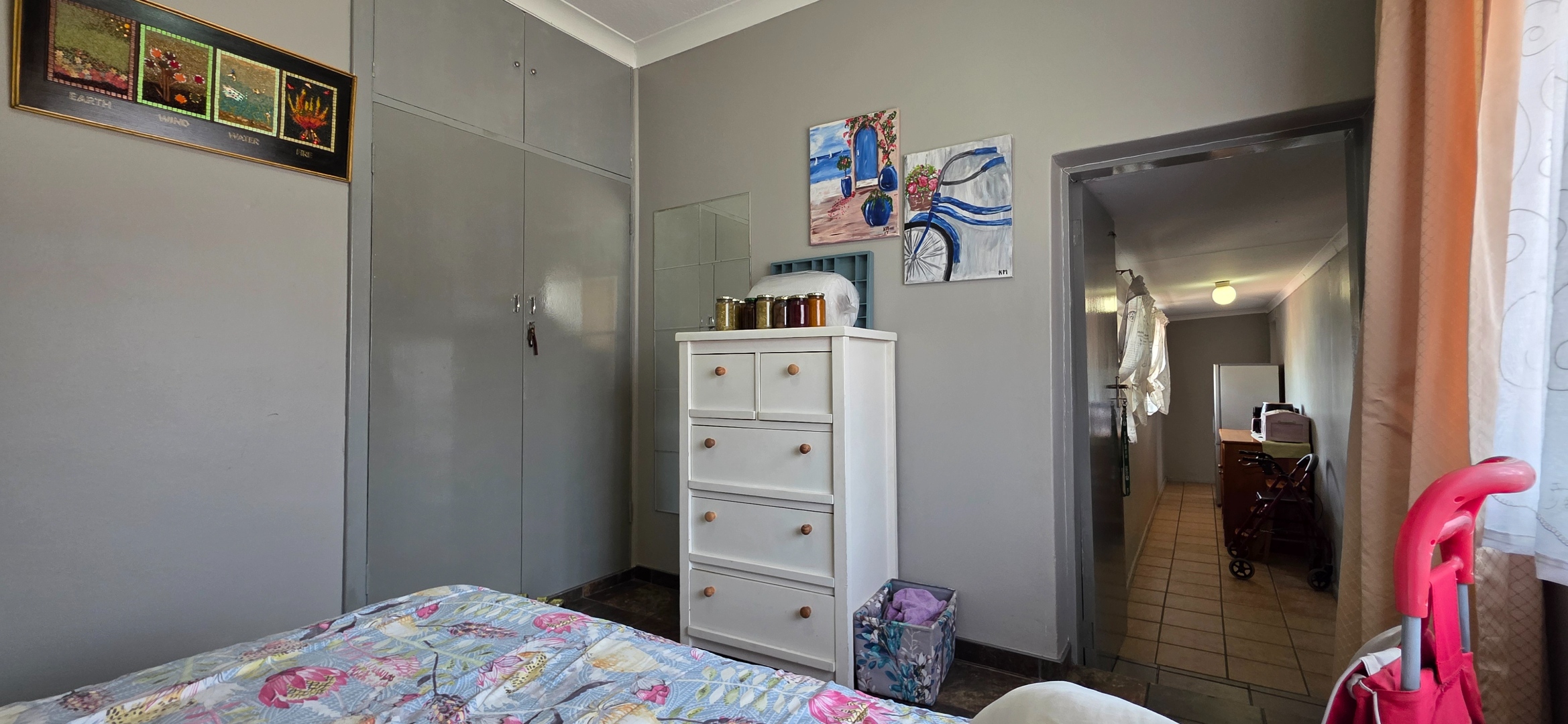 The main house offers three well-sized bedrooms, all fully tiled and fitted with built-in cupboards. Two of the bedrooms are well proportioned and comfortably accommodate a queen- and double-size bed respectively. The main bedroom is notably spacious, offering ample built-in cupboard space and comfortably accommodating a king-size bed. None of the bedrooms in the main house are en-suite.
