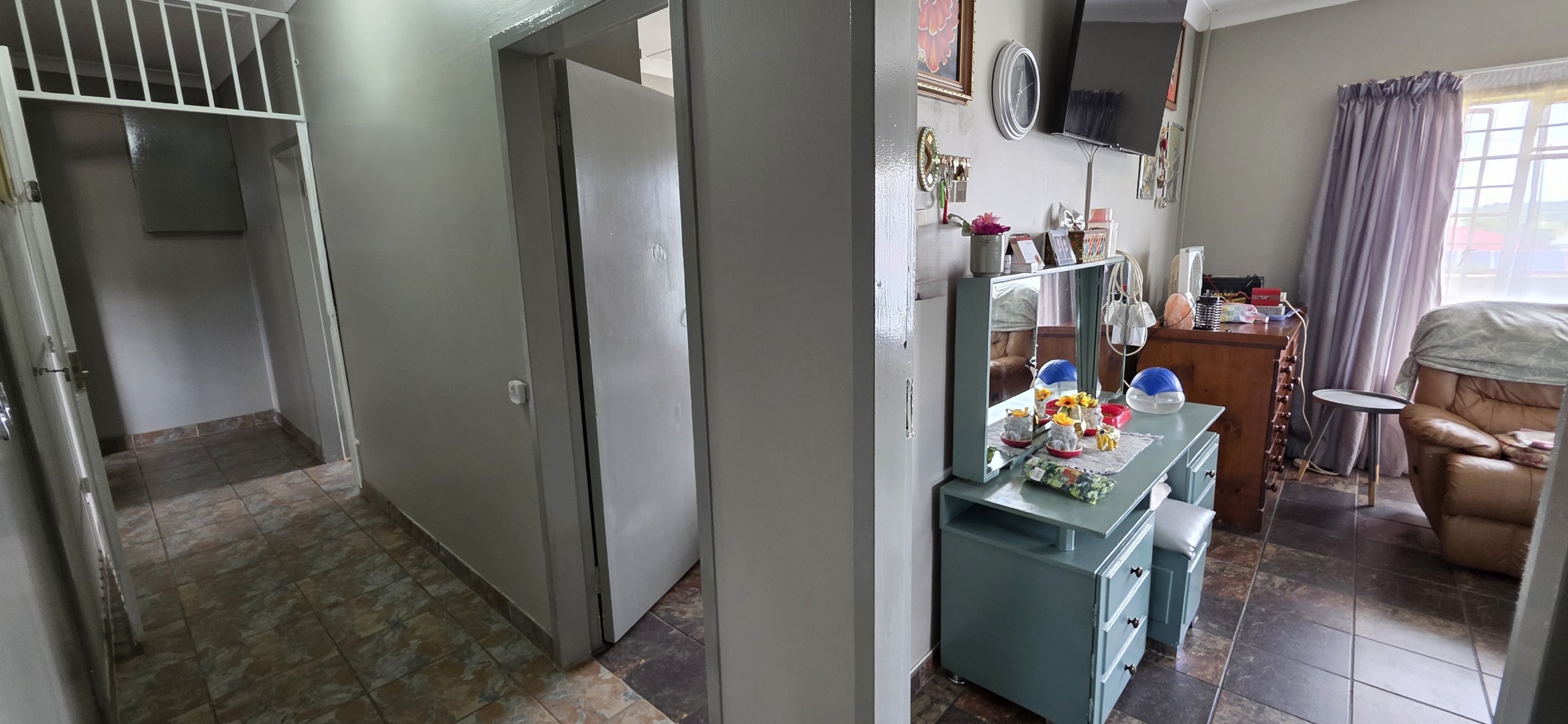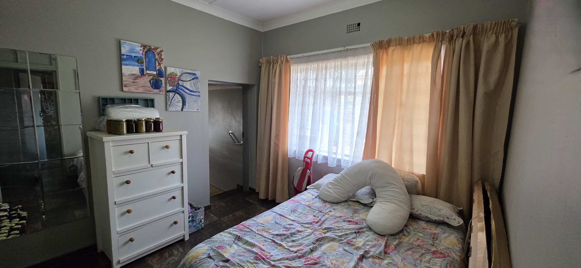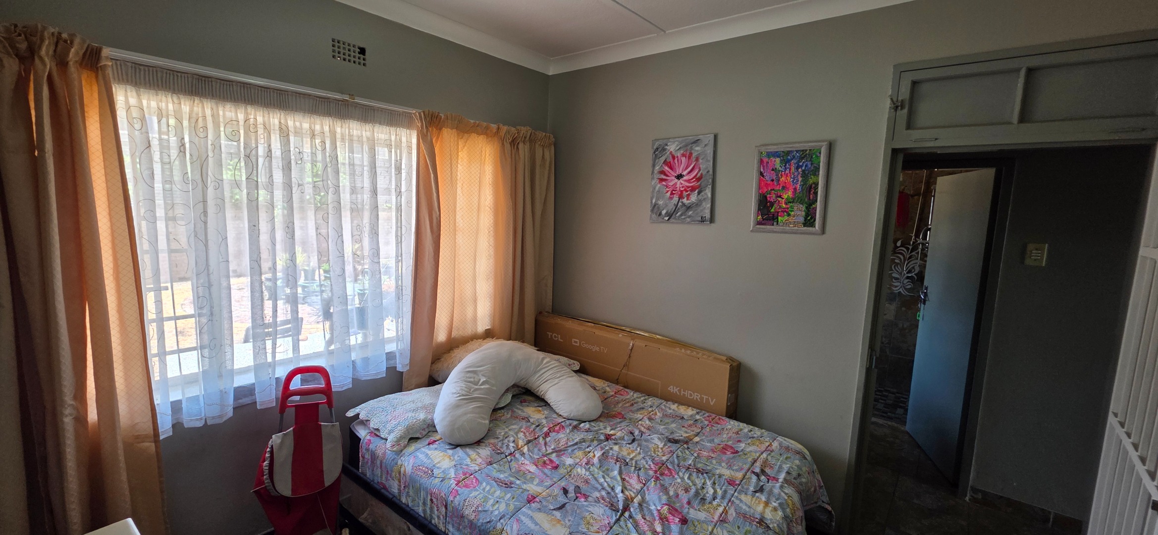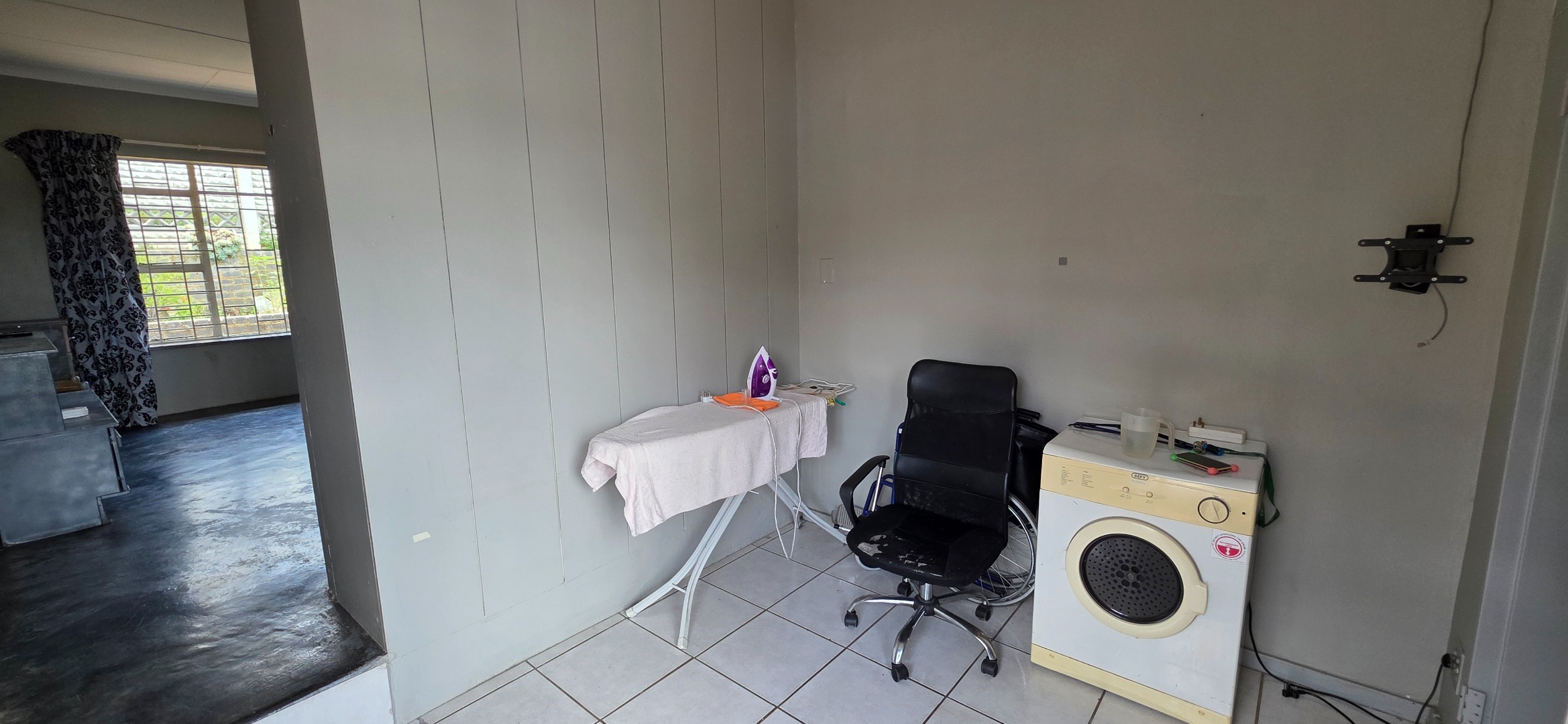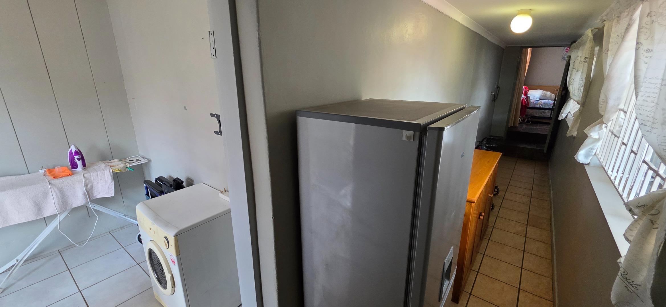 The main house offers three well-sized bedrooms, all fully tiled and fitted with built-in cupboards. Two of the bedrooms are well proportioned and comfortably accommodate a queen- and double-size bed respectively. The main bedroom is notably spacious, offering ample built-in cupboard space and comfortably accommodating a king-size bed. None of the bedrooms in the main house are en-suite.