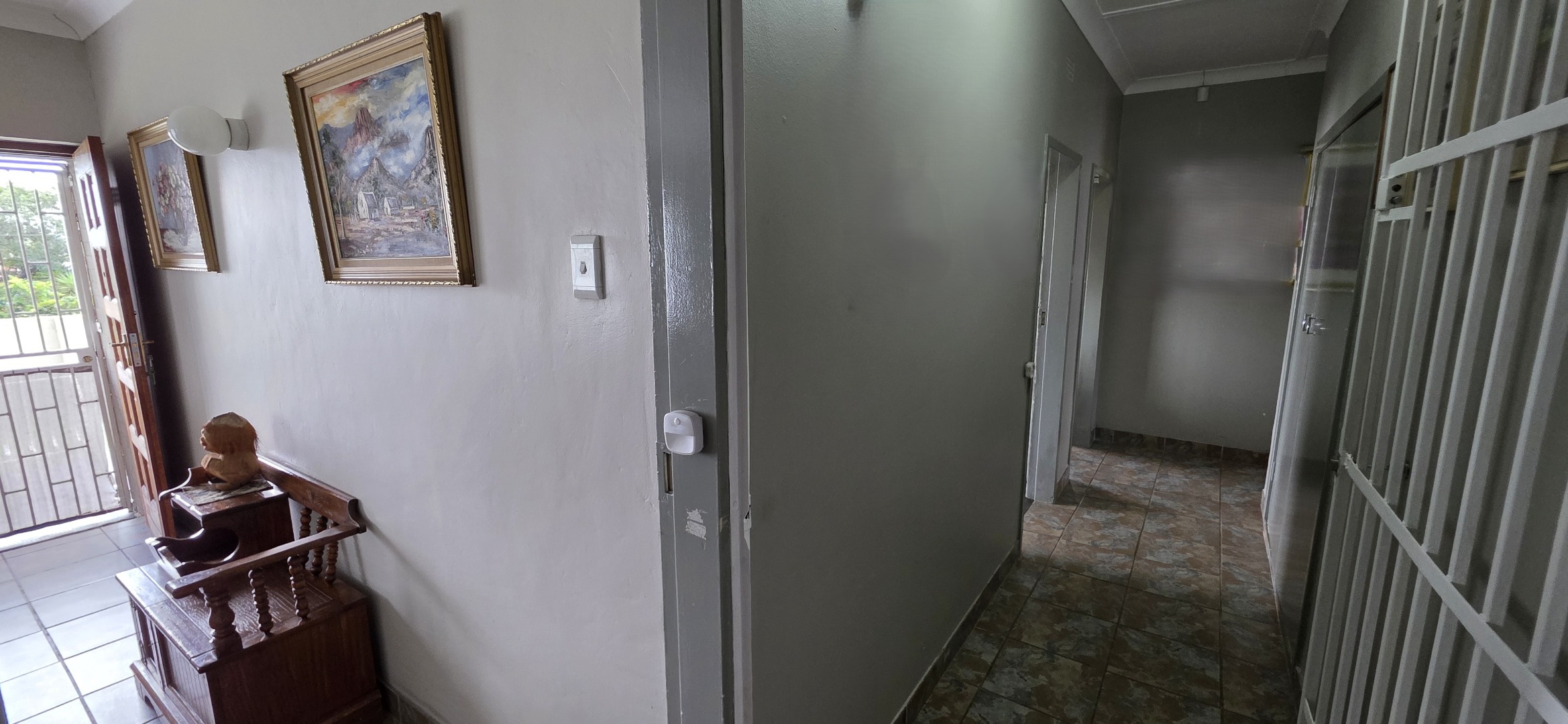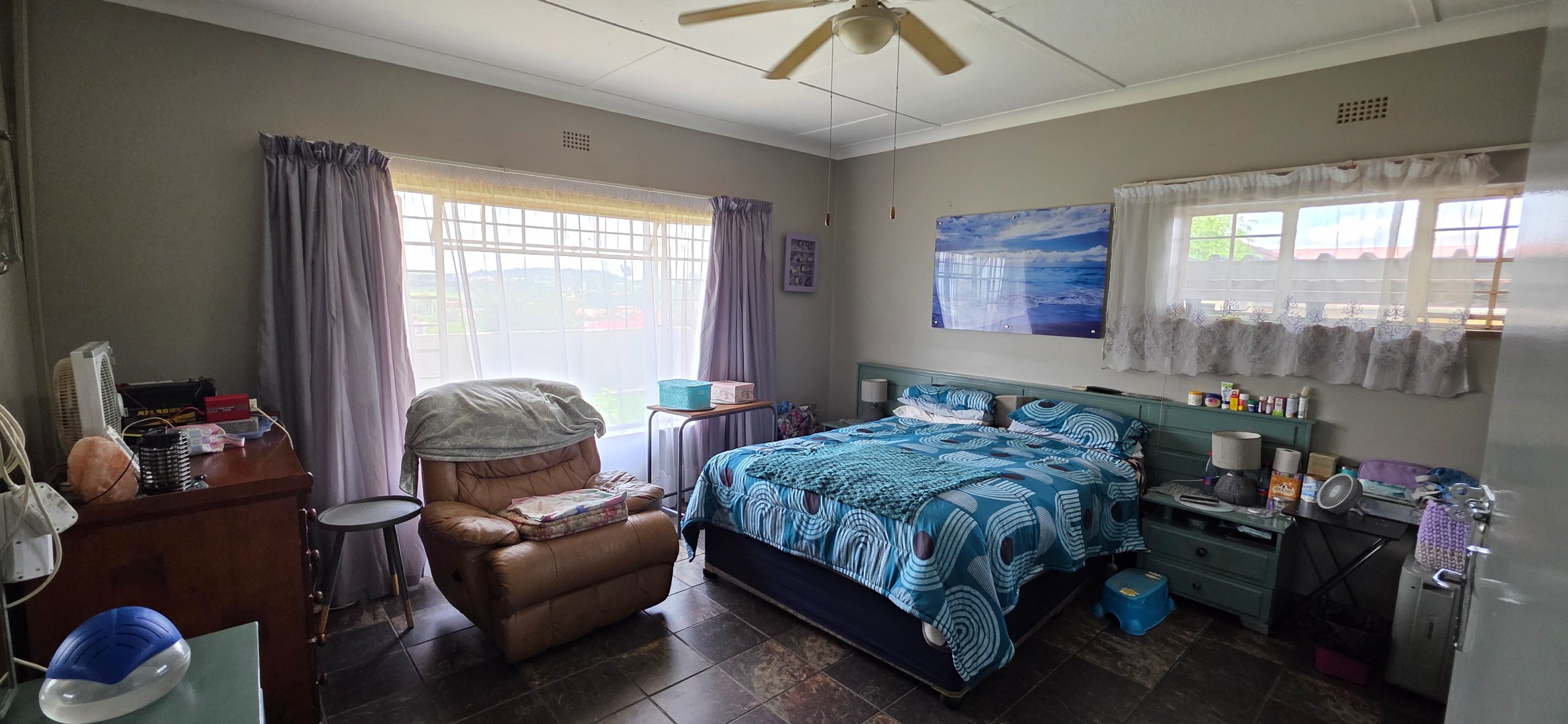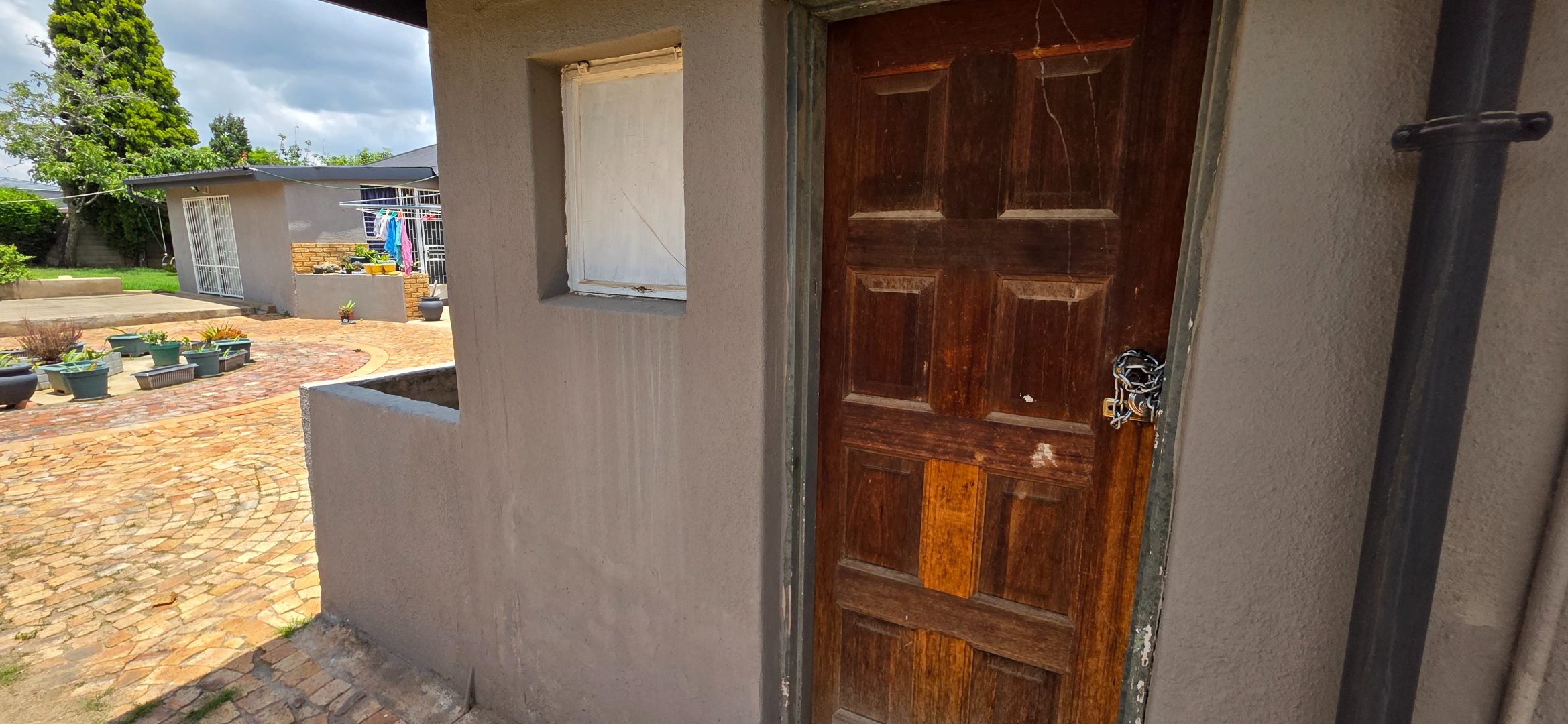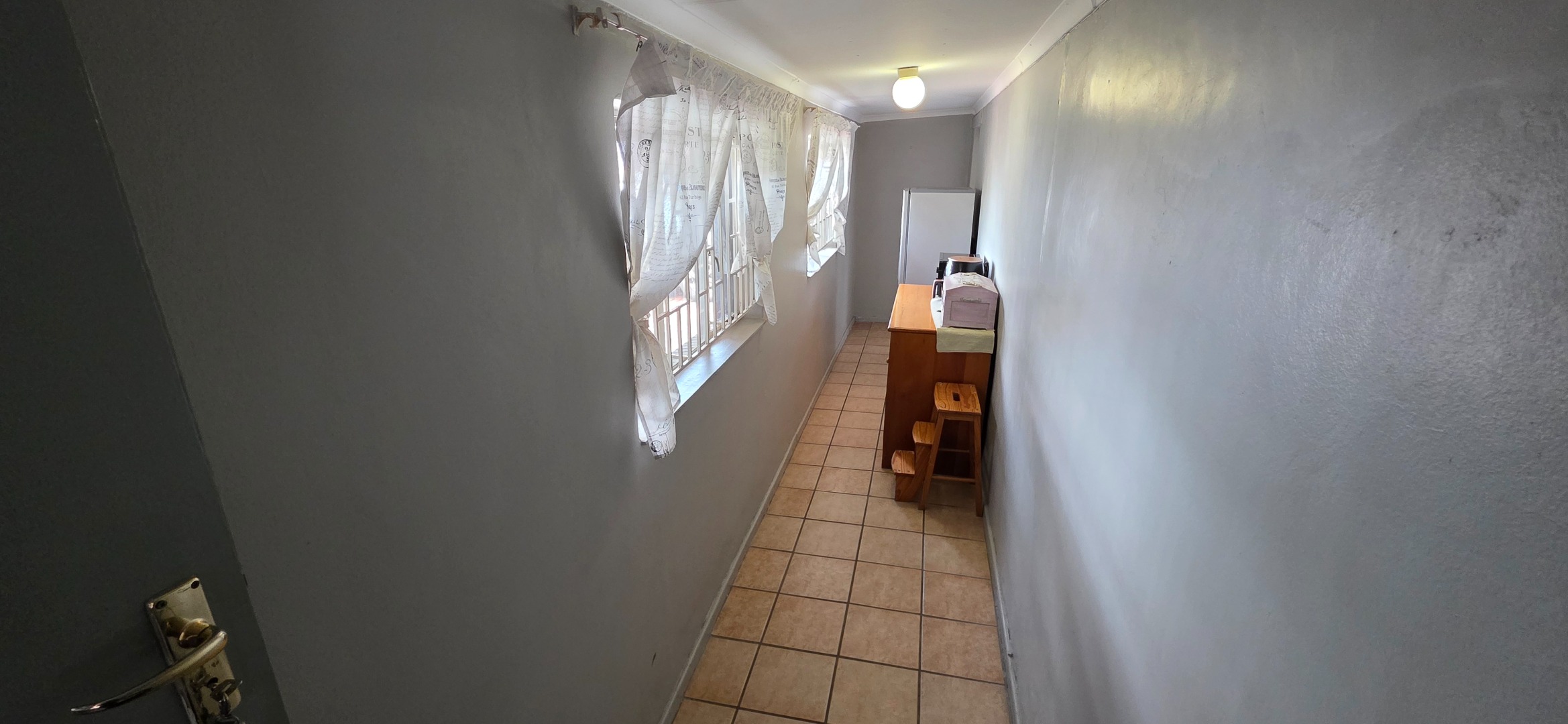 The main house offers three well-sized bedrooms, all fully tiled and fitted with built-in cupboards. Two of the bedrooms are well proportioned and comfortably accommodate a queen- and double-size bed respectively. The main bedroom is notably spacious, offering ample built-in cupboard space and comfortably accommodating a king-size bed. None of the bedrooms in the main house are en-suite.