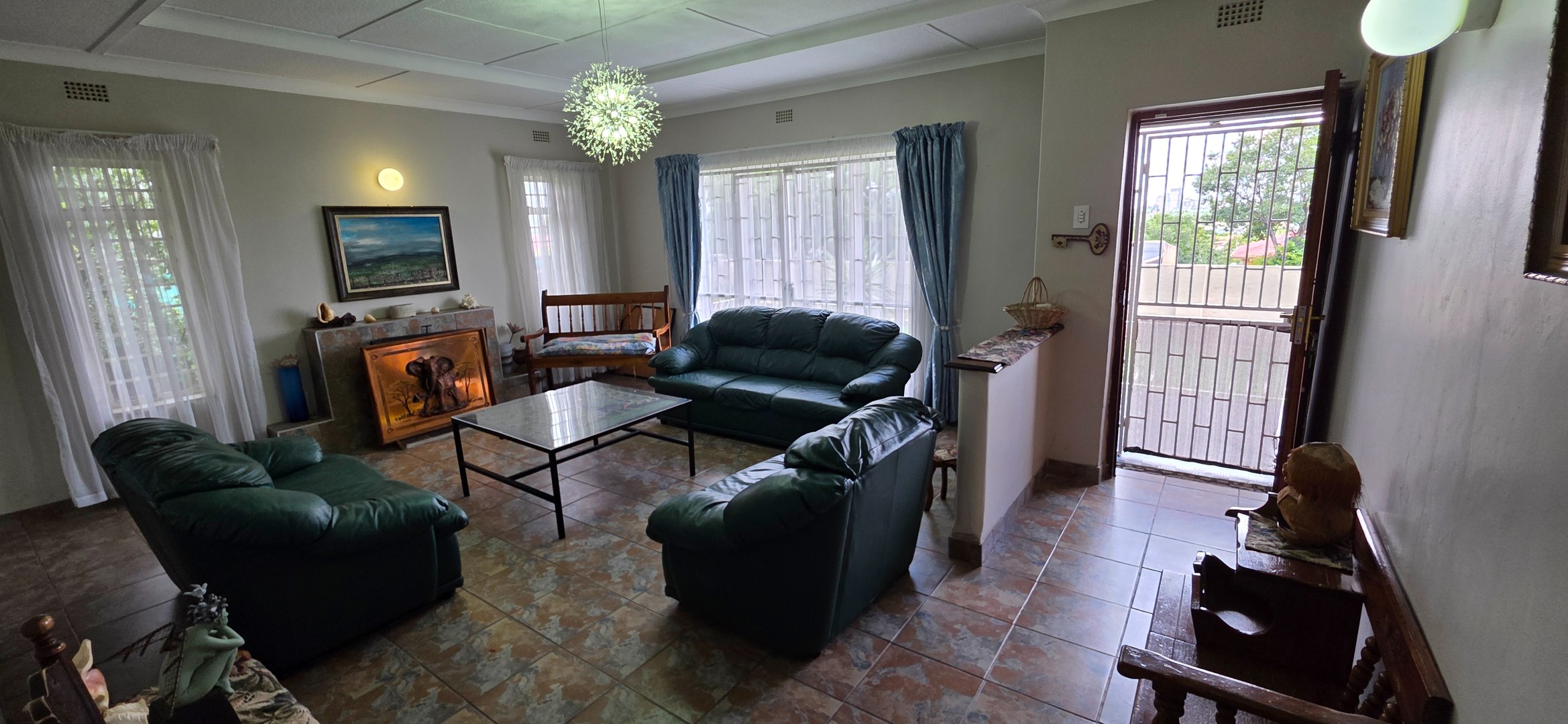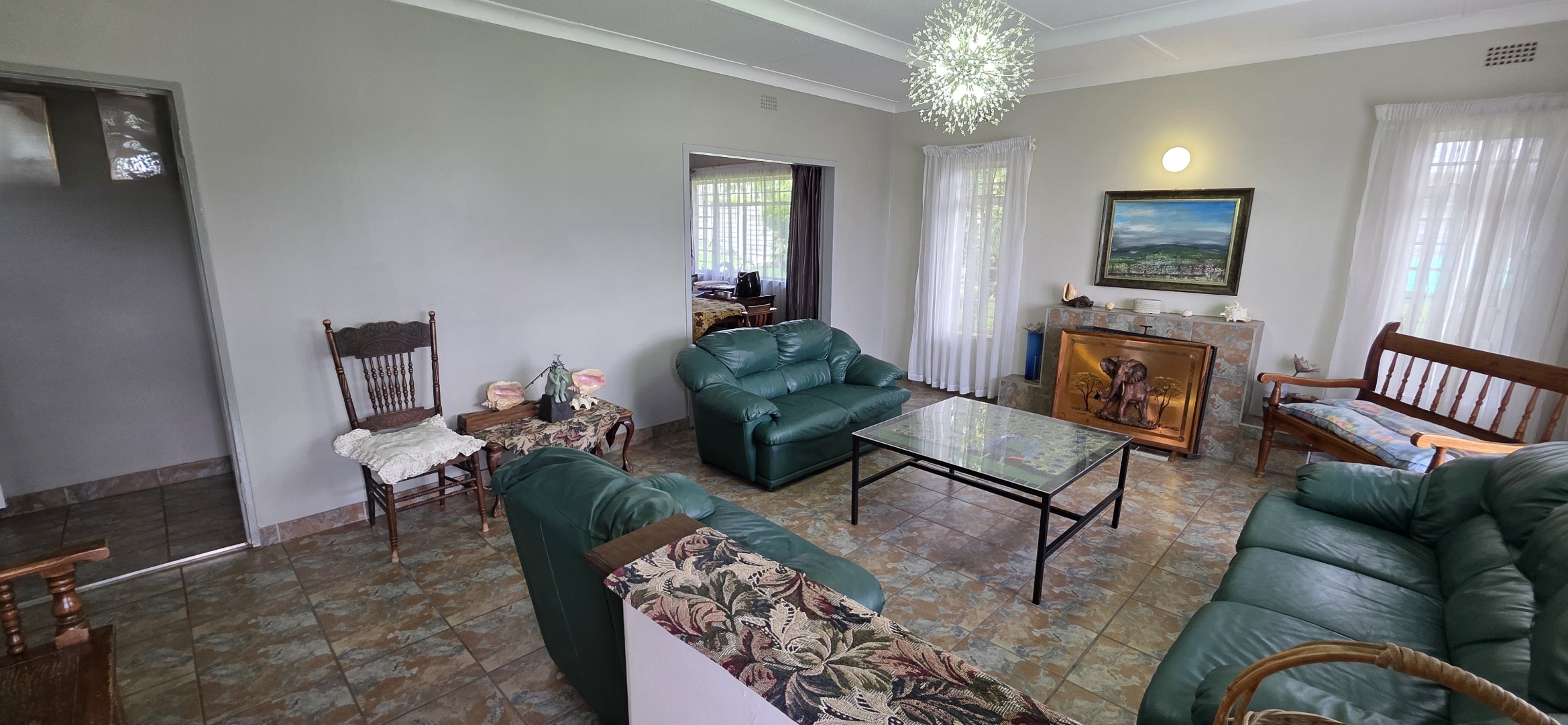 Living areas are warm and inviting, with an open-plan lounge and dining area that flows naturally through the home. The lounge features a wood-burning fireplace, creating a cosy focal point during the colder months, while good natural light enhances the sense of space. An enclosed stoep or additional living area extends from the main living space and overlooks the courtyard and garden, offering a versatile area ideal for a playroom, study, or informal relaxation space.