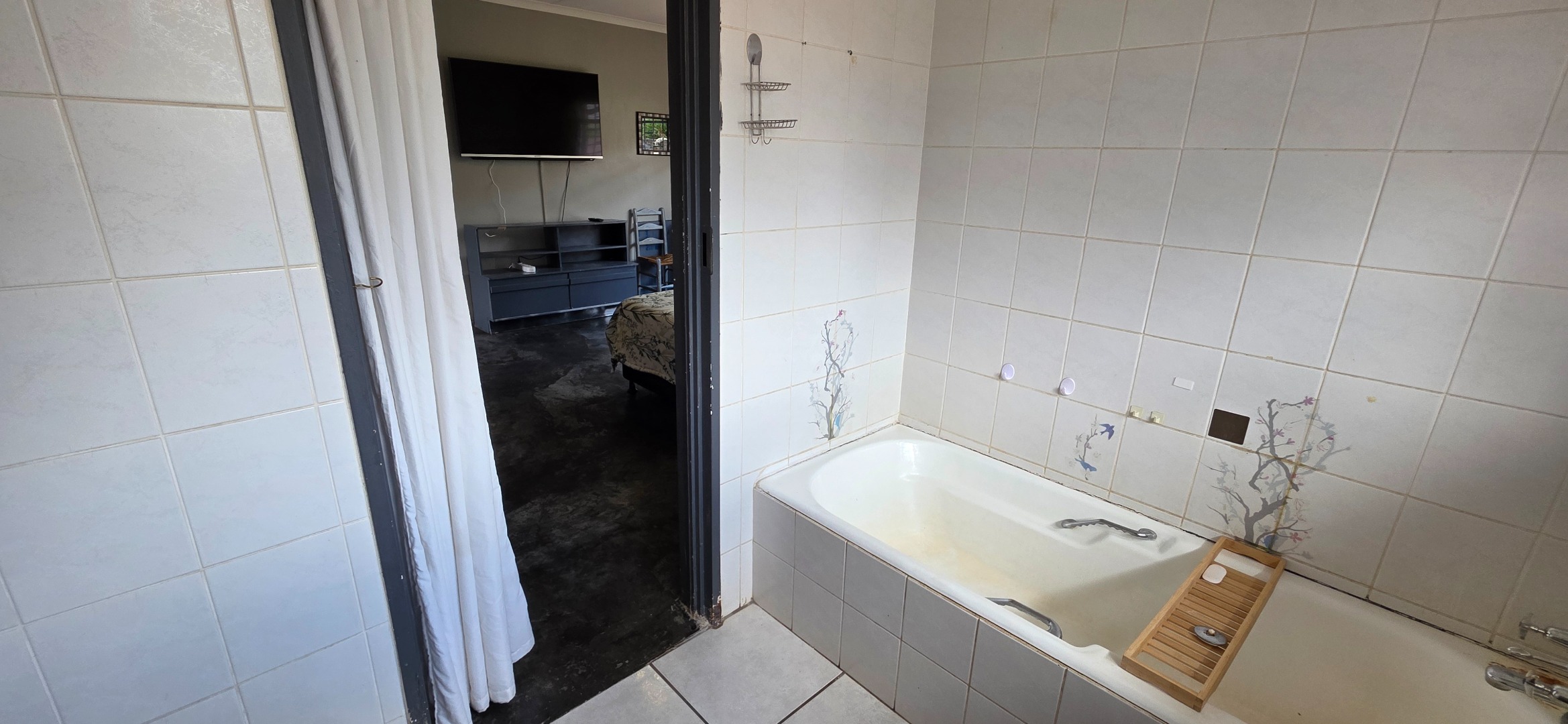 The main house is serviced by a single bathroom fitted with a bath, basin, and shower within the same space, complemented by a separate toilet, providing practical and functional family living. The bathroom is tiled and well maintained.