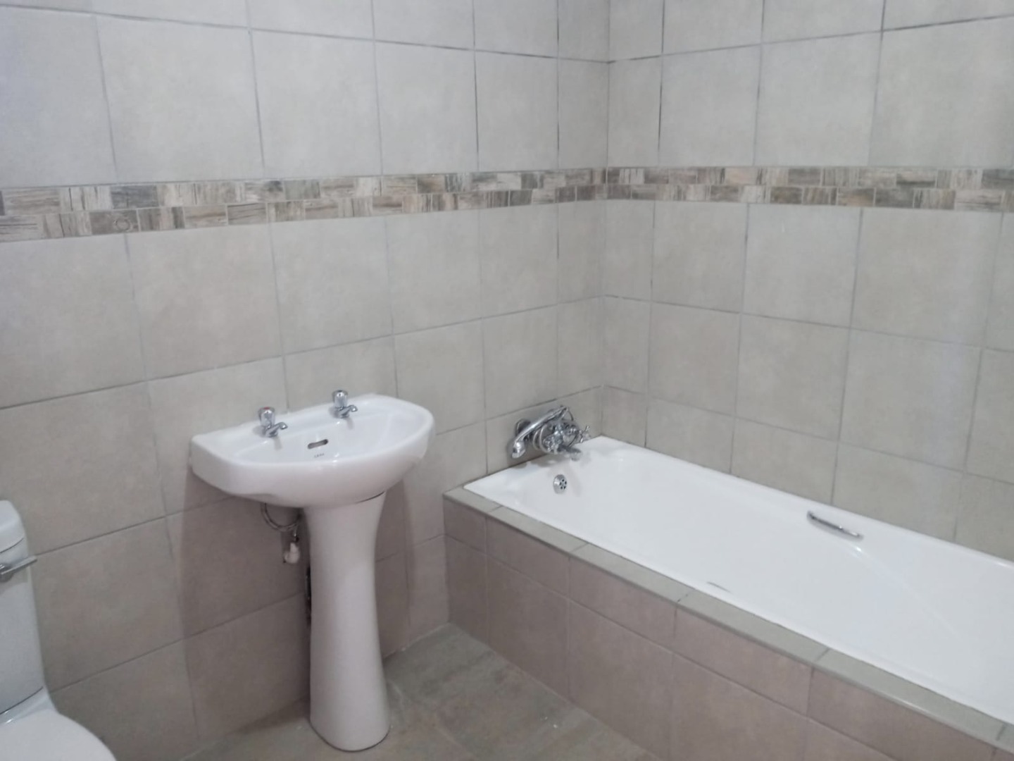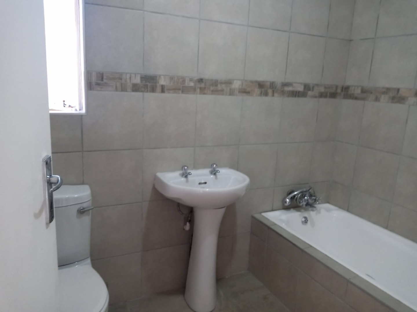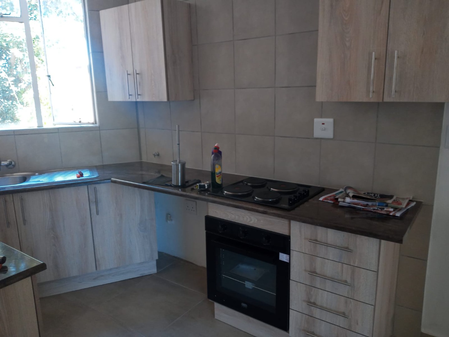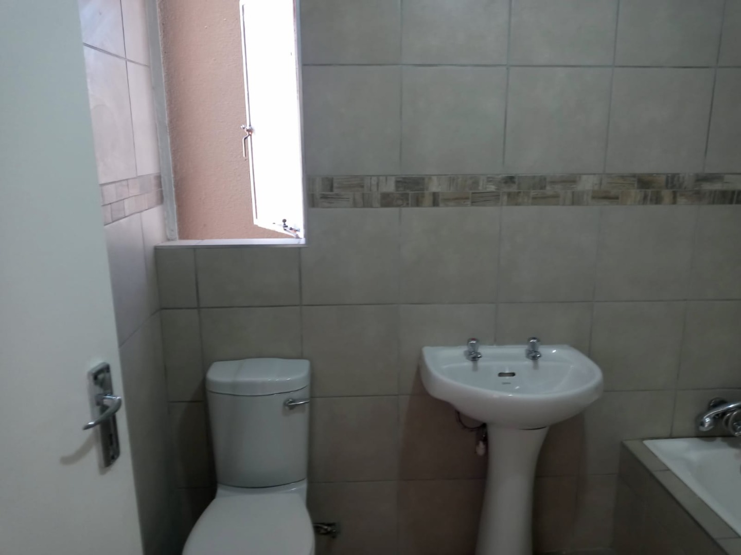 This delightful 2-bedroom apartment is perfect for those seeking a comfortable and convenient lifestyle. Both bedrooms are well-sized, featuring built-in cupboards and sleek tiling throughout. The modern bathroom is equipped with a basin, bath with a hand-shower, and toilet, offering practicality and style. The open-plan lounge is spacious and filled with natural light, extending to a sunny balcony where you can relax and enjoy your morning coffee. The kitchen provides ample cupboard space and accommodates one appliance and a single fridge, making it both functional and efficient.