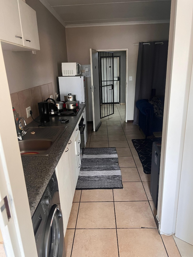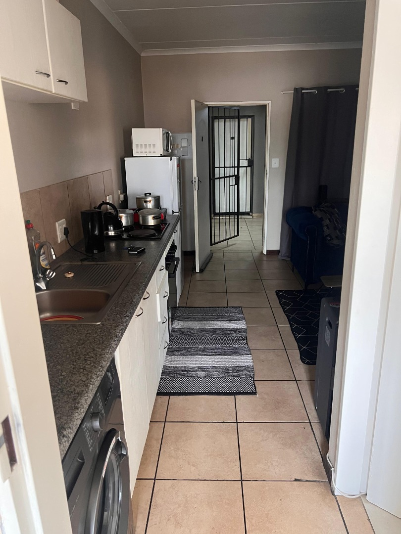 Discover this inviting 1-bedroom, 1-bathroom rental unit located in the vibrant suburb of Florida, Roodepoort. Designed for comfortable living, this property features an open-plan layout seamlessly connecting the lounge and kitchen areas, all adorned with practical tiled flooring for easy maintenance. The compact yet highly functional kitchen boasts modern cabinetry, ample countertop space, a built-in oven, and an integrated washing machine, making daily chores a breeze. Whether you prefer a gas hob or electric hob, the kitchen is well-equipped to meet your culinary needs. The cozy lounge area provides a perfect space for relaxation and entertainment, accommodating a comfortable sectional sofa and a media setup. This unfurnished unit is ideally suited for a single professional or a couple seeking a convenient and low-maintenance 'lock-up-and-go' lifestyle. Security is a priority, with the property benefiting from 24-hour security, an access gate, and electric fencing, ensuring peace of mind. A visible security gate within the passage further enhances safety. For modern connectivity, the unit is fibre-ready, providing high-speed internet access. Additionally, the presence of a visible backup power unit (inverter/generator) in the living area suggests a potential solution for uninterrupted power supply, a valuable asset in today's environment. Florida, Roodepoort, offers a well-established residential environment with convenient access to local amenities, shopping centres, and major transport routes, making it an attractive location for those seeking accessibility within the greater Johannesburg area. Key Features: * 1 Bedroom, 1 Bathroom * Open-plan lounge and kitchen * Modern kitchen with integrated oven and washing machine * Tiled flooring throughout * 24-hour security with access gate and electric fencing * Fibre-ready connectivity * Potential for backup power (inverter/generator unit) * Convenient Florida, Roodepoort location