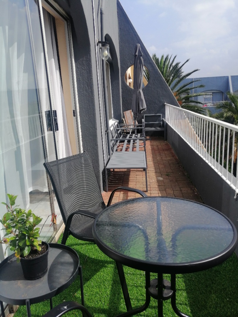 Experience relaxed living in this charming apartment, located in a unique complex where the balcony captures the tranquil appeal of outdoor living. The spacious, sunlit living room features tiled floors throughout and opens via sliding doors to a large balcony overlooking manicured gardens, communal braai facilities and the inviting swimming pool.
