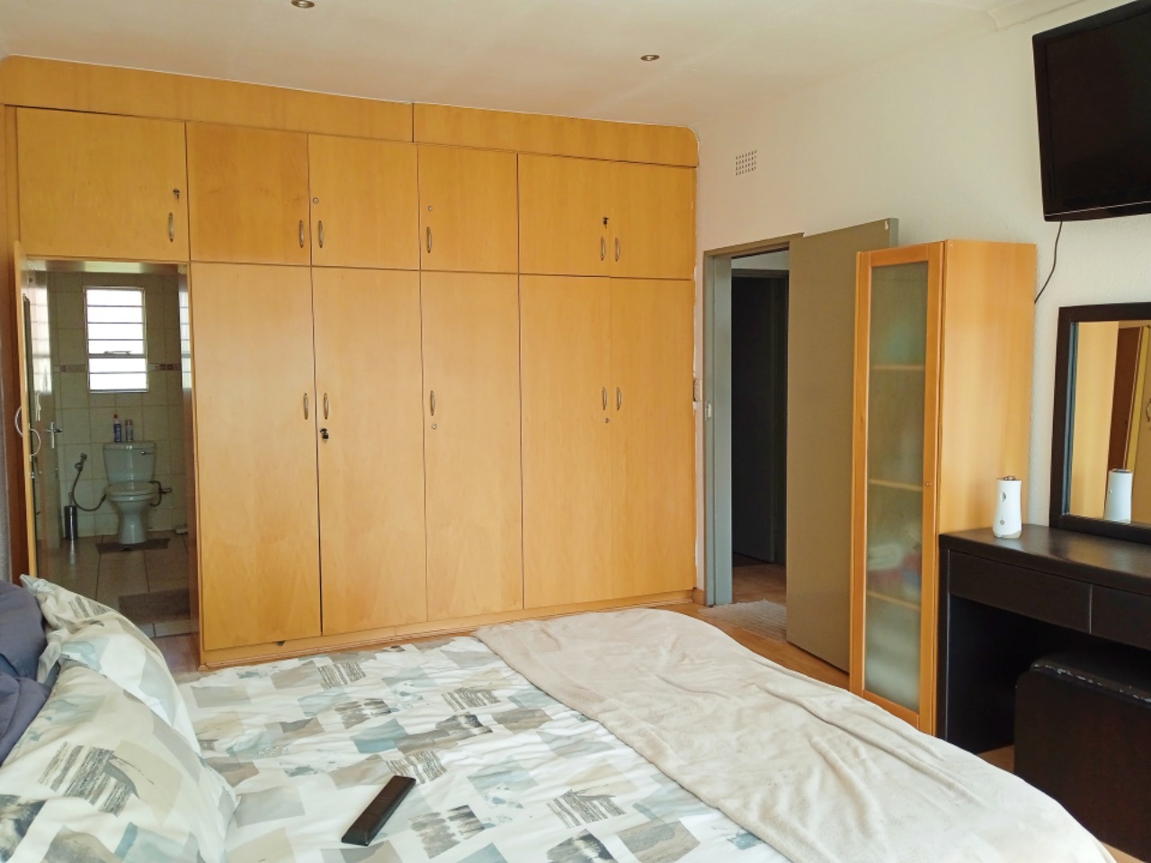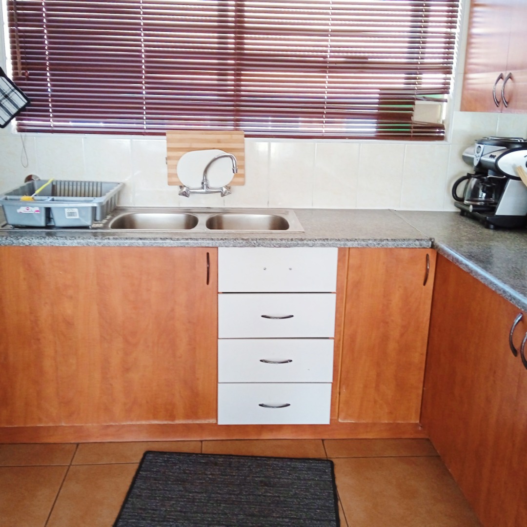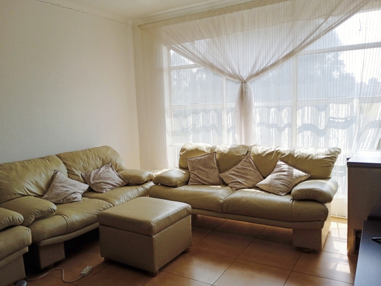 Tiles and laminate flooring throughout, a stunning kitchen with a gas hob, 2 bathrooms (main en-suite), 3 enormous bedrooms with built in cupboards, and a living area large enough to fit a dining suite as well.