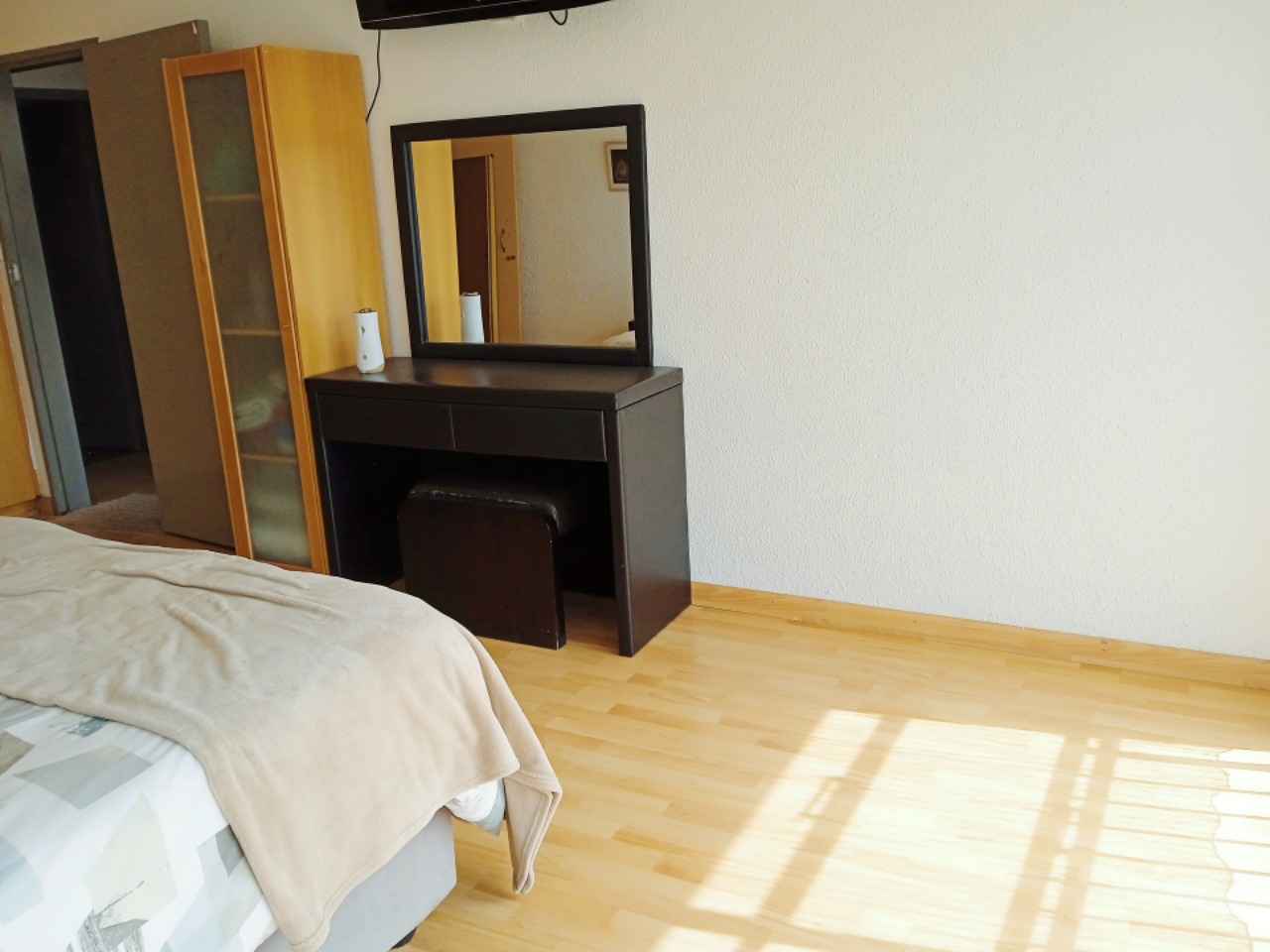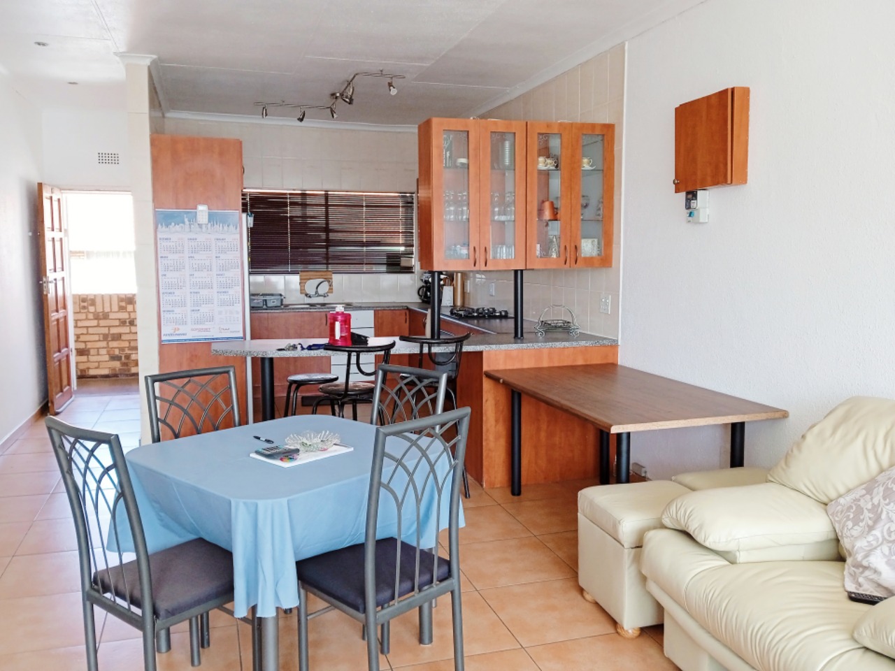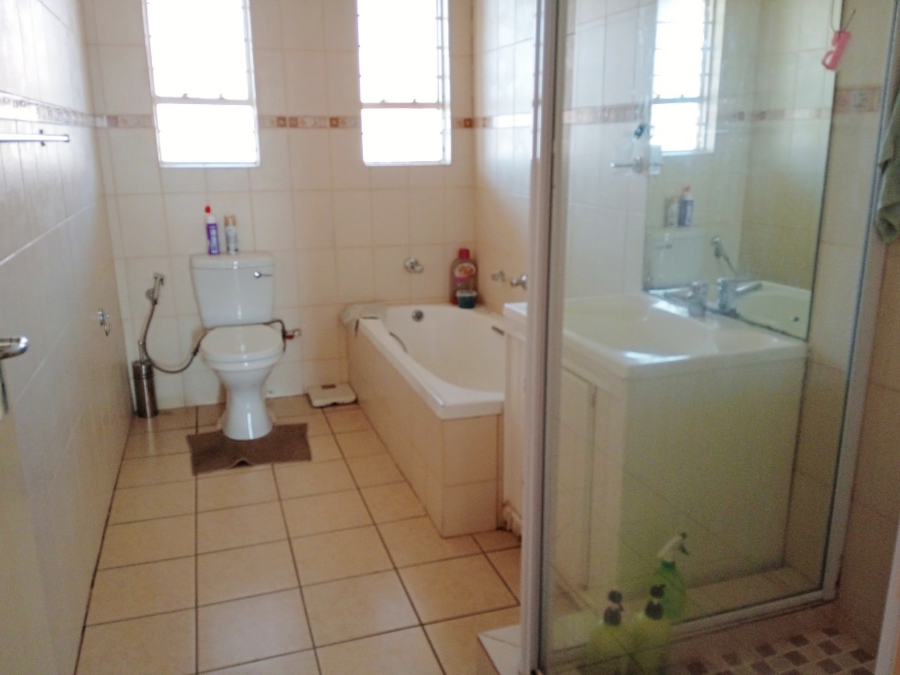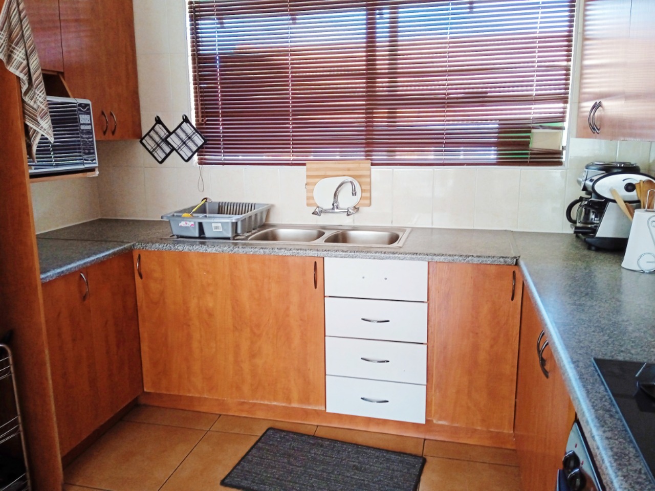 Tiles and laminate flooring throughout, a stunning kitchen with a gas hob, 2 bathrooms (main en-suite), 3 enormous bedrooms with built in cupboards, and a living area large enough to fit a dining suite as well.