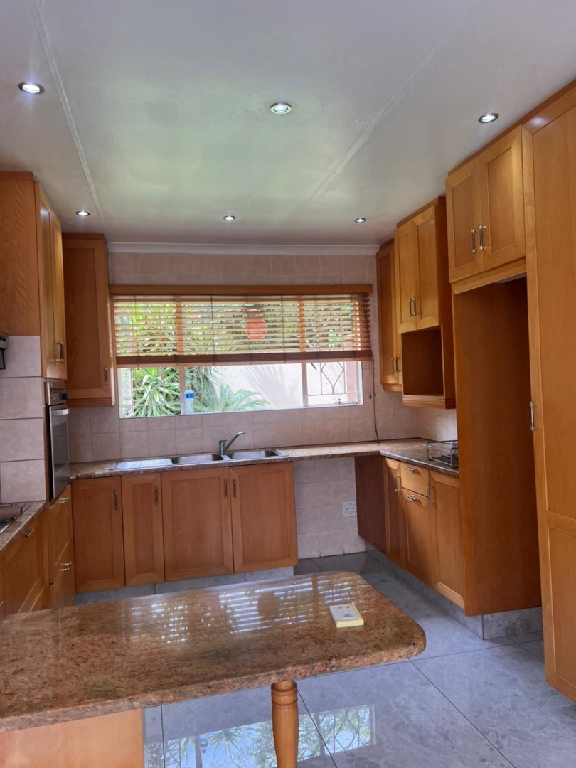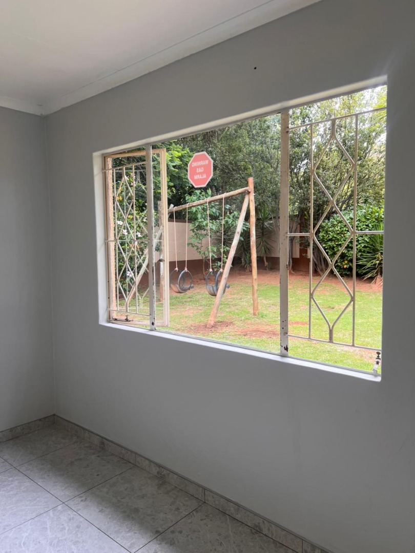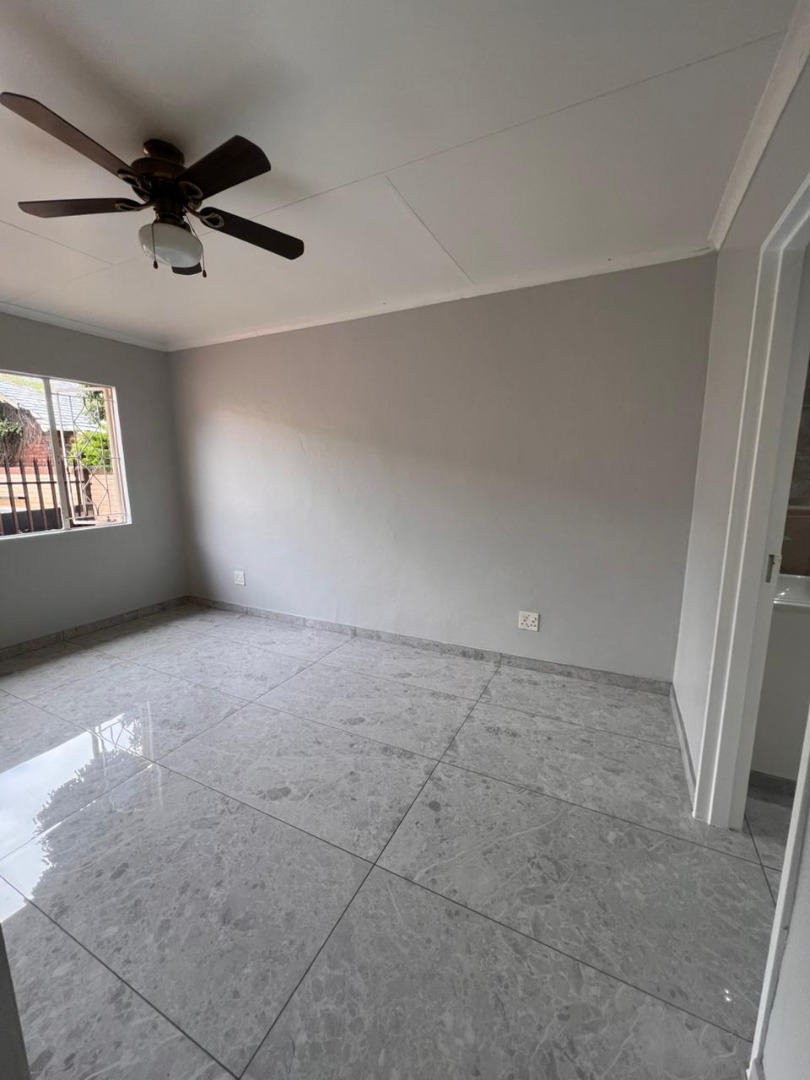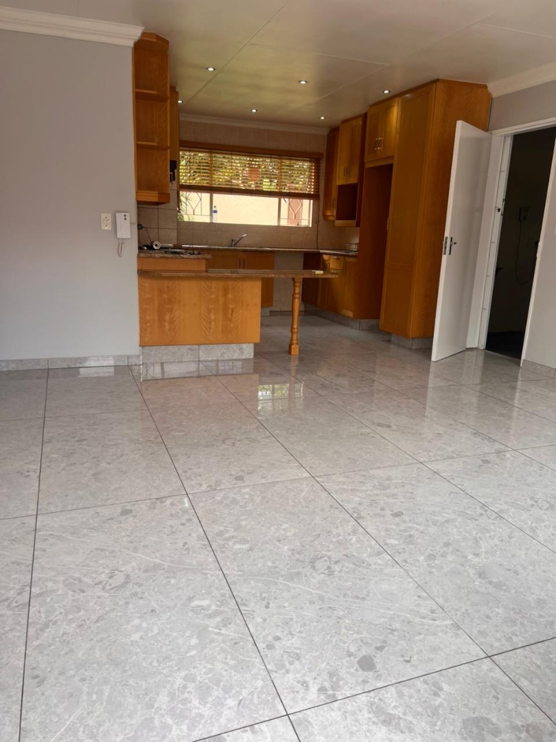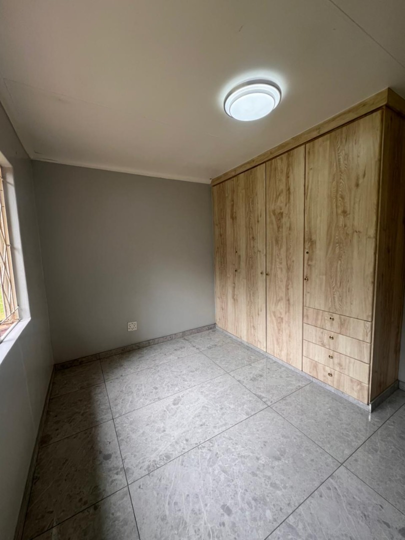 This well-maintained 3-bedroom home is conveniently situated in the same yard as the main house, offering comfortable living with a great balance of privacy and shared amenities. It is situated in Ontdekkerspark, Roodepoort, offers comfortable living for families or professionals. The heart of the home is a spacious kitchen, featuring extensive light wood cabinetry, granite-style countertops, and a practical island/breakfast bar. Equipped with a built-in oven, hob, and extractor fan, this kitchen benefits from ample natural light through a large window and modern recessed ceiling lights, all set on easy-to-maintain tiled flooring. A dedicated lounge provides a comfortable space for relaxation and entertainment.