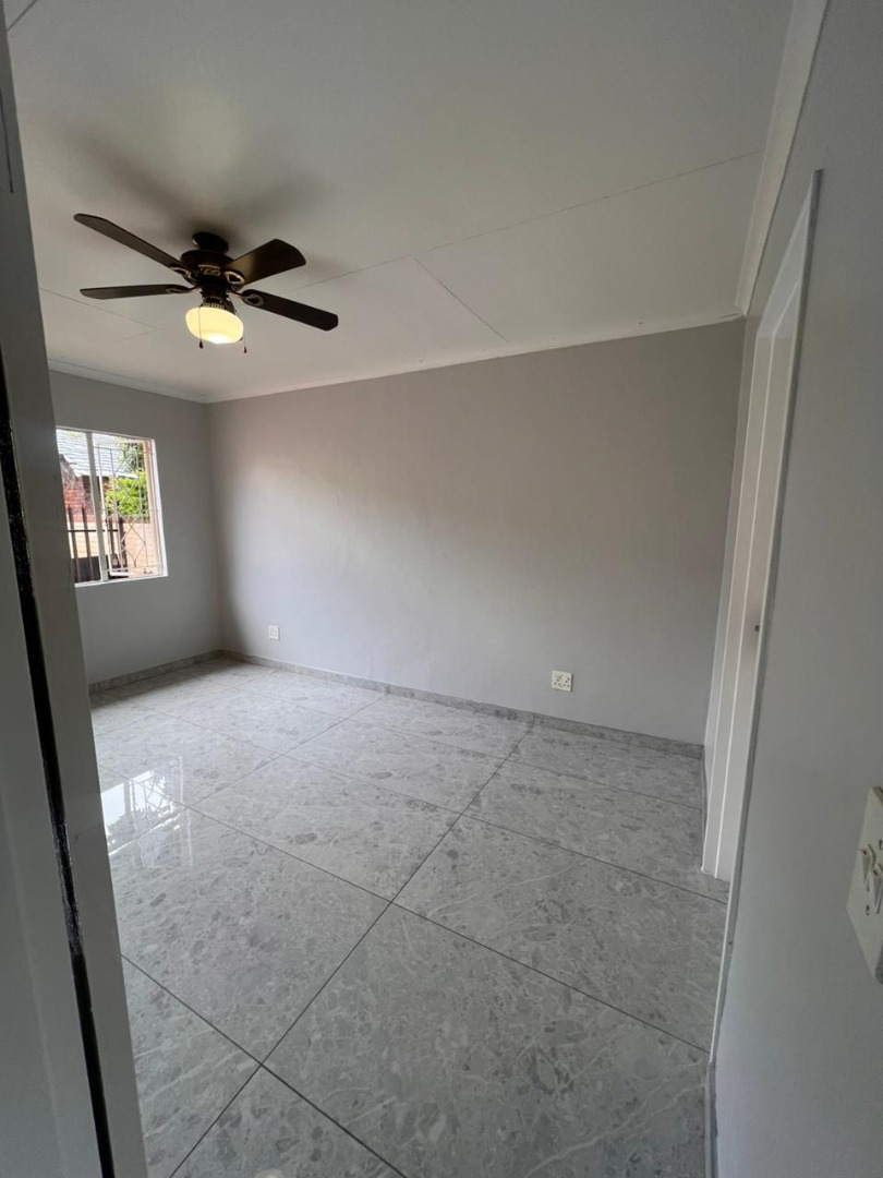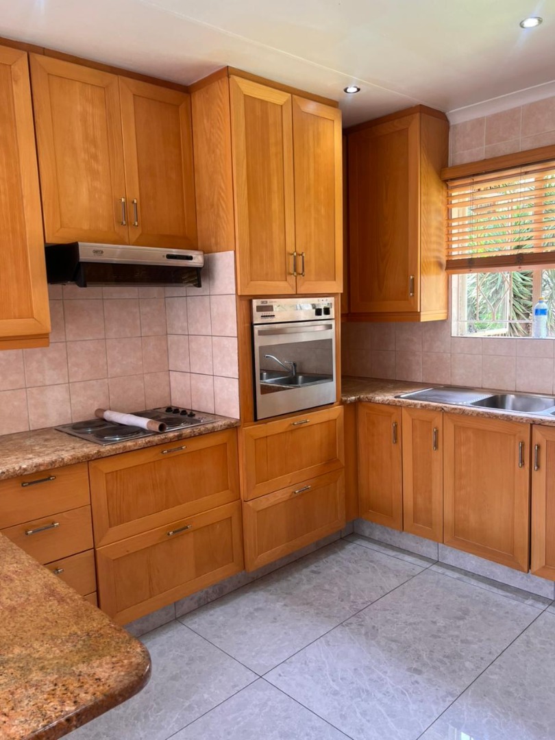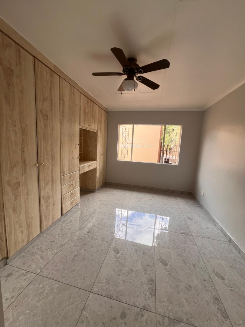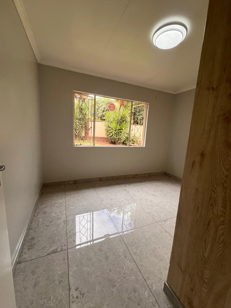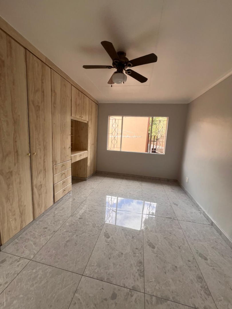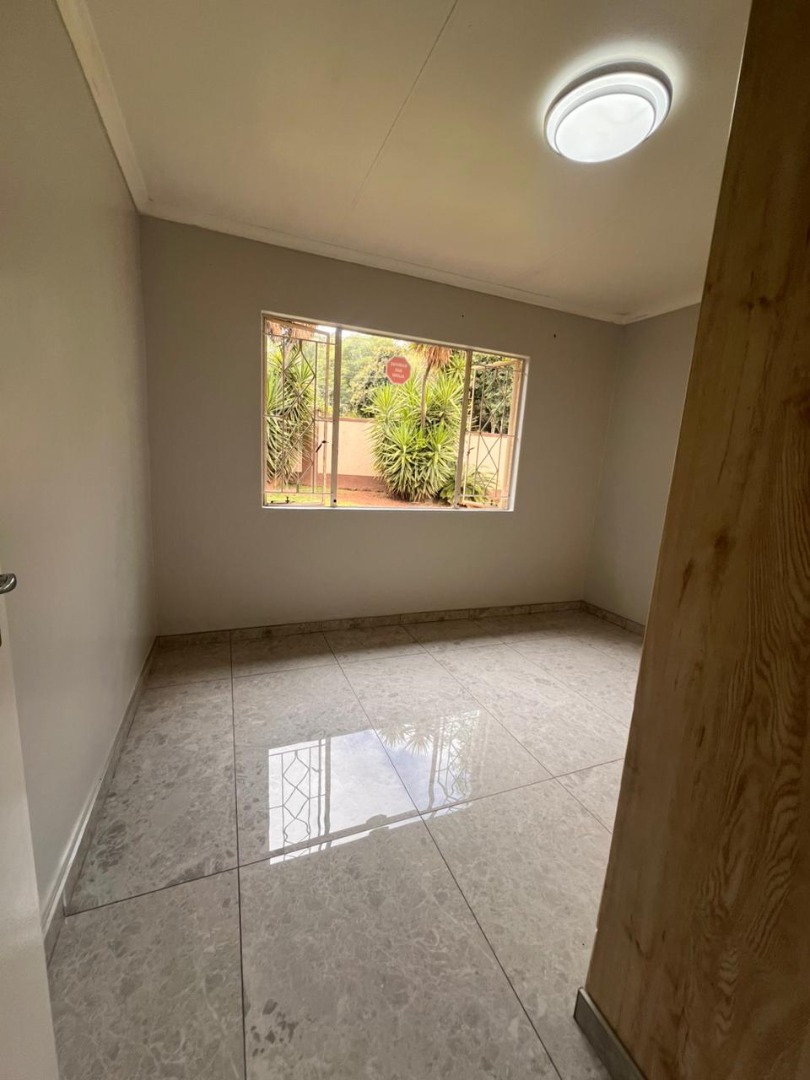 This well-maintained 3-bedroom home is conveniently situated in the same yard as the main house, offering comfortable living with a great balance of privacy and shared amenities. It is situated in Ontdekkerspark, Roodepoort, offers comfortable living for families or professionals. The heart of the home is a spacious kitchen, featuring extensive light wood cabinetry, granite-style countertops, and a practical island/breakfast bar. Equipped with a built-in oven, hob, and extractor fan, this kitchen benefits from ample natural light through a large window and modern recessed ceiling lights, all set on easy-to-maintain tiled flooring. A dedicated lounge provides a comfortable space for relaxation and entertainment.