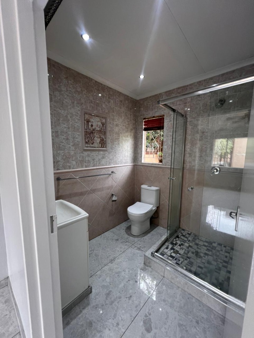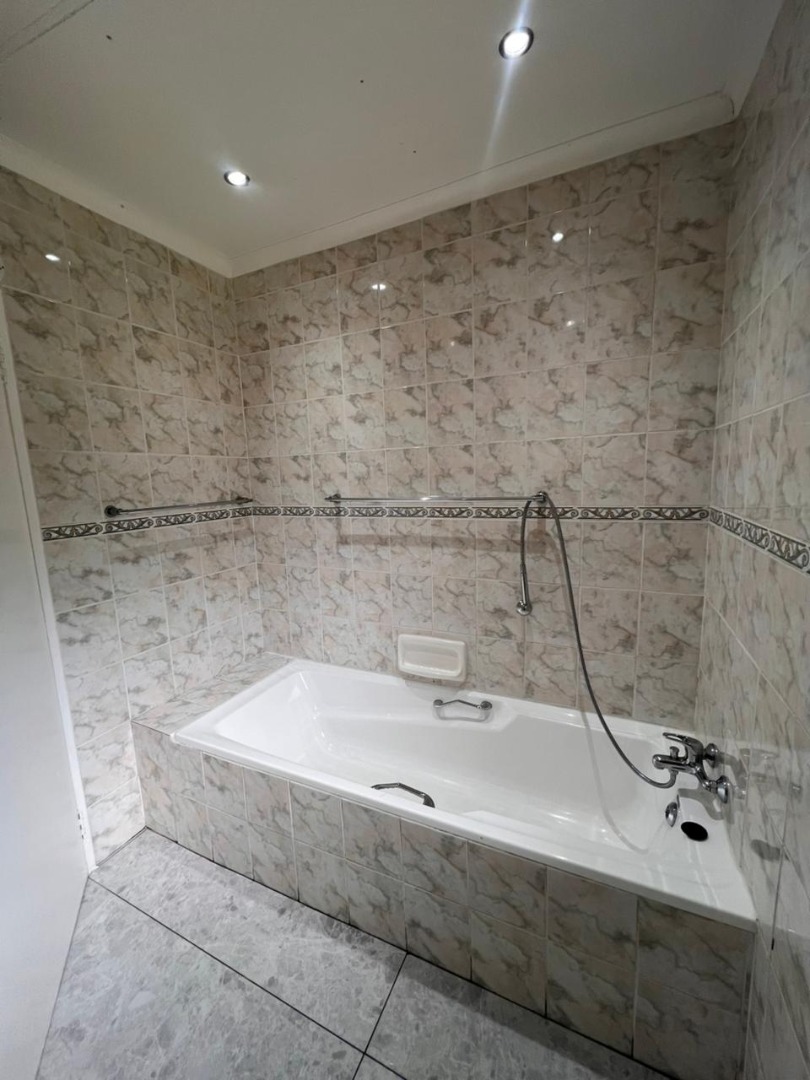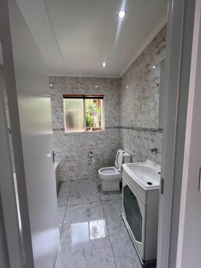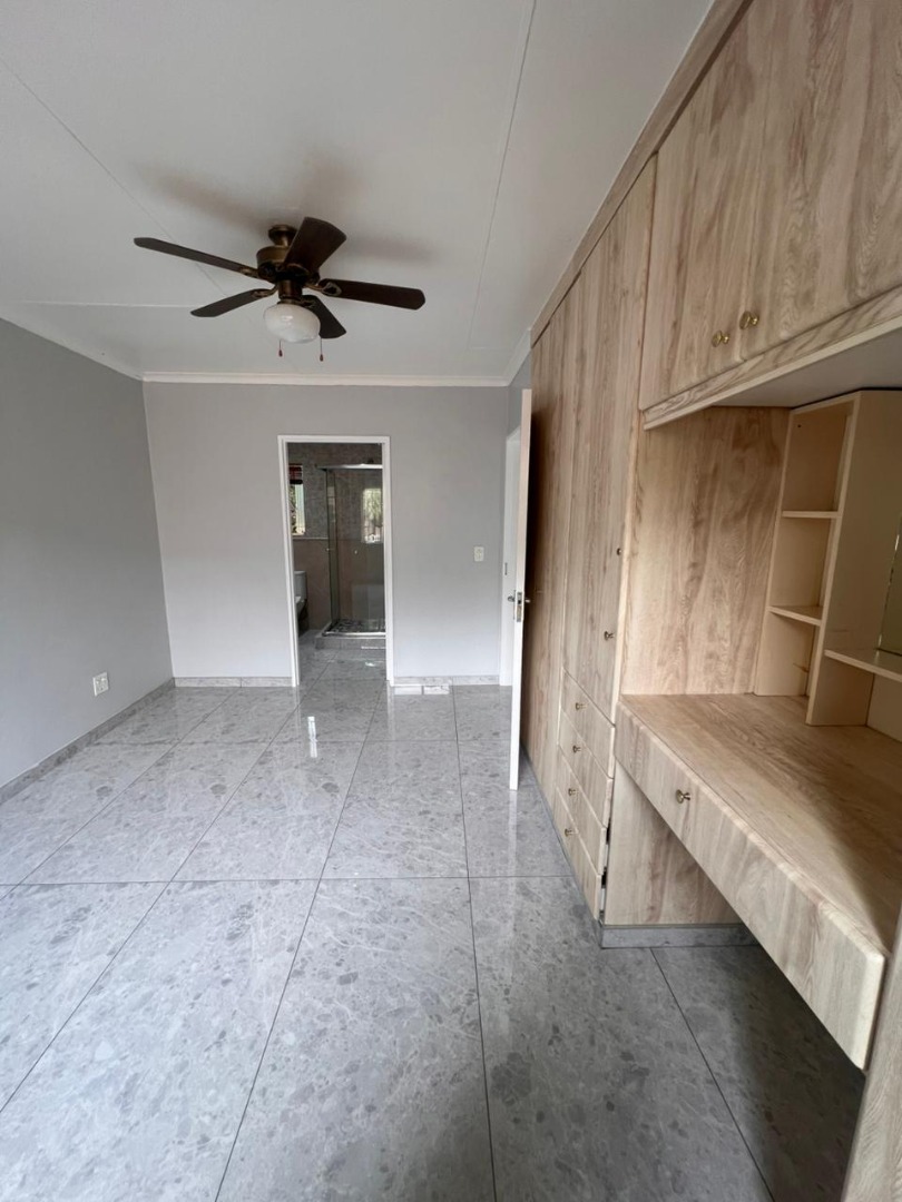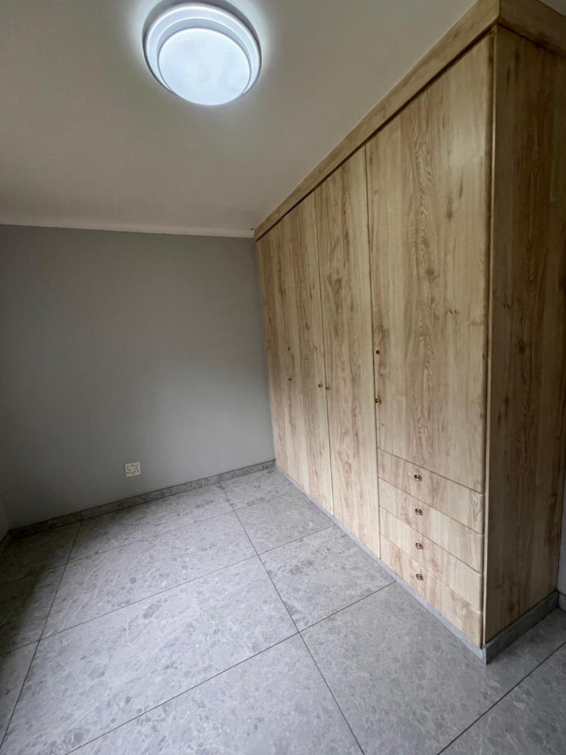 This well-maintained 3-bedroom home is conveniently situated in the same yard as the main house, offering comfortable living with a great balance of privacy and shared amenities. It is situated in Ontdekkerspark, Roodepoort, offers comfortable living for families or professionals. The heart of the home is a spacious kitchen, featuring extensive light wood cabinetry, granite-style countertops, and a practical island/breakfast bar. Equipped with a built-in oven, hob, and extractor fan, this kitchen benefits from ample natural light through a large window and modern recessed ceiling lights, all set on easy-to-maintain tiled flooring. A dedicated lounge provides a comfortable space for relaxation and entertainment.