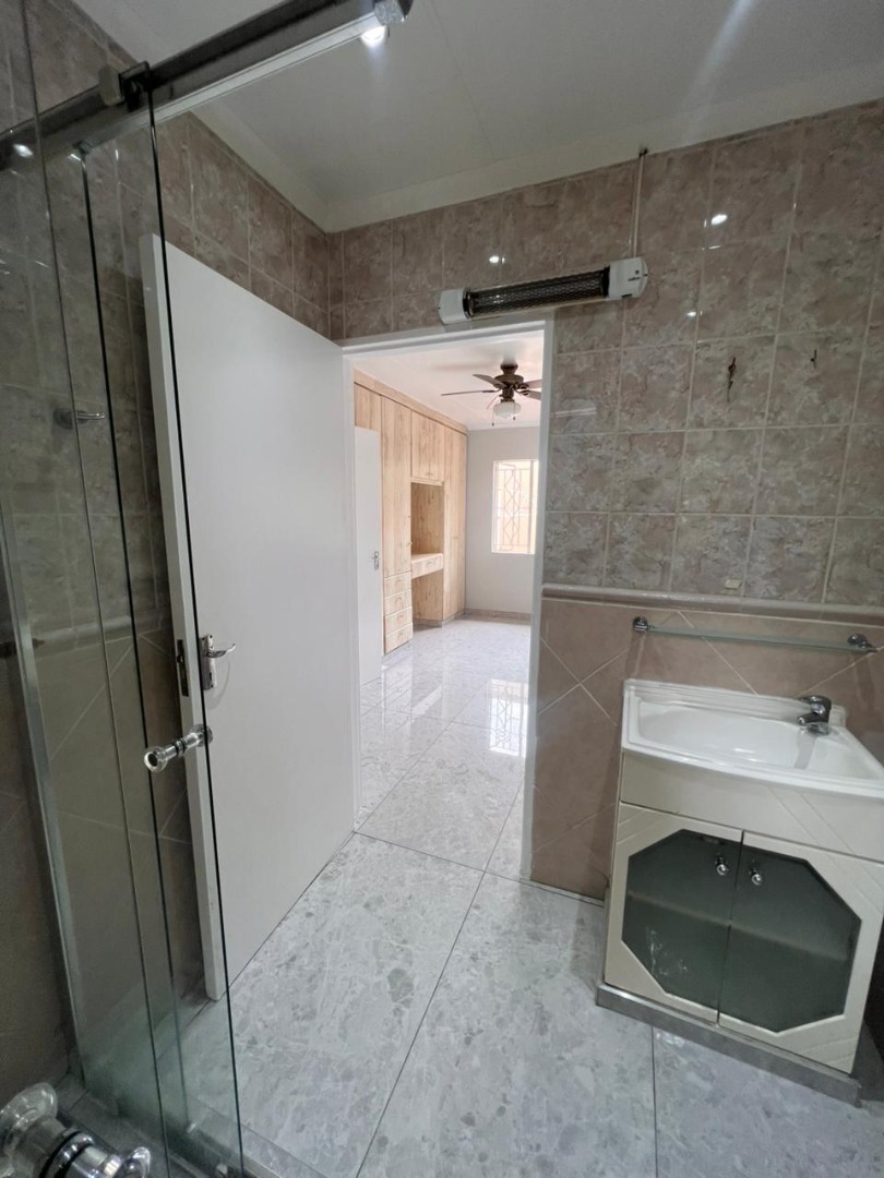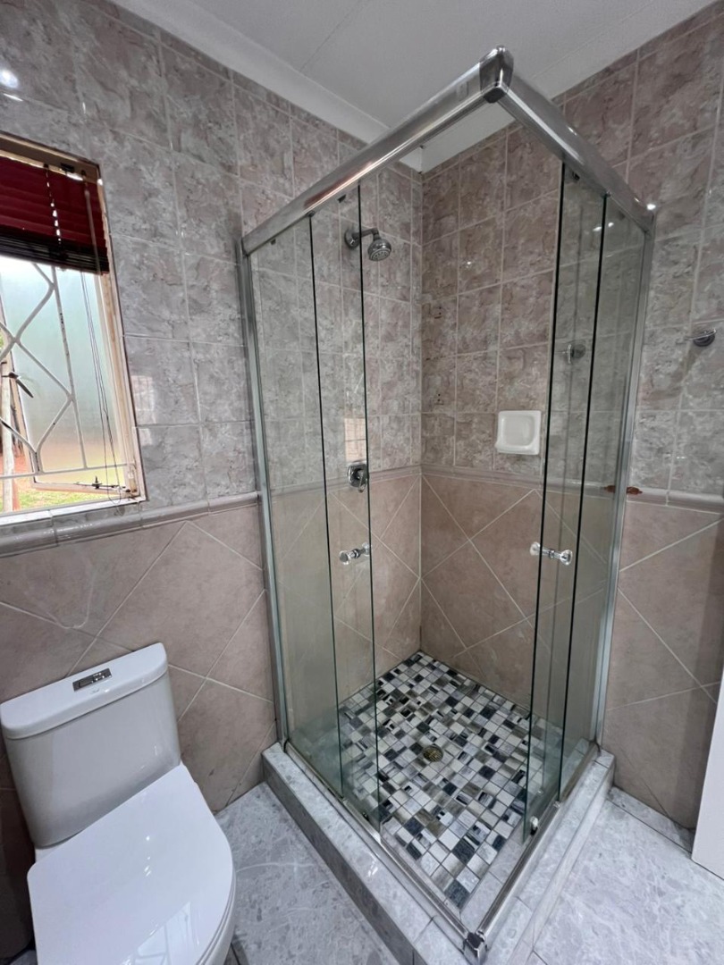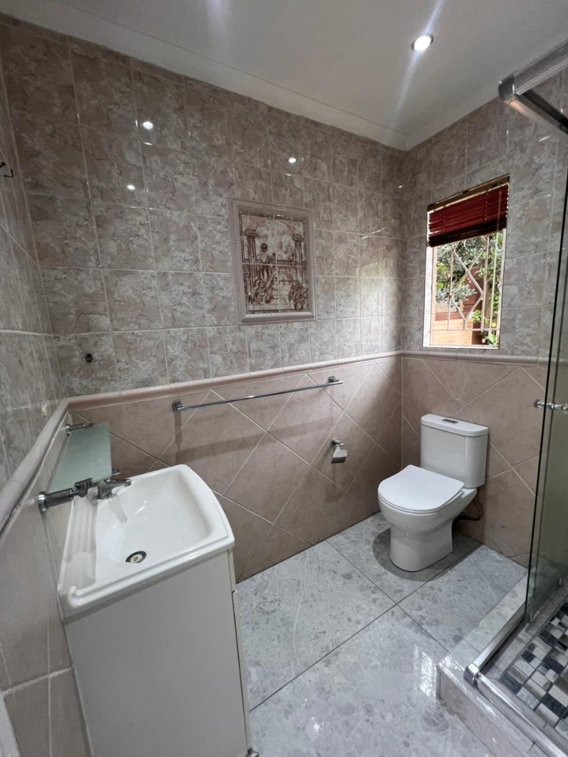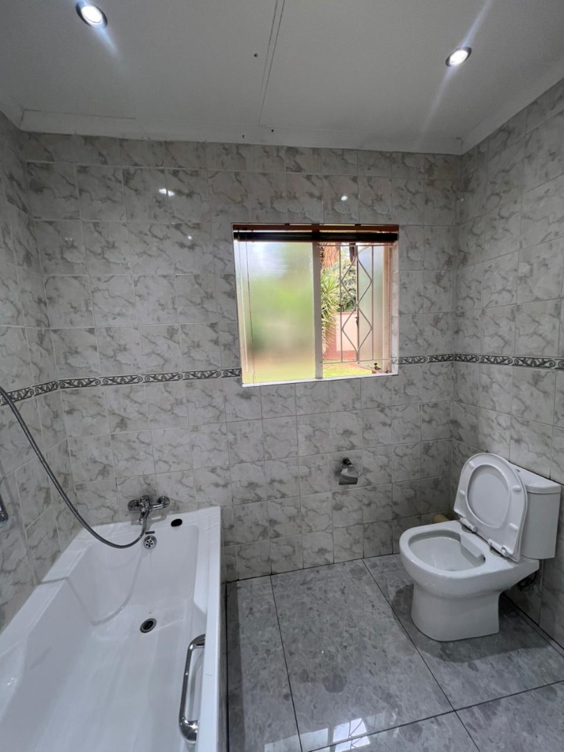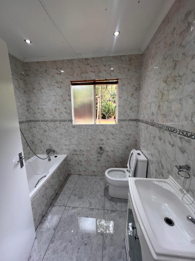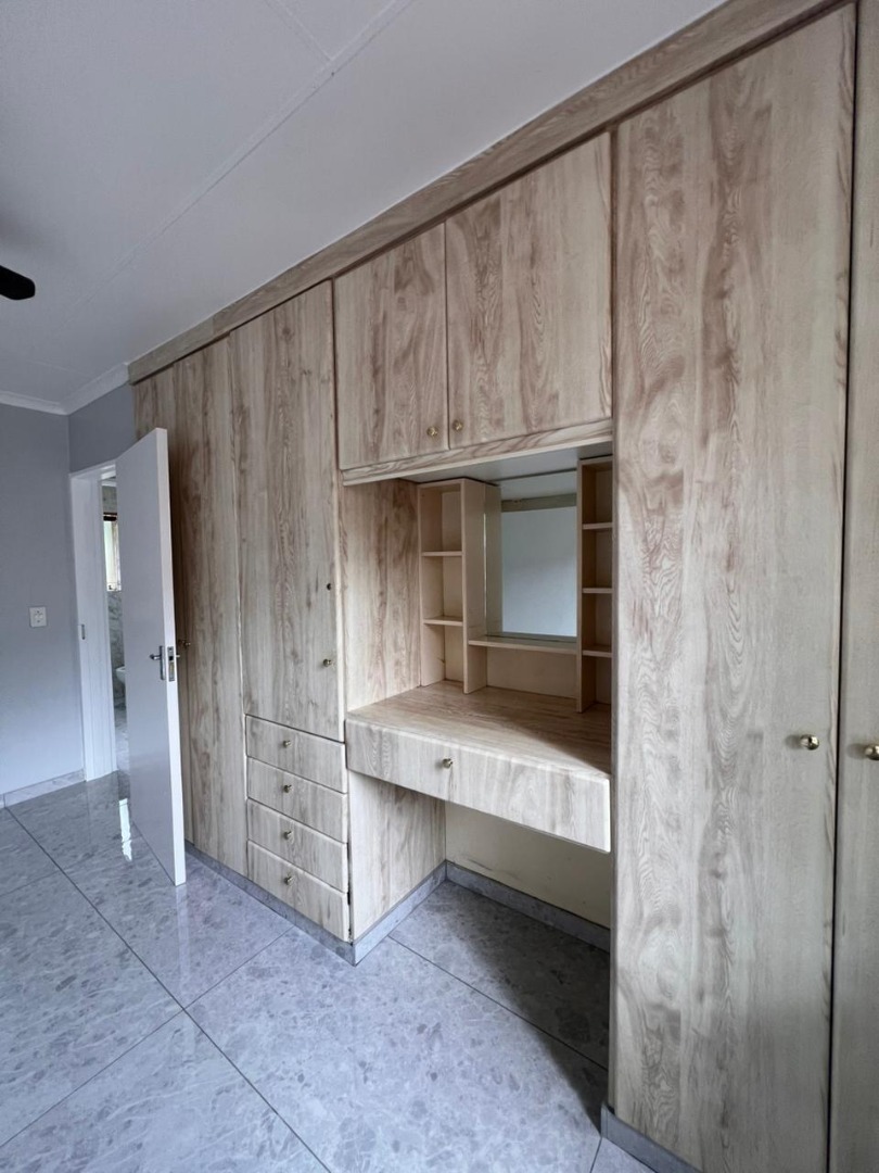 This well-maintained 3-bedroom home is conveniently situated in the same yard as the main house, offering comfortable living with a great balance of privacy and shared amenities. It is situated in Ontdekkerspark, Roodepoort, offers comfortable living for families or professionals. The heart of the home is a spacious kitchen, featuring extensive light wood cabinetry, granite-style countertops, and a practical island/breakfast bar. Equipped with a built-in oven, hob, and extractor fan, this kitchen benefits from ample natural light through a large window and modern recessed ceiling lights, all set on easy-to-maintain tiled flooring. A dedicated lounge provides a comfortable space for relaxation and entertainment.