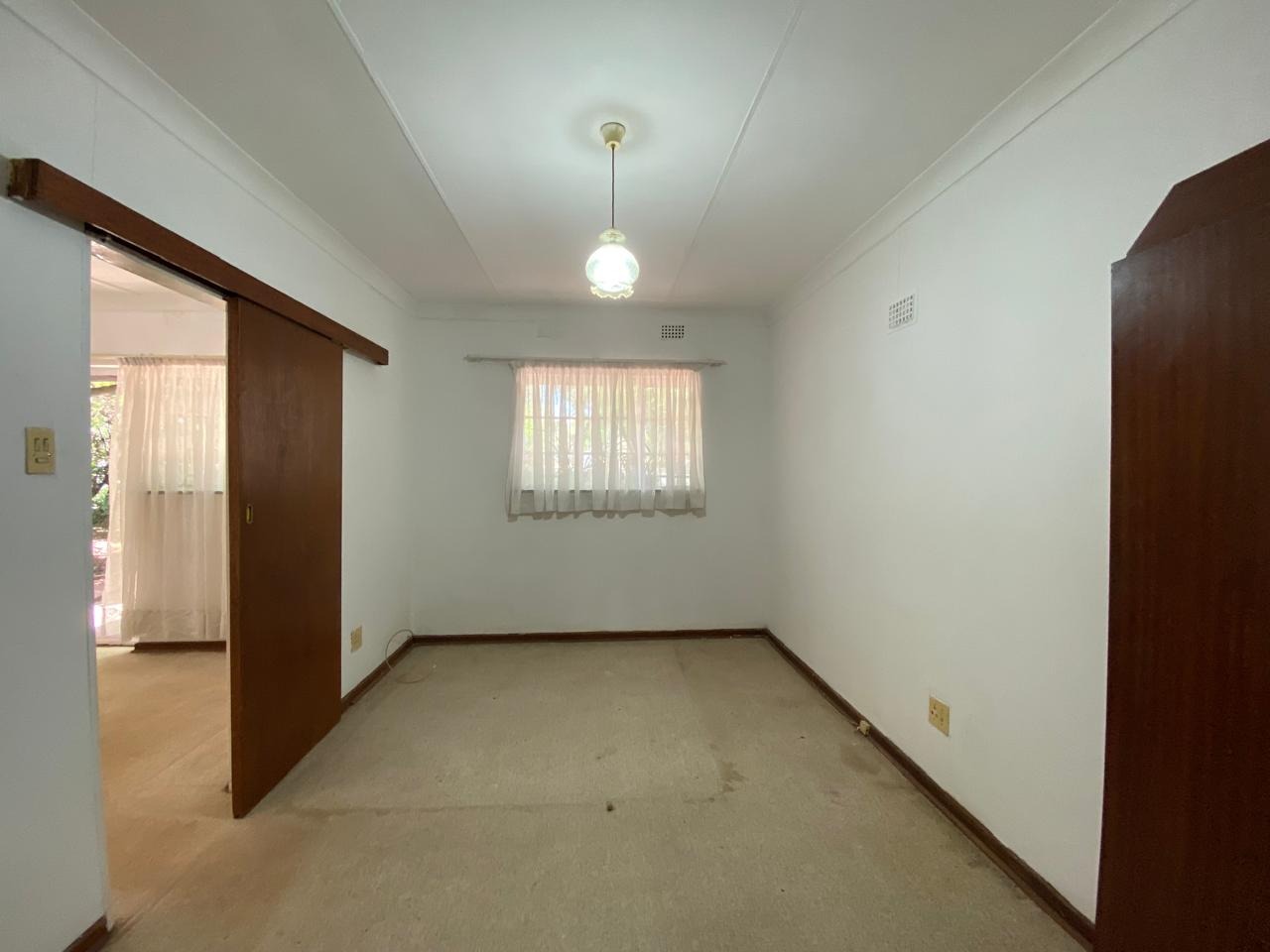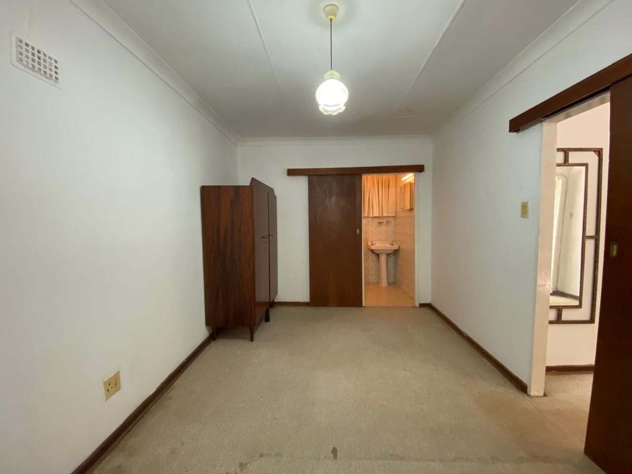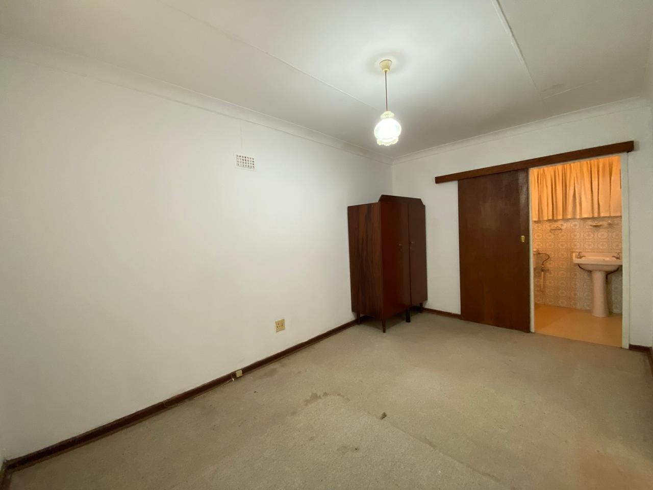- A well-sized bedroom with neutral white walls — the perfect blank canvas to personalise