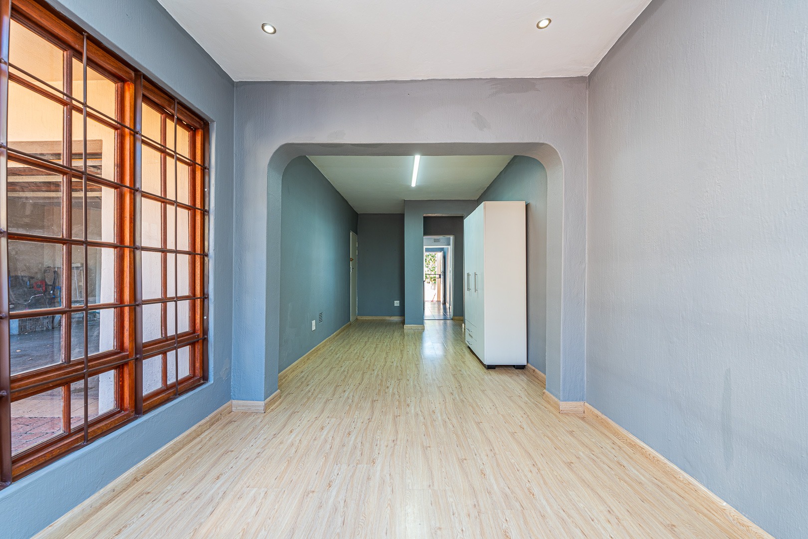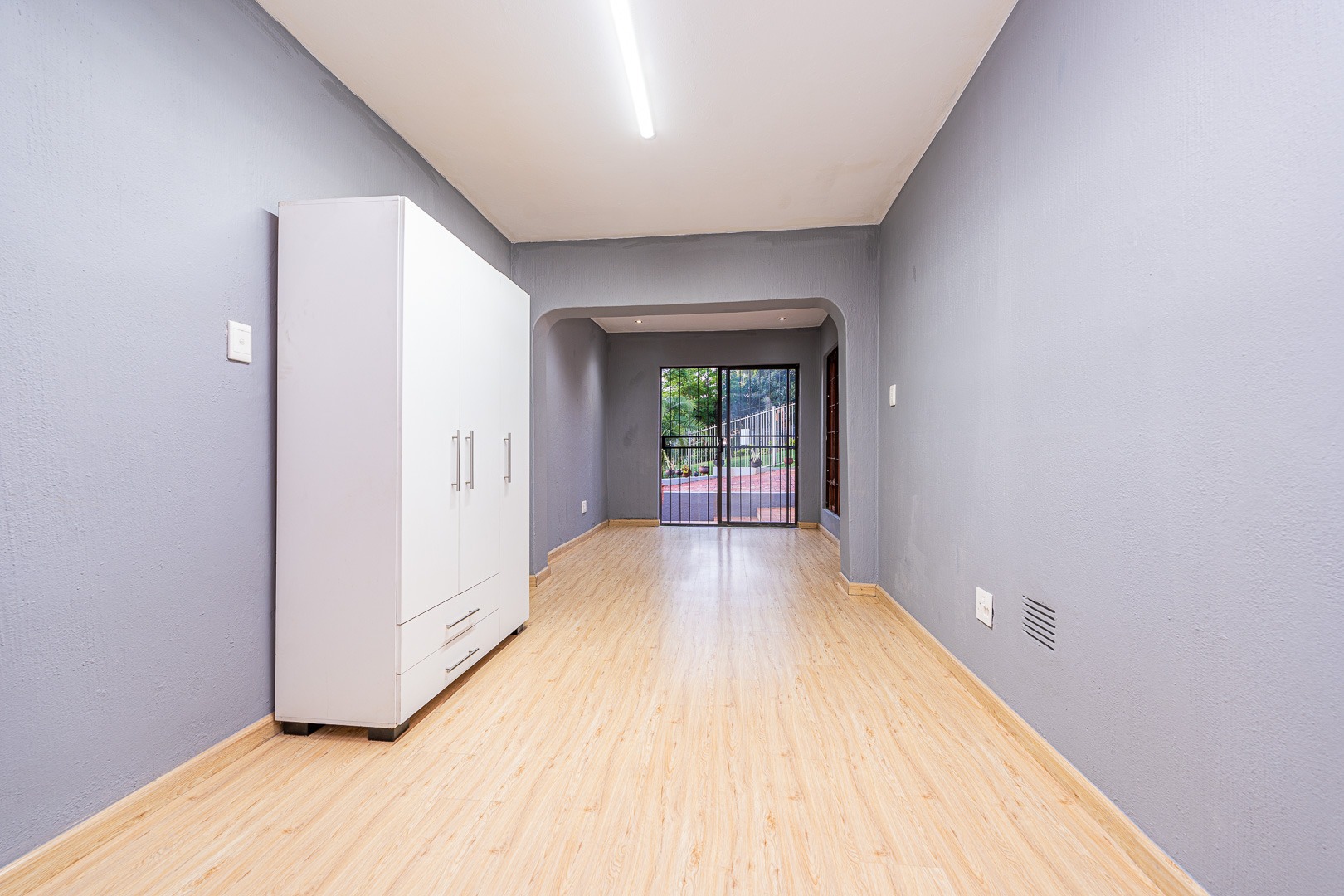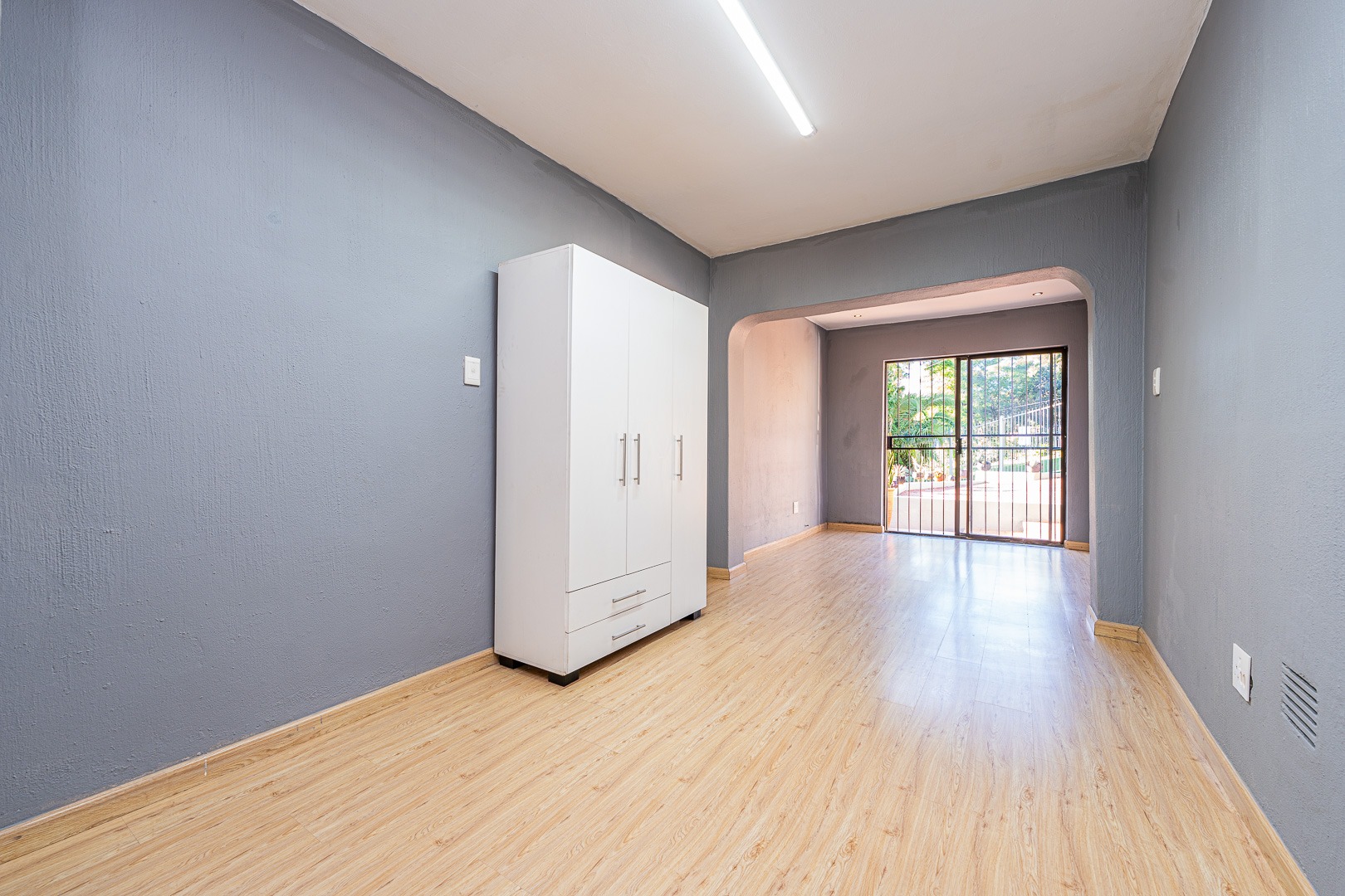This inviting open plan garden cottage offers a comfortable and modern living space ideal for a single professional. Access is secure and convenient through an automated perimeter gate, with an open parking bay located right at the entrance of the unit. Once parked, you walk directly into the cottage, creating an easy lock up and go lifestyle.