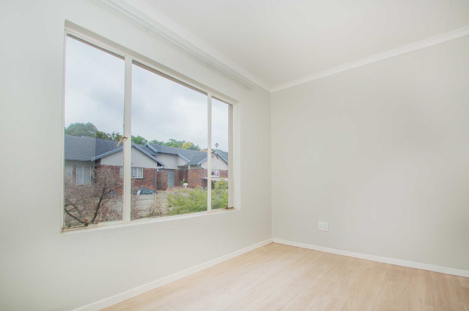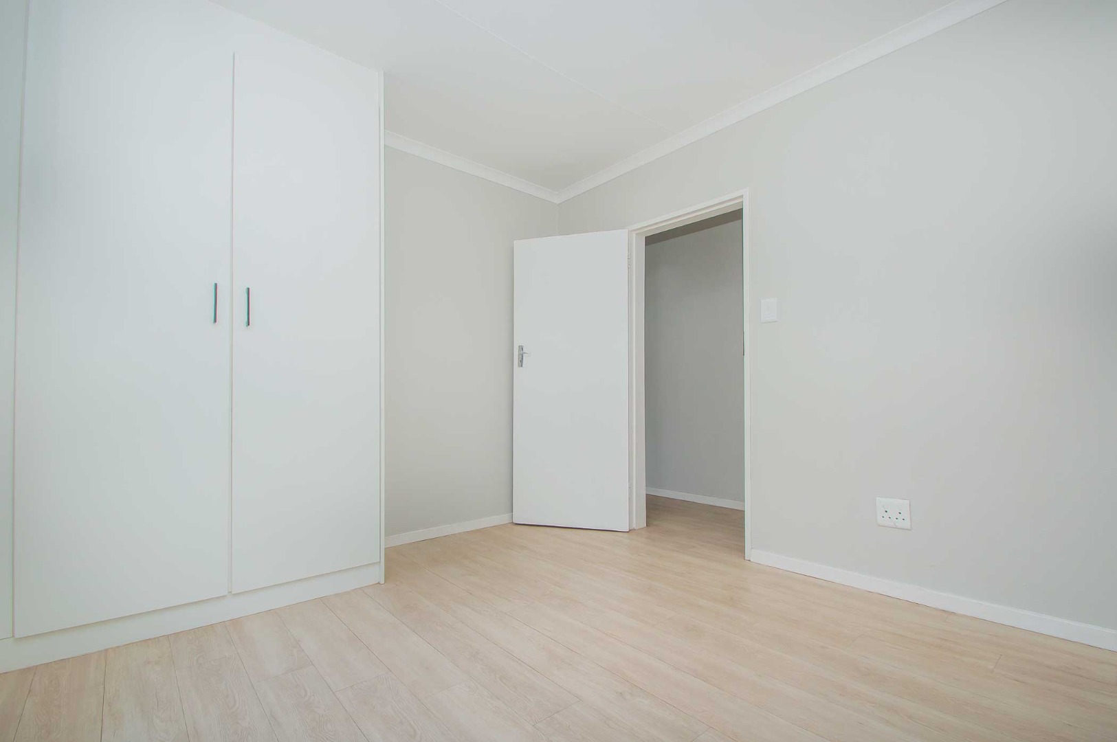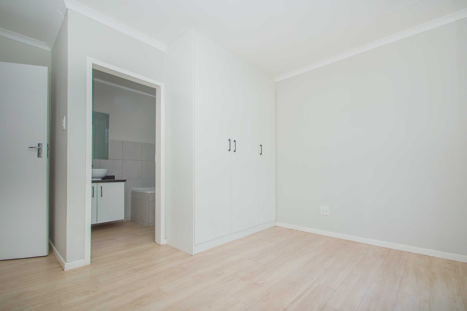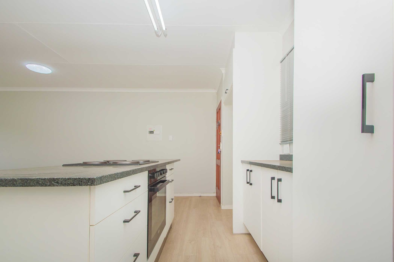 This contemporary residential rental property, situated within a well-maintained complex in Roodekrans, Roodepoort, offers a sophisticated living experience across its 85.00 sqm floor plan. The residence features three well-proportioned bedrooms and two modern bathrooms, including a private en-suite. An open-plan lounge seamlessly integrates with the state-of-the-art kitchen, appointed with sleek white cabinetry, dark granite-style countertops, a functional island with an integrated hob, and a double stainless steel sink. New light-toned laminate flooring and neutral walls create a bright, inviting atmosphere, complemented by ample natural light. Designed for discerning individuals or small families, this unfurnished unit provides a versatile canvas for personal customisation. The property benefits from a private balcony, offering a tranquil space for relaxation and enjoying scenic views. Its lock-up-and-go design ensures a low-maintenance lifestyle, ideal for busy professionals seeking comfort and modernity. Security is paramount within this complex, featuring a fenced perimeter with an access gate and burglar bars, providing residents with peace of mind. Individual ground-level garages and an additional parking space cater to vehicular needs, ensuring secure accommodation. The modern architectural style of the complex further contributes to its appeal. Roodekrans, a desirable suburban area in Roodepoort, South Africa, offers convenient access to local amenities and transport routes, making it an ideal location for residential tenancy. Key Features: * Three Bedrooms, Two Bathrooms (One En-suite) * Modern Open-Plan Kitchen with Island and Hob * Spacious Lounge Area * Private Balcony with Scenic Views * Secure Garage and Dedicated Parking Bay * Contemporary Interior Finishes * Fenced Complex with Access Control * Burglar Bars for Enhanced Security