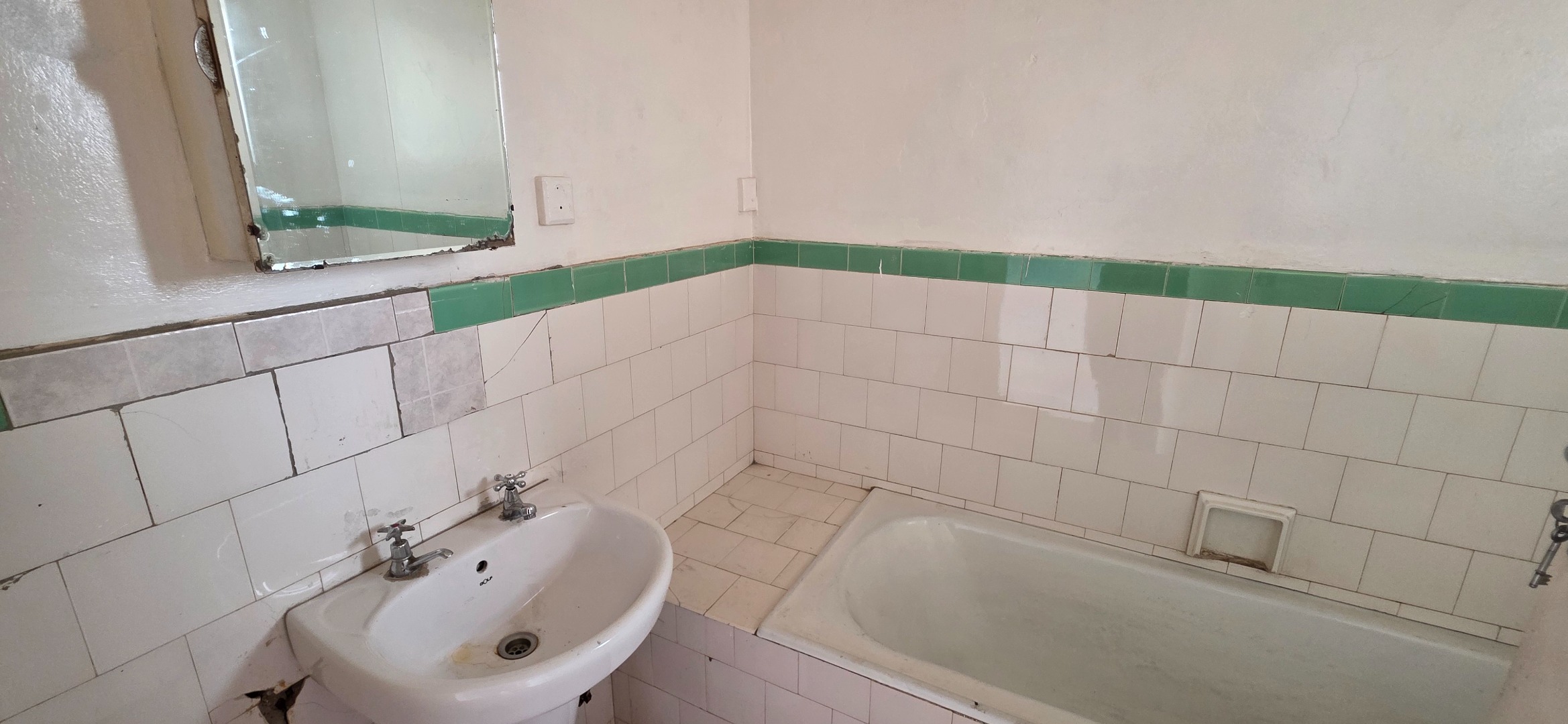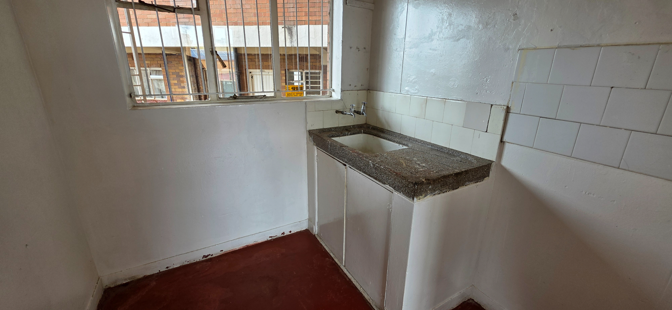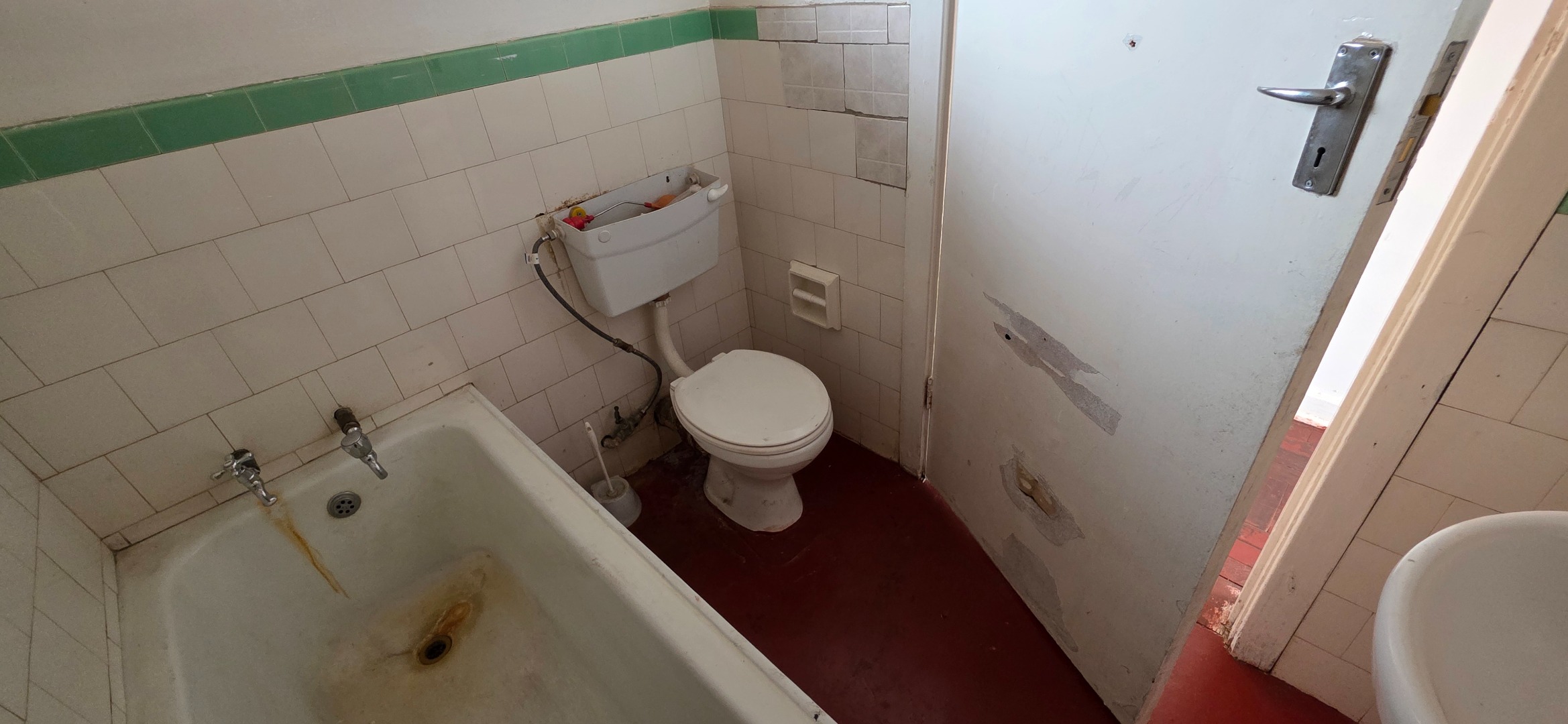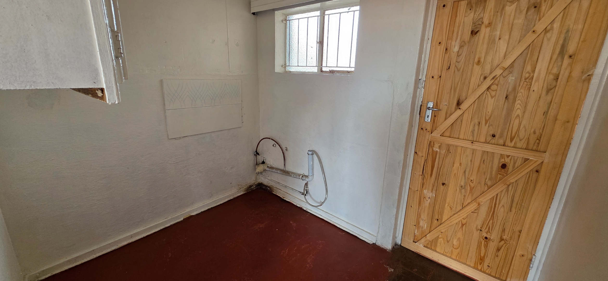 Both lounge areas open out to balcony spaces, providing elevated views over the surrounding neighbourhood and a pleasant indoor-outdoor flow. The kitchen is functional and well-positioned, offering cupboard space and natural ventilation. The bedroom is smaller than the typical double-flat layout, as the space has been cleverly adapted to include a separate laundry room, fitted to accommodate a washing machine. This practical addition allows for dedicated laundry functionality without impacting the main living areas. The bedroom does not include built-in cupboards, giving tenants flexibility in how they furnish the space. A bathroom completes the unit, fitted with a bath, basin, and toilet.