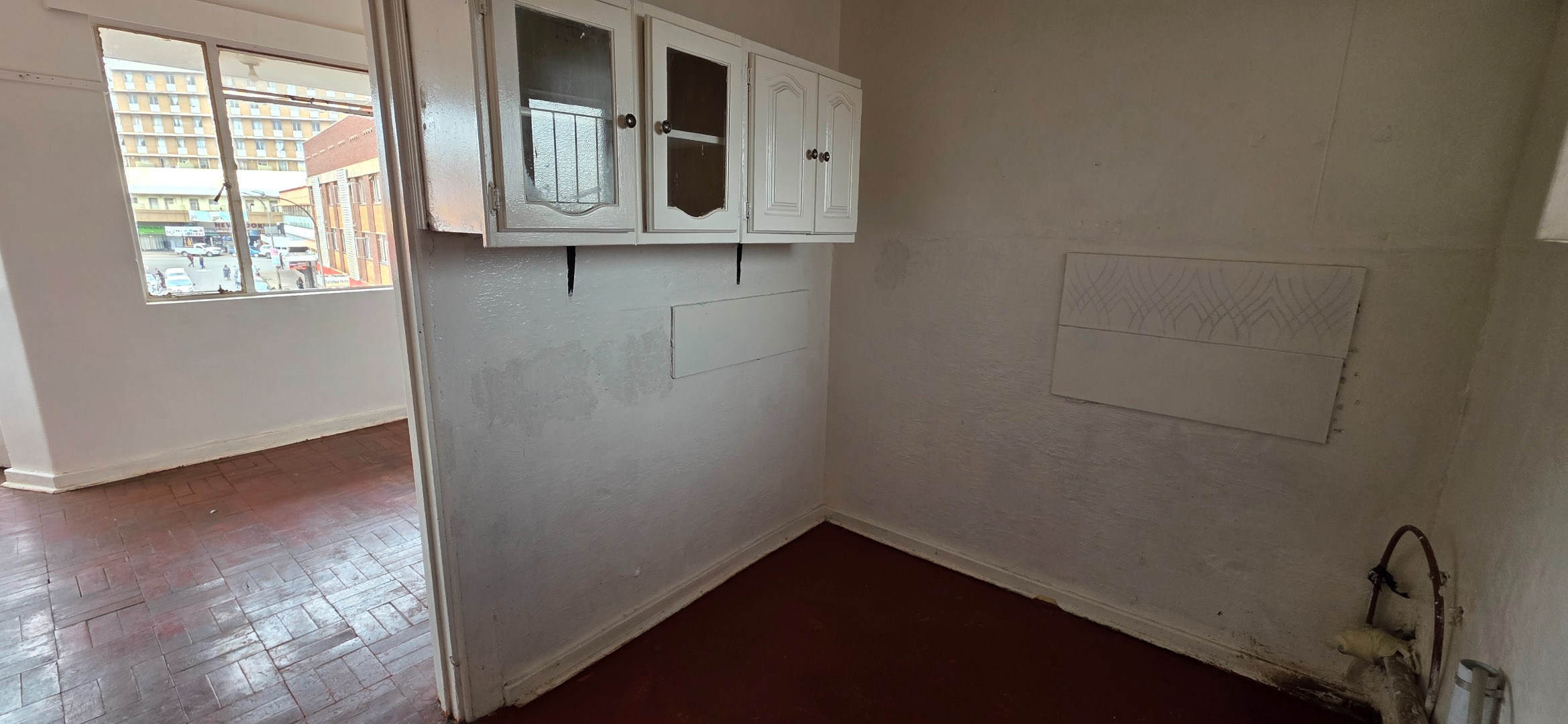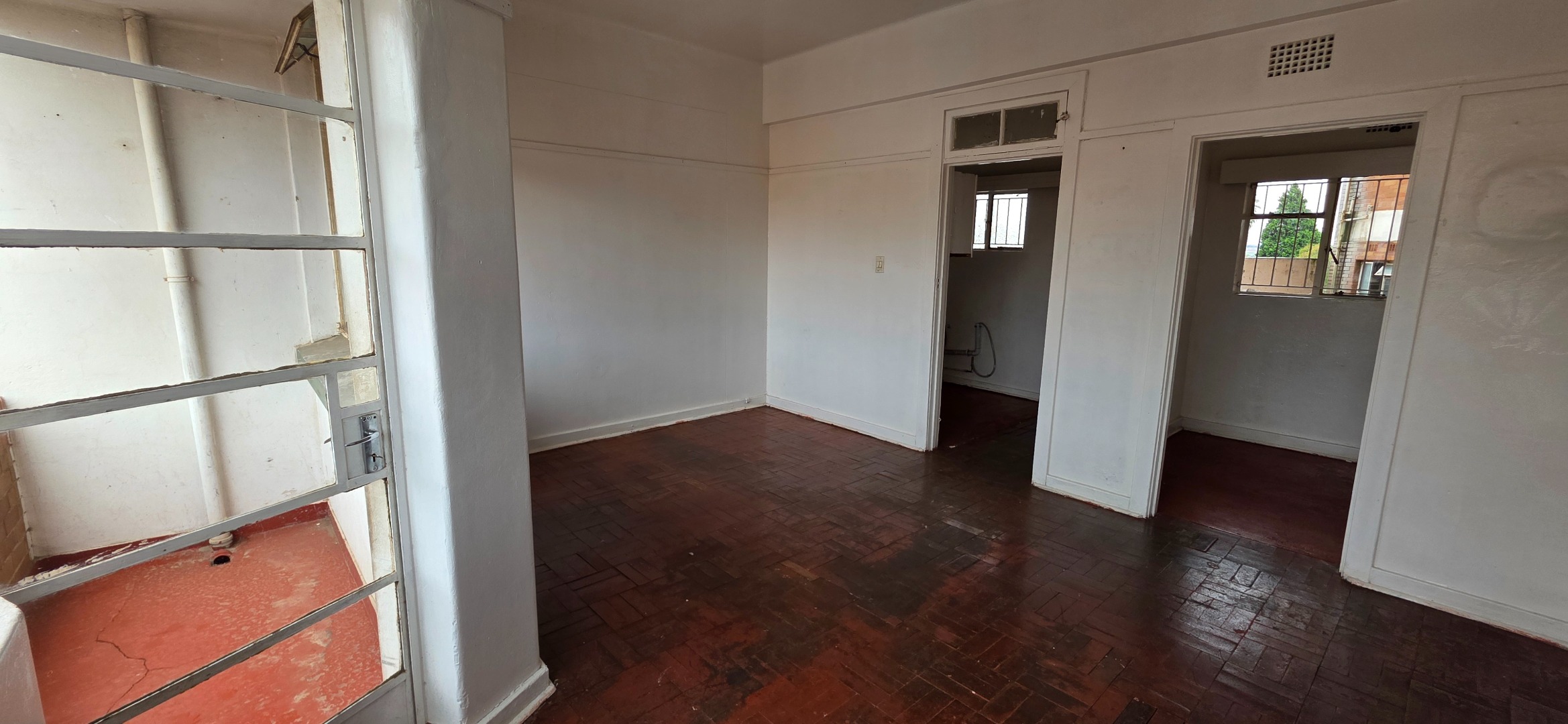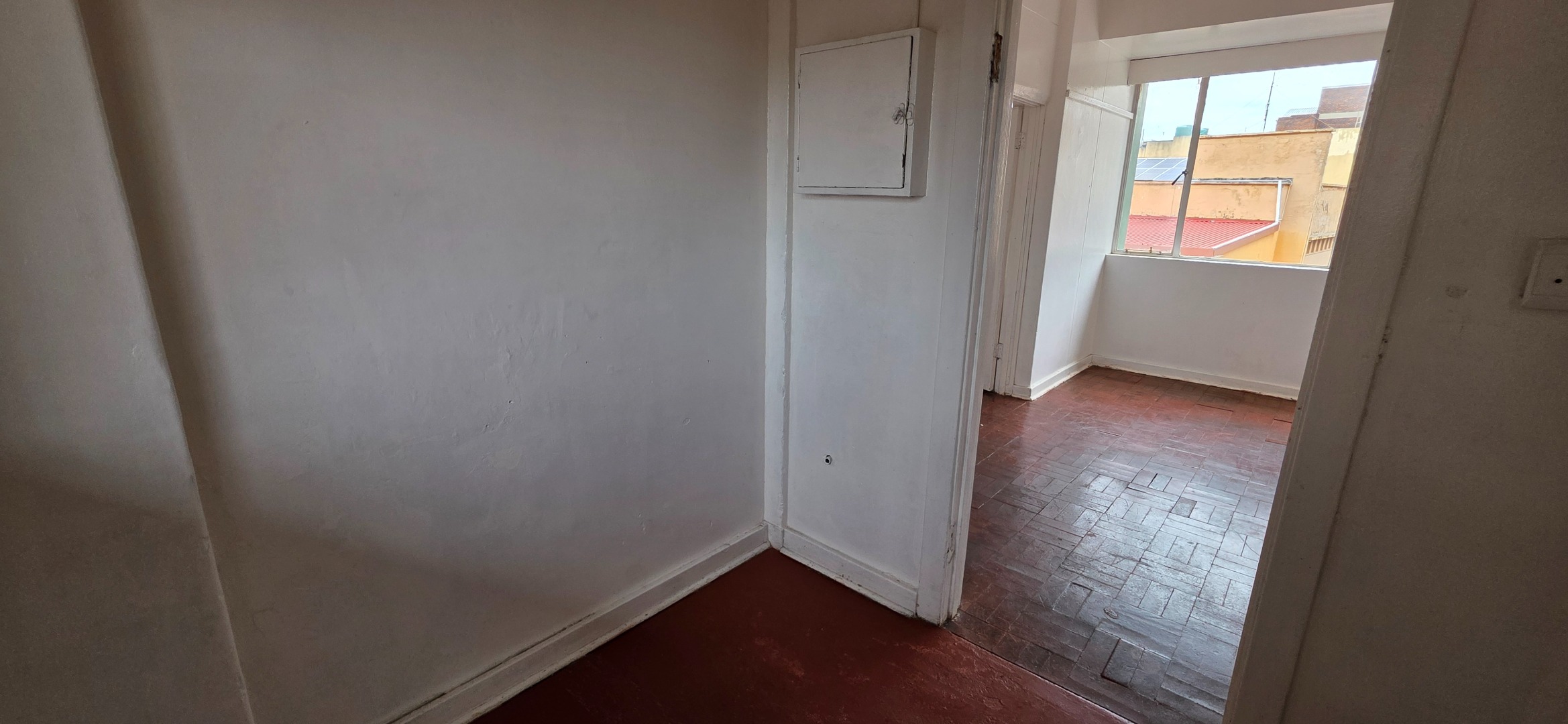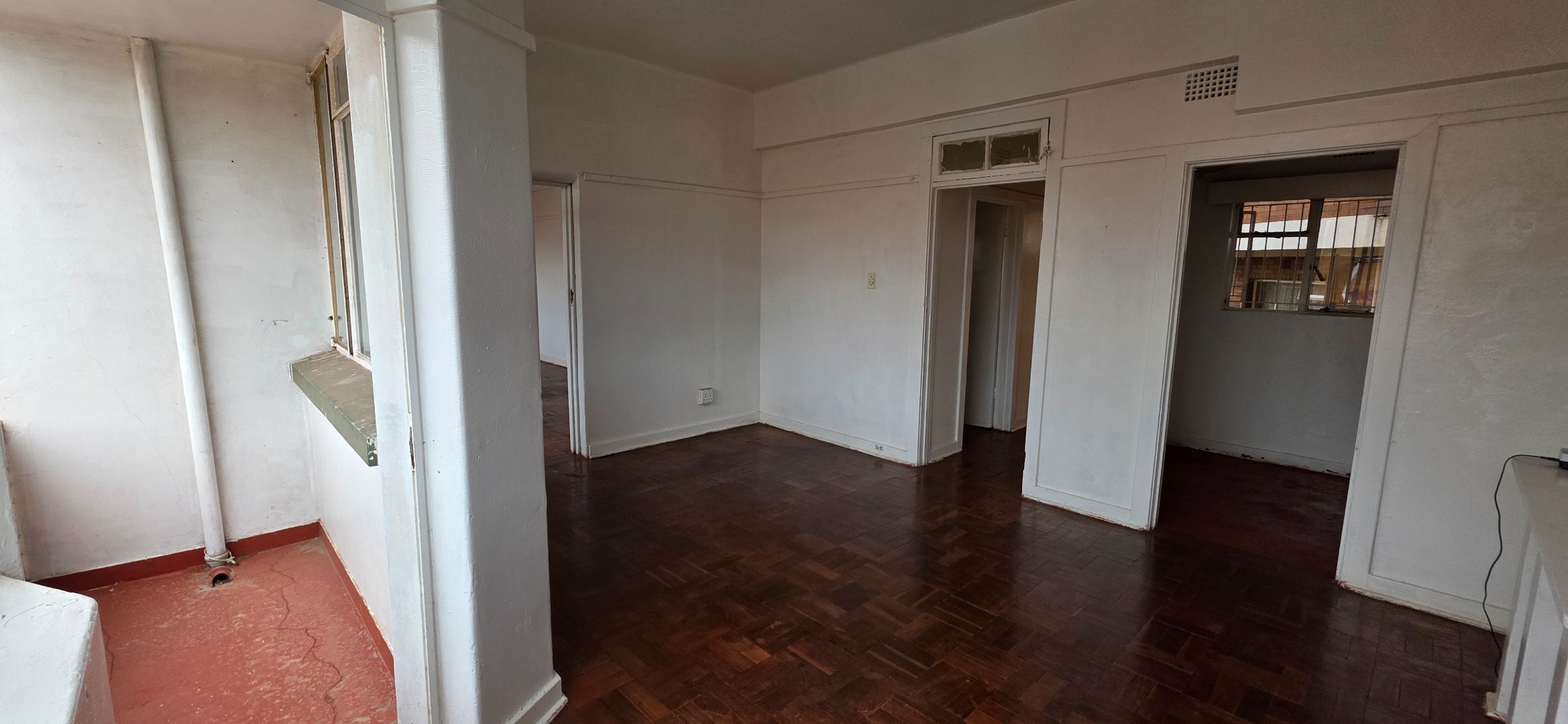 This well-laid-out one-bedroom double flat in the Elares Building offers excellent value for tenants seeking space, functionality, and affordability in a central location. The unit features two separate lounge areas, creating flexible living zones that can be used as a lounge and dining area, work-from-home space, or additional seating area. Large windows throughout allow plenty of natural light, while the parquet flooring adds warmth and durability to the living spaces.