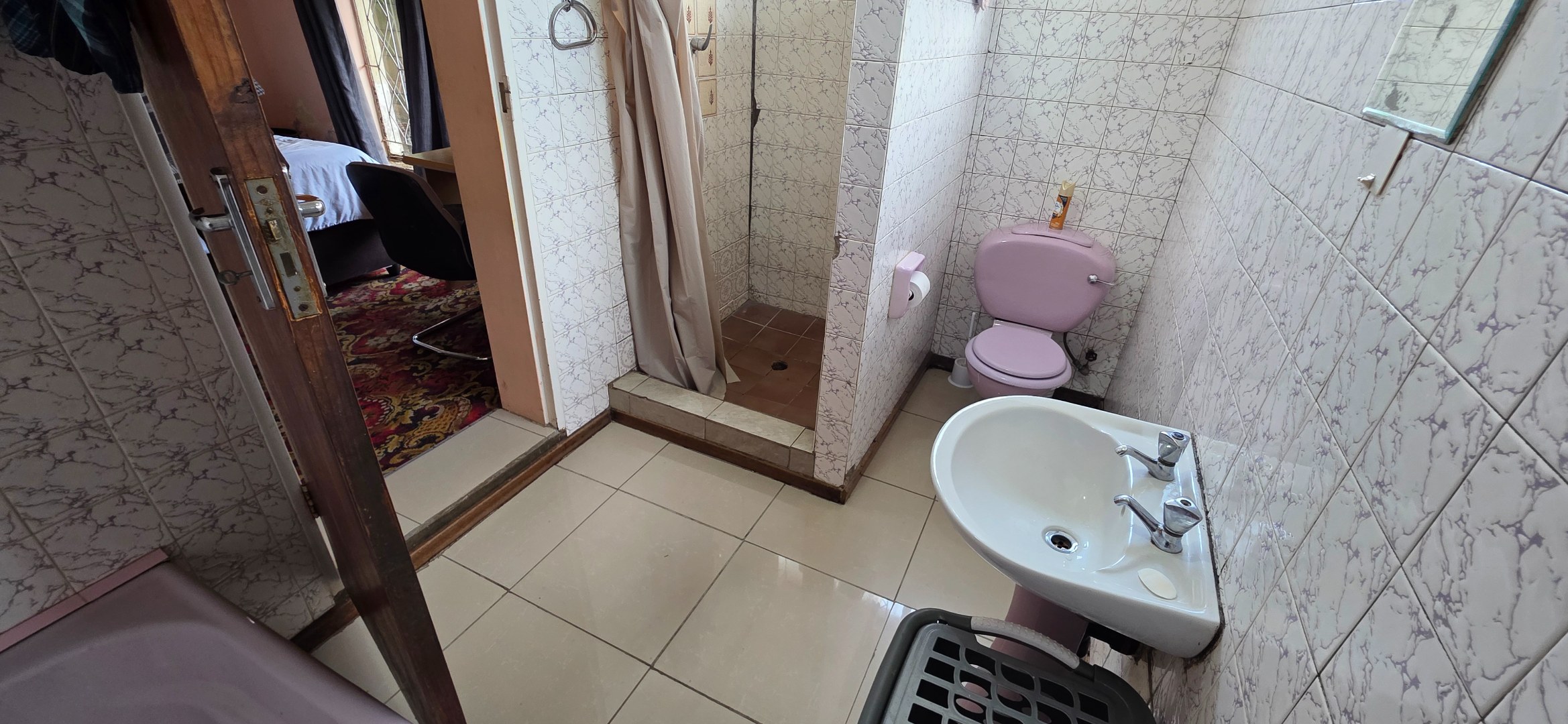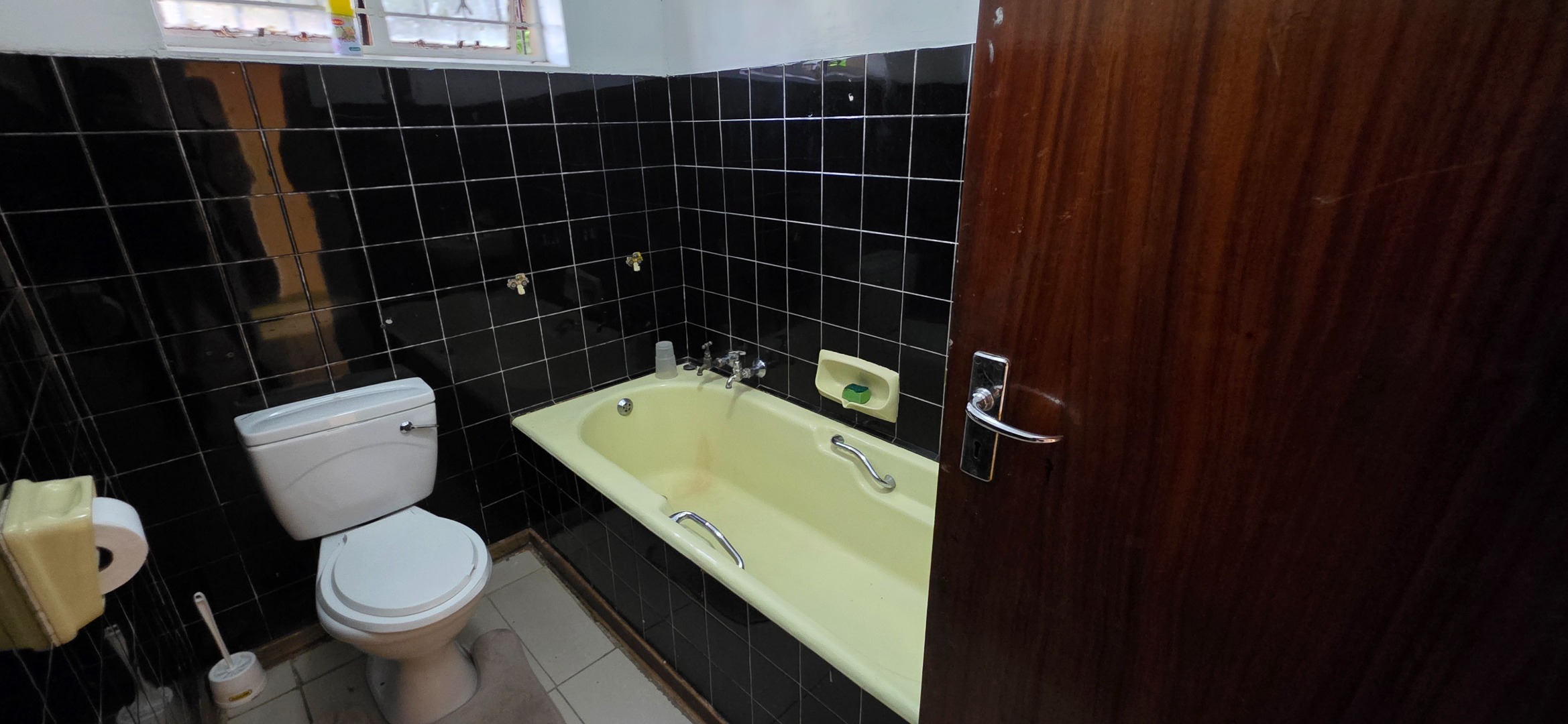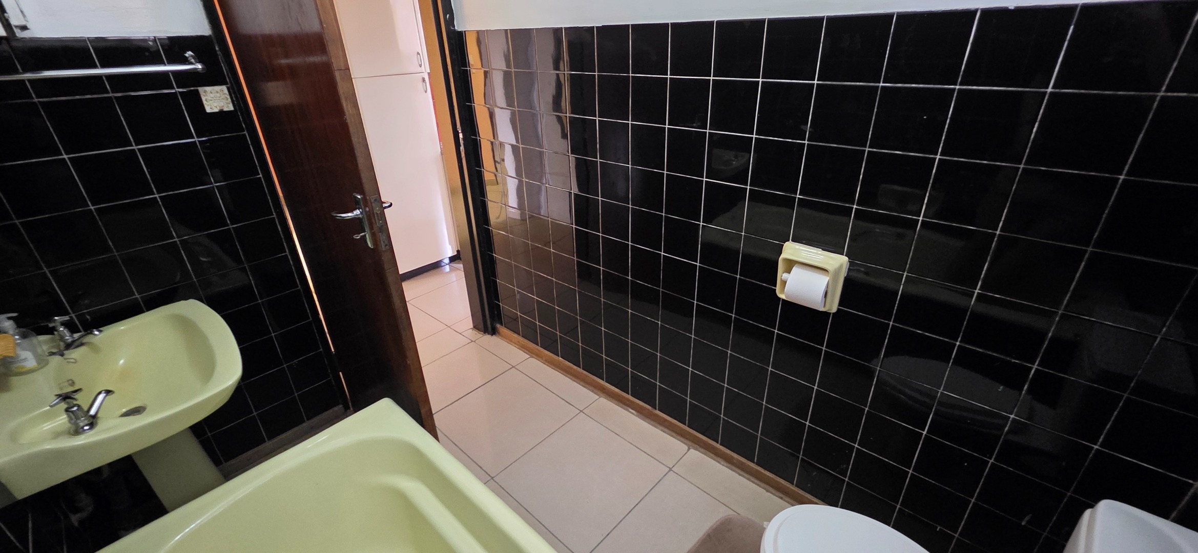 The home offers two-and-a-half bathrooms in total. The first bathroom, located near the kitchen, is fully tiled in darker finishes and fitted with a bath, basin, and toilet. The smallest of the three bedrooms makes up for its size by offering a full ensuite bathroom, fitted with a bath, shower, basin, and toilet. This ensuite bathroom previously experienced a roof leak, and the landlord has undertaken to repair the roof, restore the ceiling, and complete the necessary repainting prior to occupation. In addition, there is a separate guest bathroom located near the lounge and living areas, fitted with a toilet, urinal, and basin, offering added convenience for guests and entertaining.