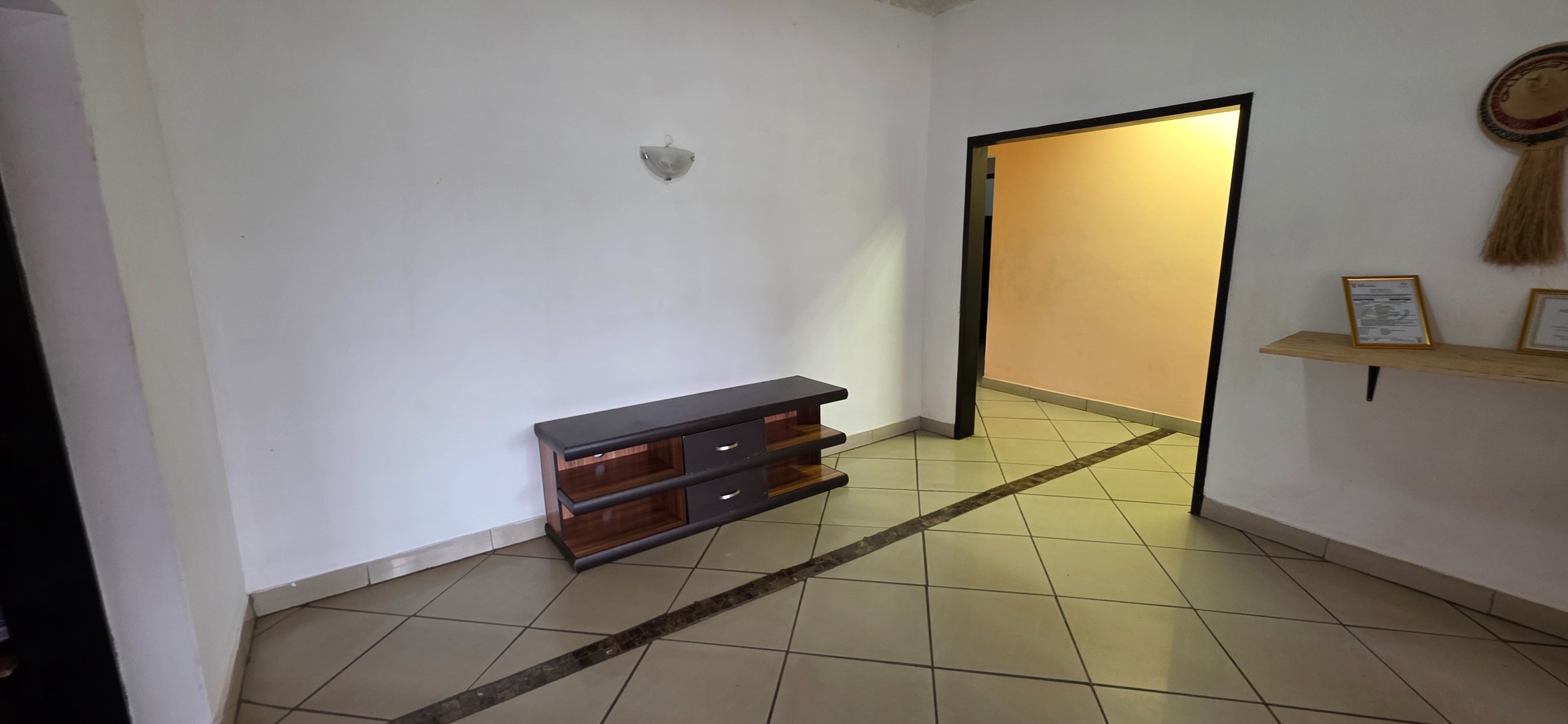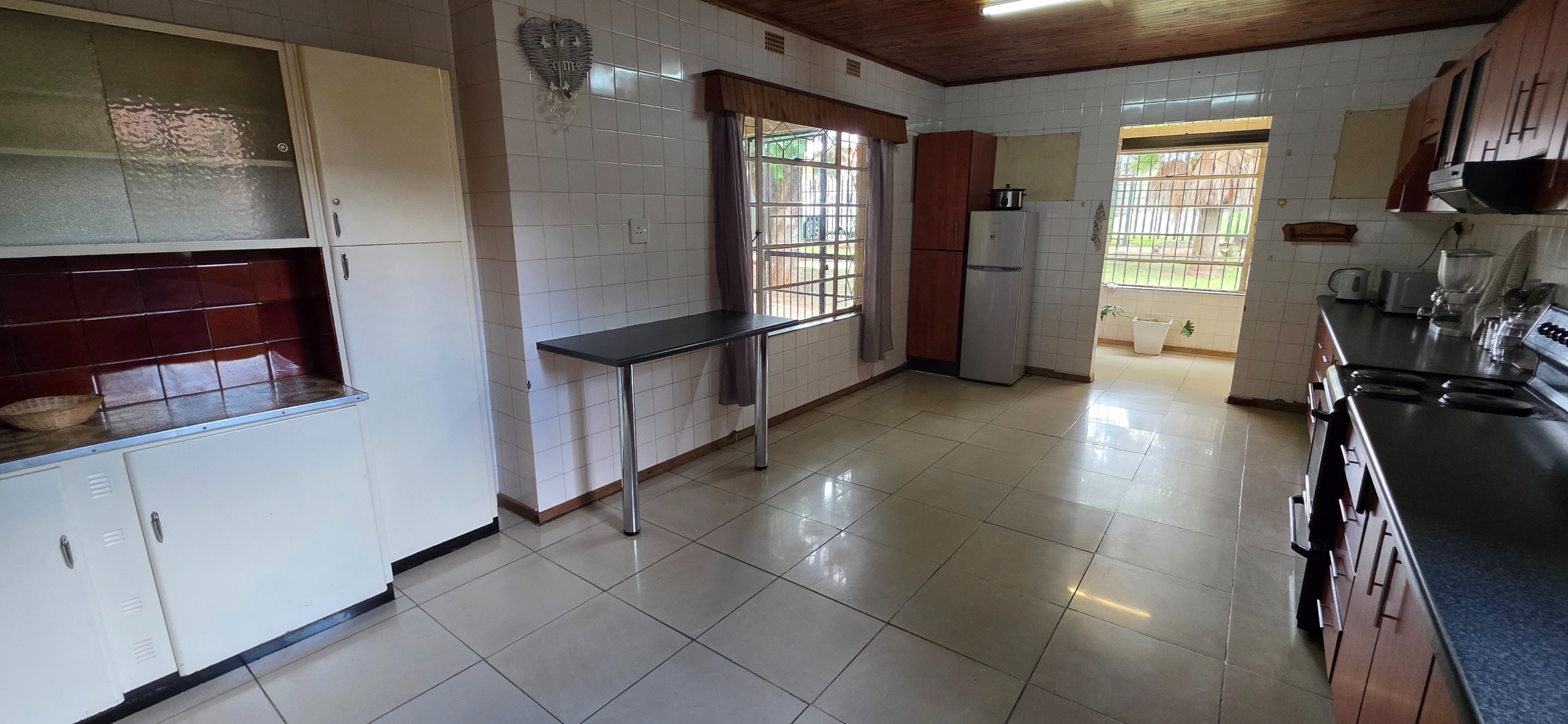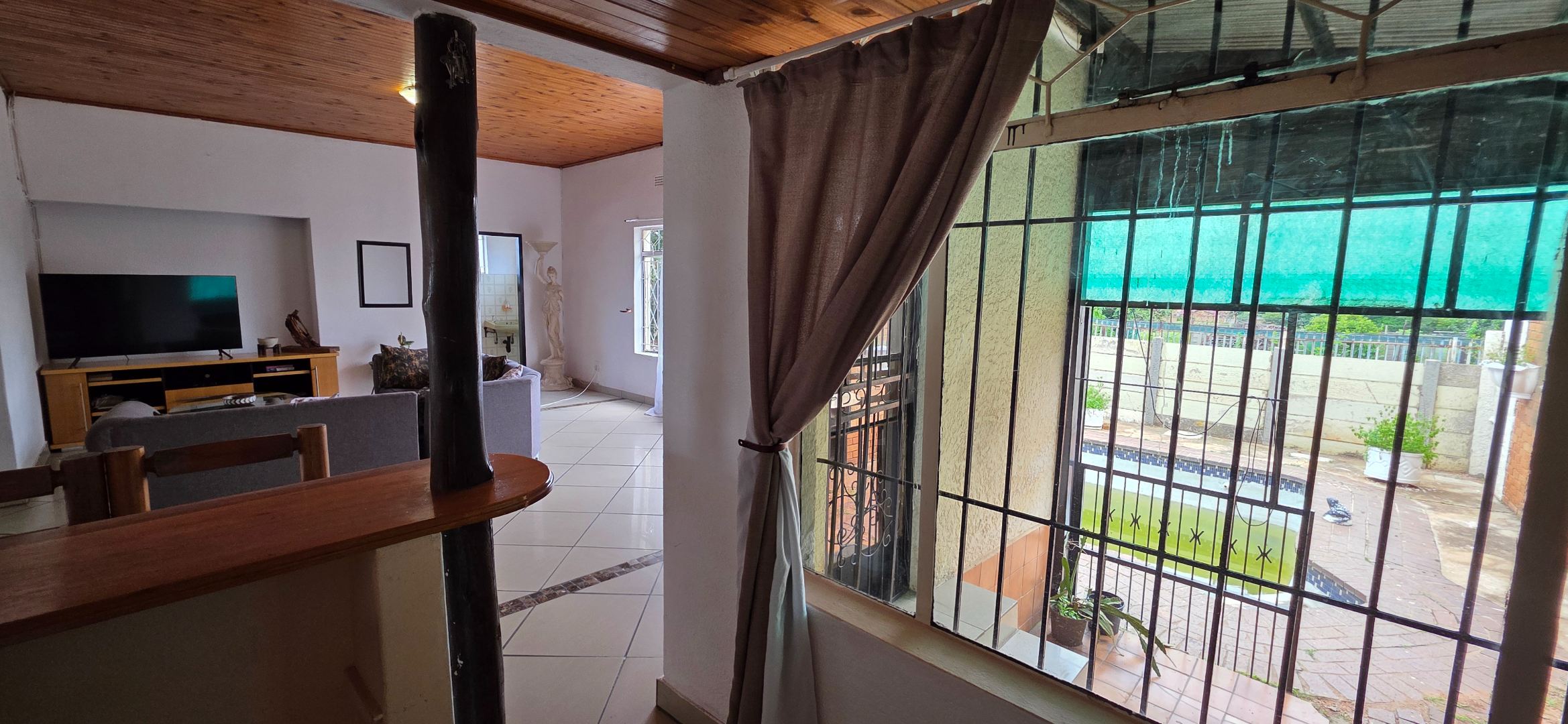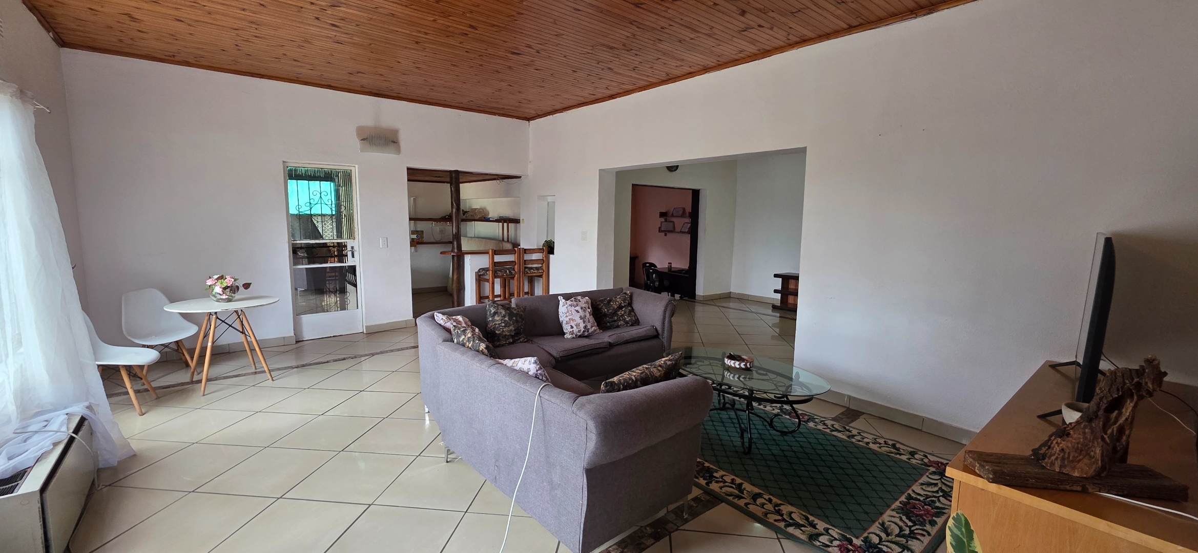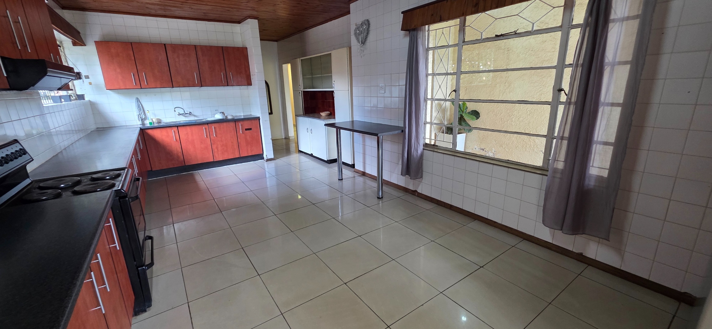 The living and entertainment areas are spacious and well laid out, featuring a large open-plan lounge, dining area, and bar space that flow comfortably together and overlook the swimming pool area. These spaces are ideal for relaxed family living and entertaining. The swimming pool is currently not in use and requires attention due to a leak and increased power consumption. Should a tenant wish to make use of the pool, reinstatement can be discussed with the landlord by mutual agreement, either at the tenant’s cost or with a possible rental credit or alternative arrangement.