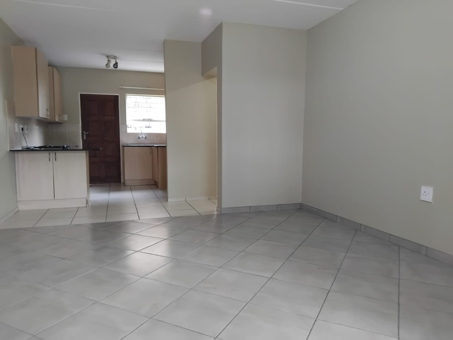 This inviting 2-bedroom, 2-bathroom rental property offers comfortable living within a well-maintained complex in Wilgeheuwel, Roodepoort. The interior boasts an open-plan layout, seamlessly connecting the lounge area with a modern kitchen. The kitchen features contemporary light wood cabinetry, sleek dark countertops, and tiled flooring, complemented by an integrated hob and oven, providing a functional space for daily meal preparation. Neutral-toned walls and durable tiled flooring extend throughout the main living areas, creating a versatile and easy-to-maintain environment.