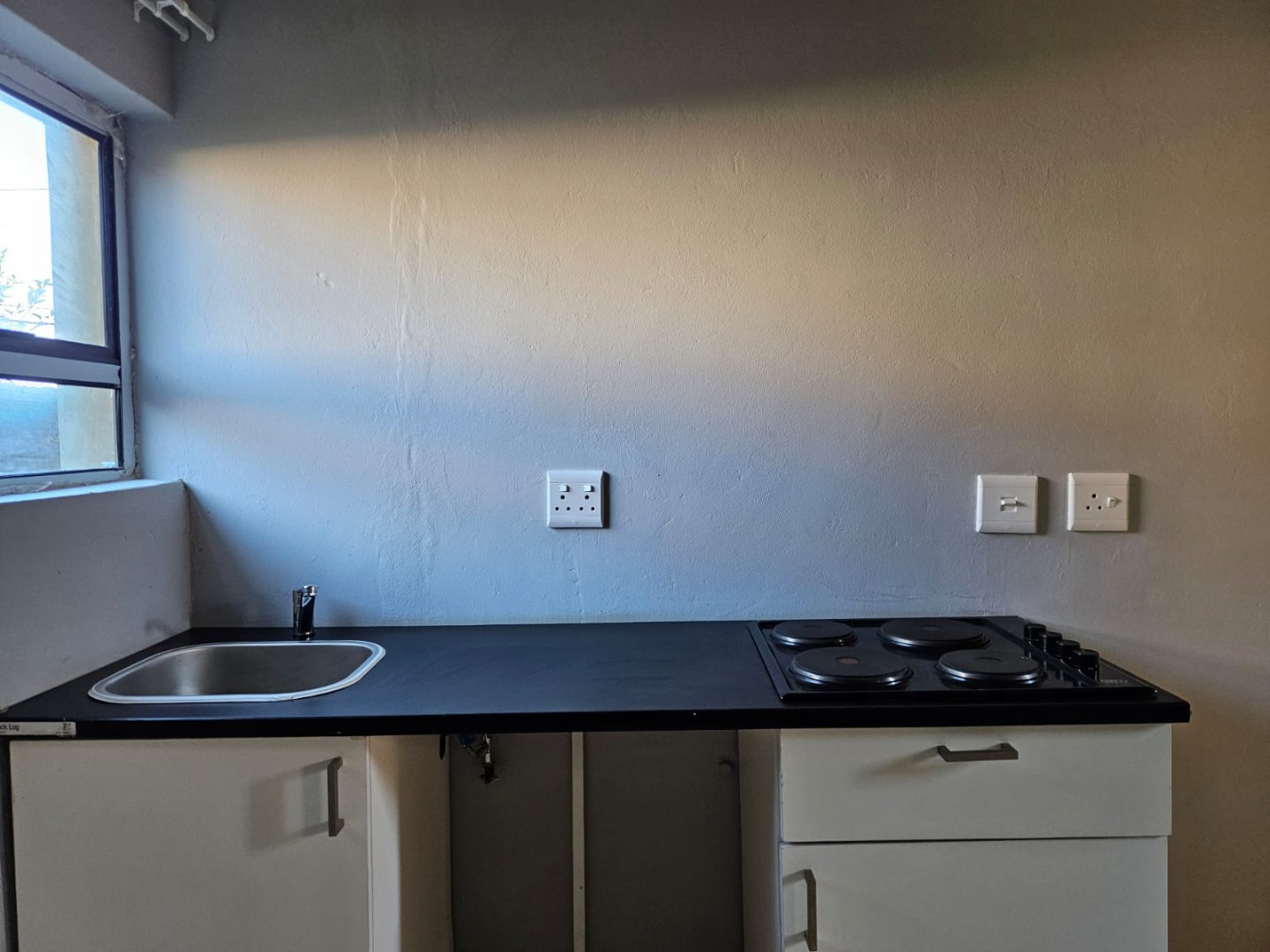 The apartment features an inviting open-plan lounge area, designed for both relaxation and everyday living. This space seamlessly connects to a functional kitchen, which is thoughtfully equipped with ample fitted cupboards, a practical sink, and a 4-plate stove, providing essential amenities for daily meal preparation. The bedroom area is designed for comfort and efficiency, boasting a convenient 2-door fitted wardrobe that maximizes storage space and helps maintain a tidy and organized environment.