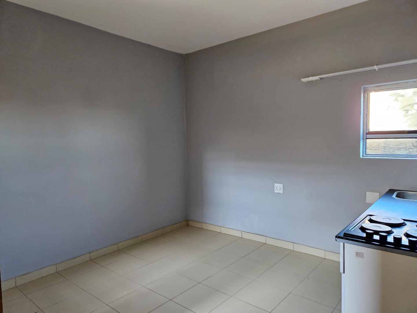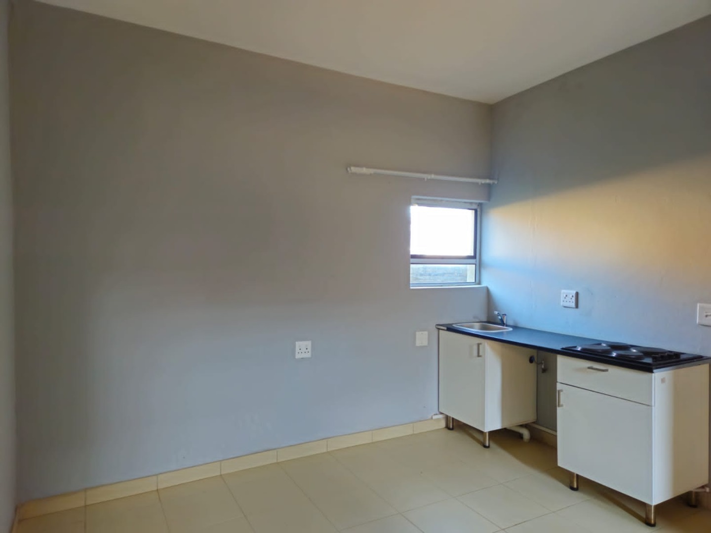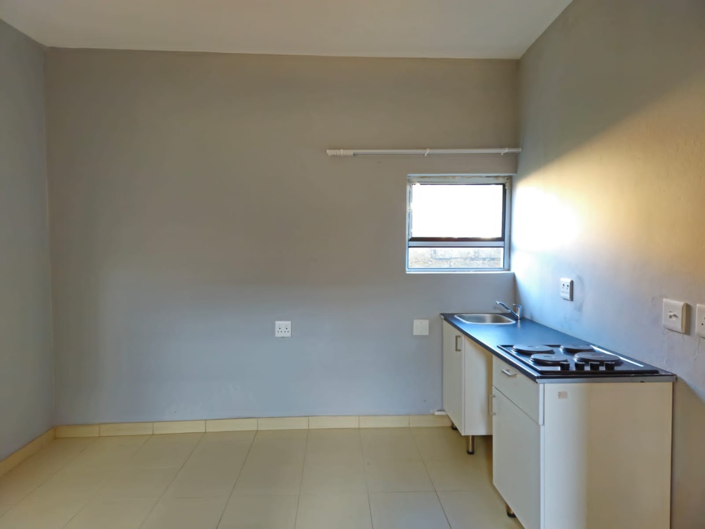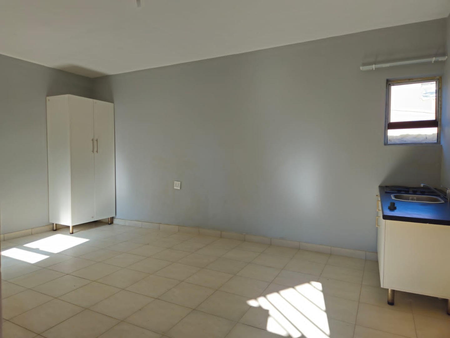 The apartment features an inviting open-plan lounge area, designed for both relaxation and everyday living. This space seamlessly connects to a functional kitchen, which is thoughtfully equipped with ample fitted cupboards, a practical sink, and a 4-plate stove, providing essential amenities for daily meal preparation. The bedroom area is designed for comfort and efficiency, boasting a convenient 2-door fitted wardrobe that maximizes storage space and helps maintain a tidy and organized environment.